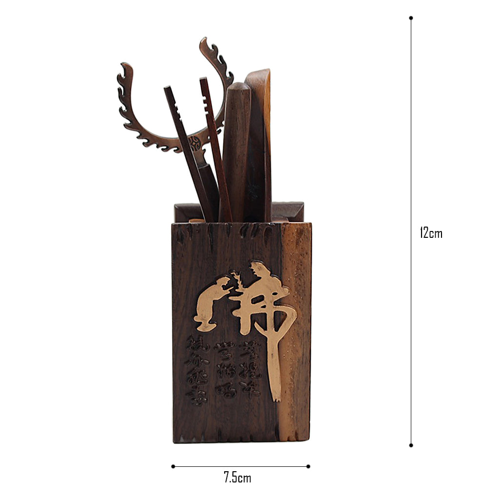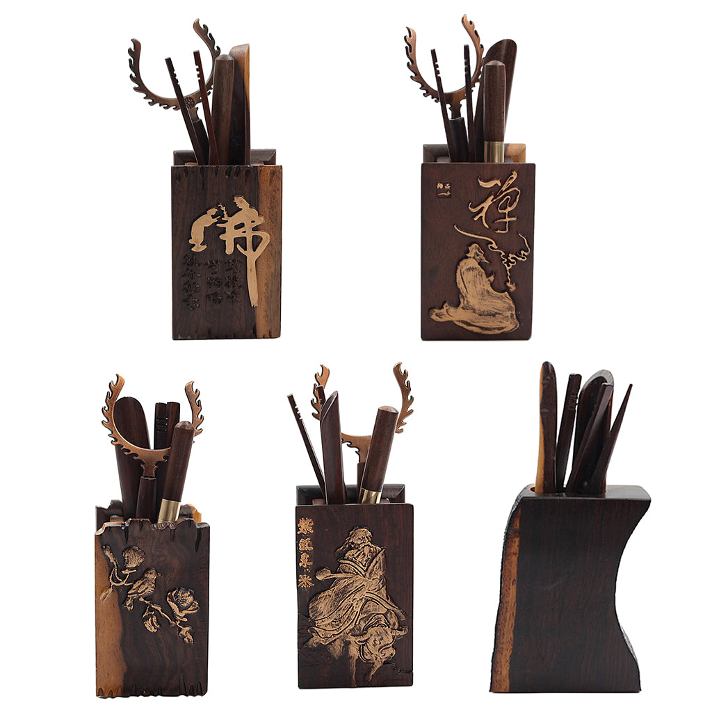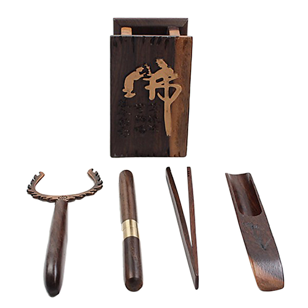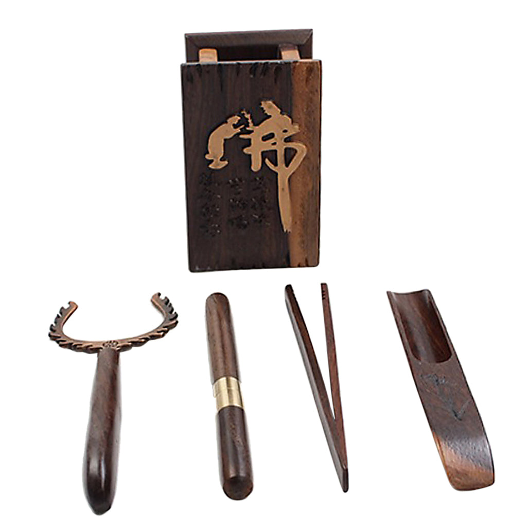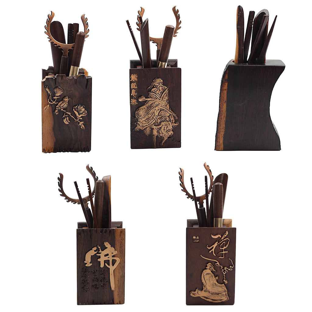 Included are the following: a U-Shape Tea Clip, a Tweezer, a needle, a tea scoop, a Tea vase