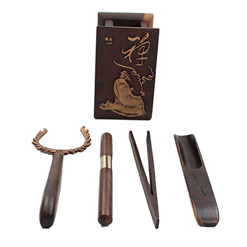 Chinese Tea Ceremony Utensil Set Tool Accessories Natural Ebony Wood Style_2