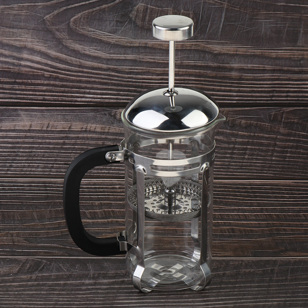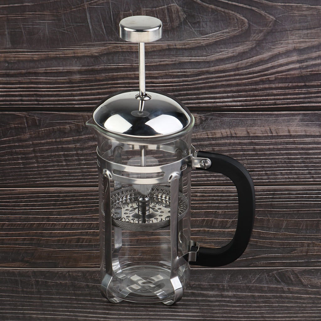 How to use this French Press:Step 1:Pour a small amount of hot water onto the coffee grounds,stir and wait 30 seconds.Step 2:Pour in the remaining water, filling up the beaker.Stir once more.Step 4:Put the lid on ,slowly press plunger down.Then you can enjoy a cup of flavor coffee.