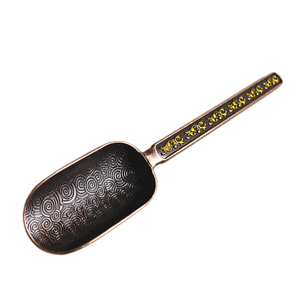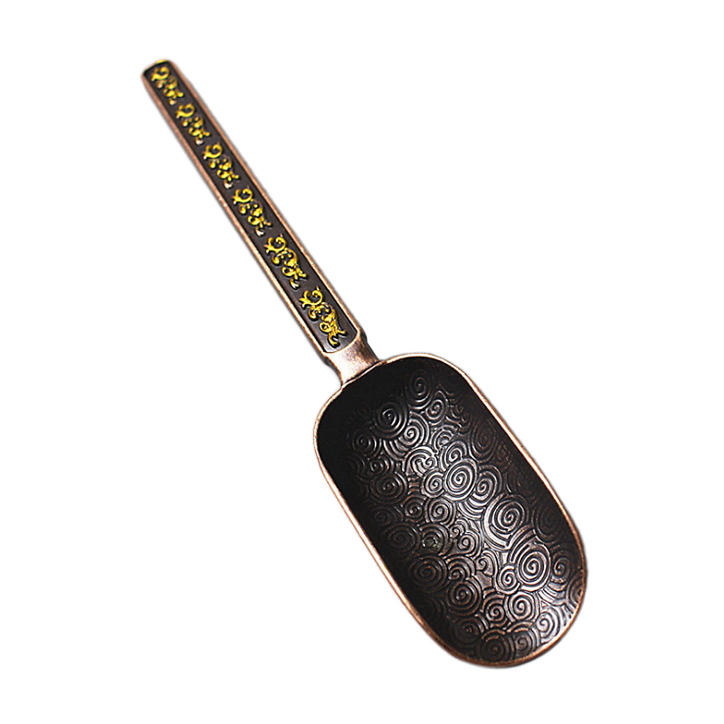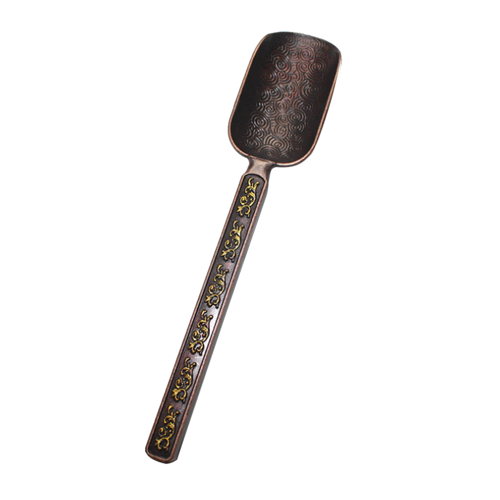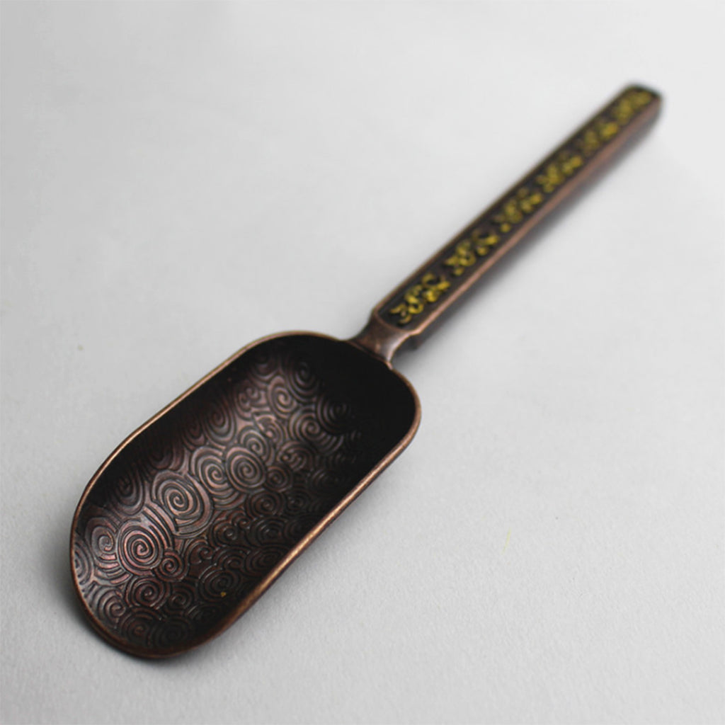 The inspection and measuring of loose leaf tea is aided by this exquisite scoop.
