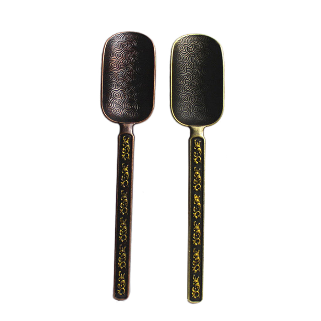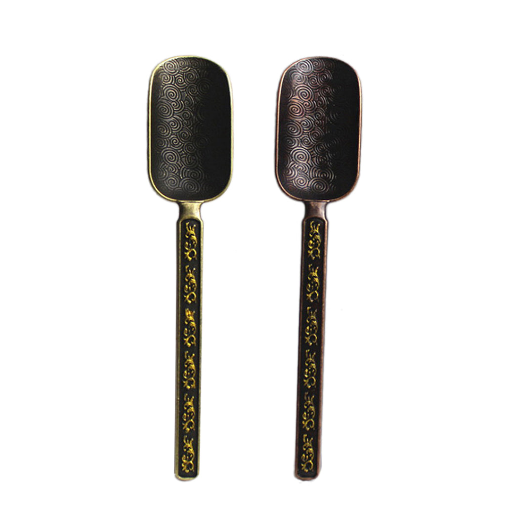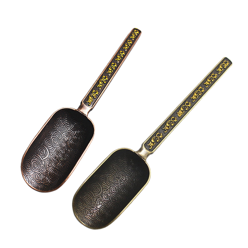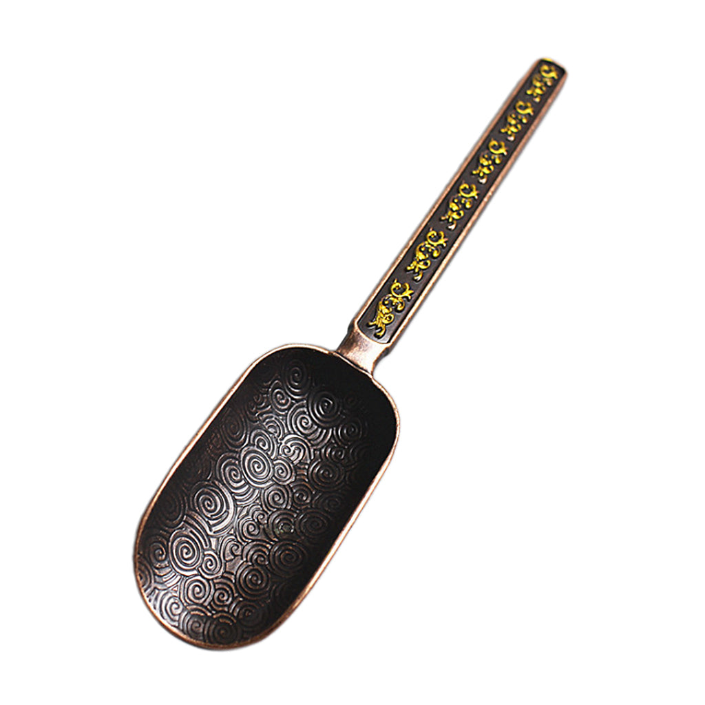 The inspection and measuring of loose leaf tea is aided by this exquisite scoop.