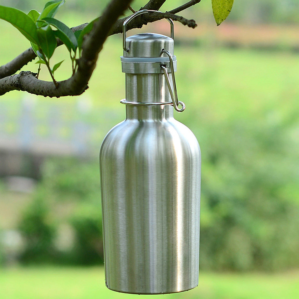 Swing Top Hip Flask Stainless Steel Home Brew Beer Growler Bottle Silver 1L