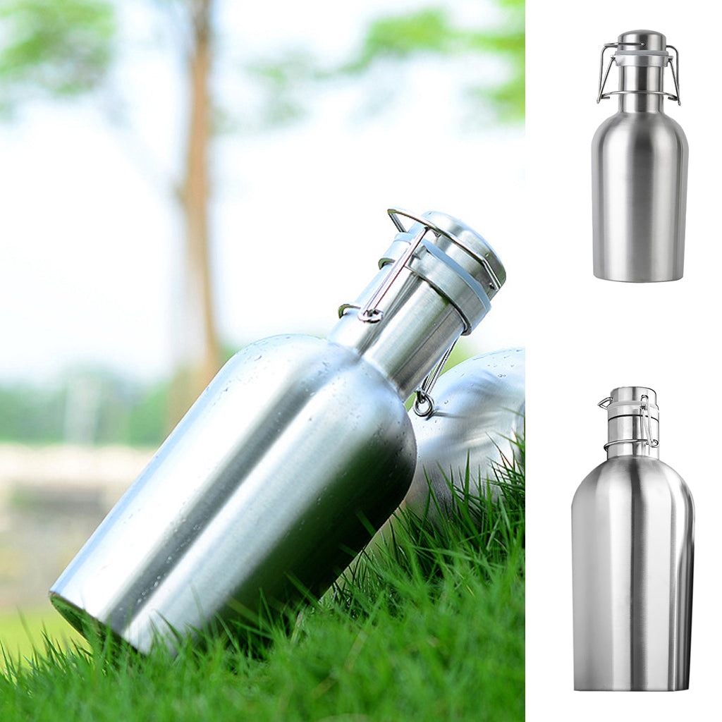 Growler with flip top lid allows for easy pouring of your favorite beverage hot or cold.