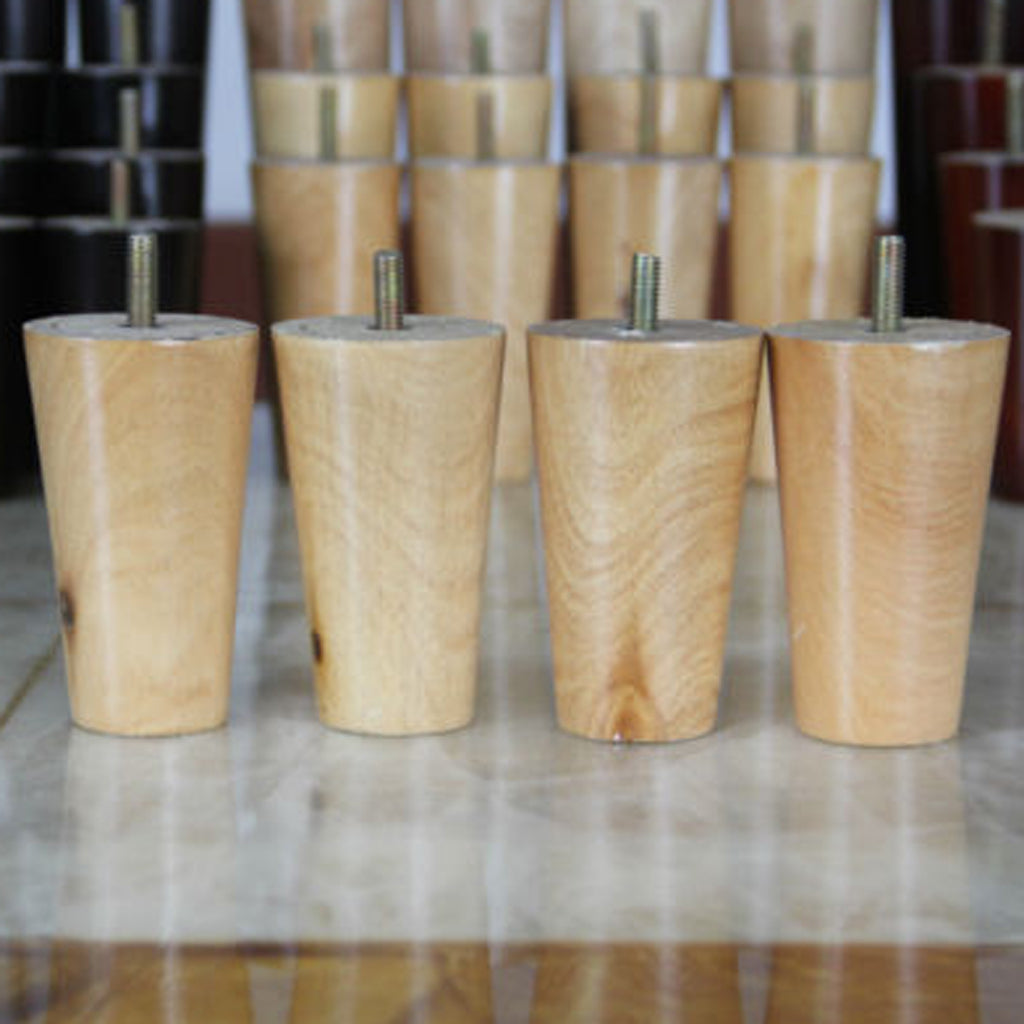 4pcs Cone Shape Eucalyptus Solid Wood Furniture Sofa Legs Natural 4*6*10cm