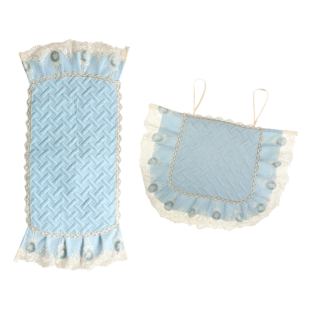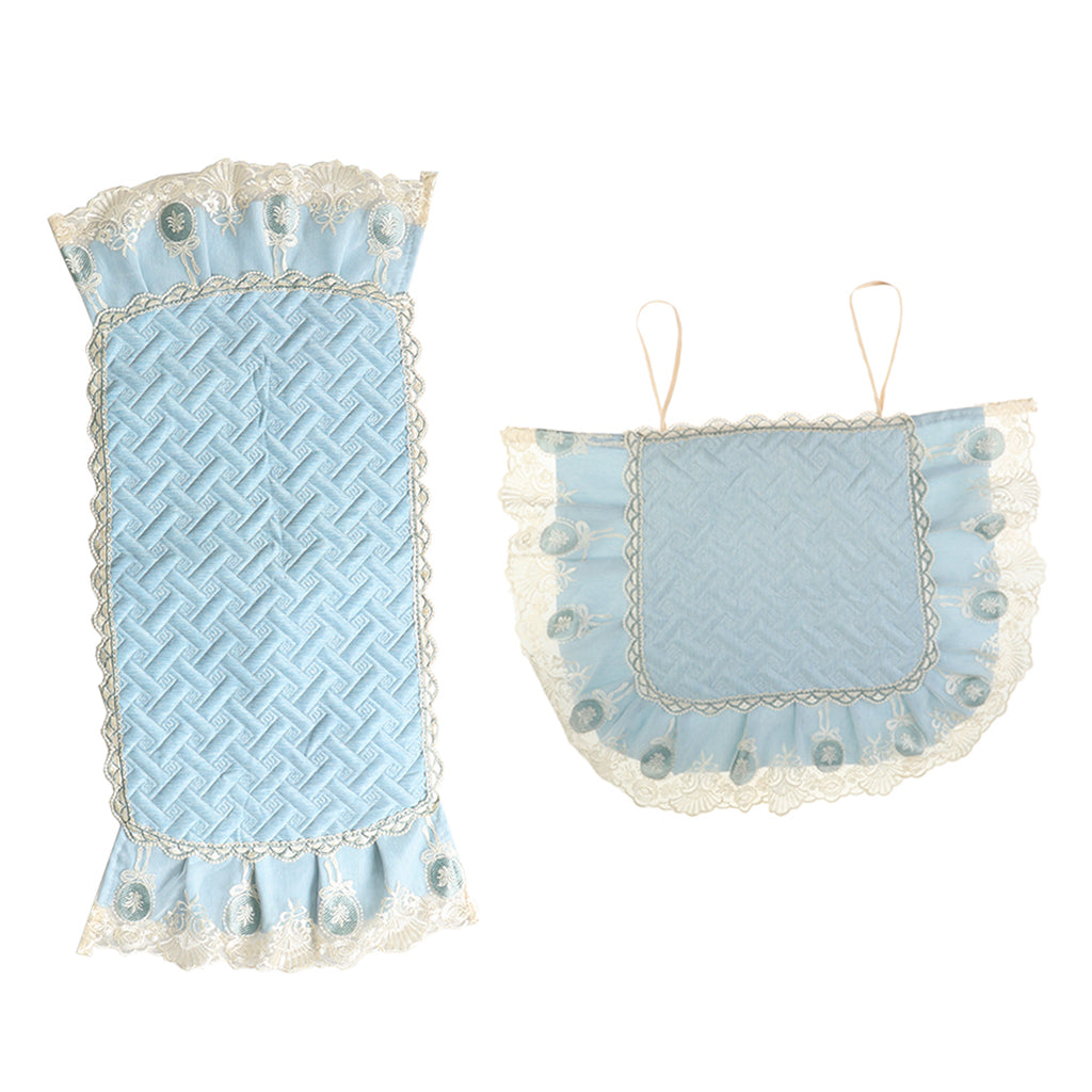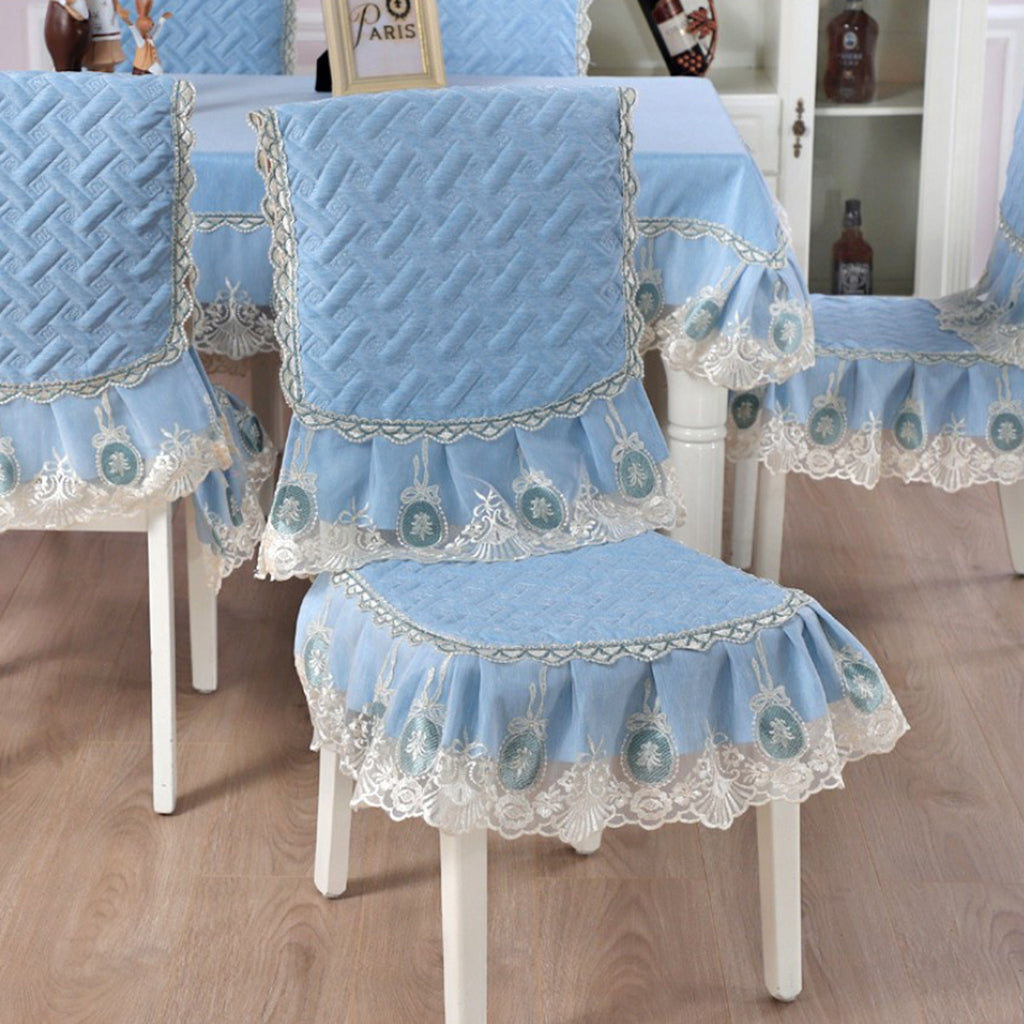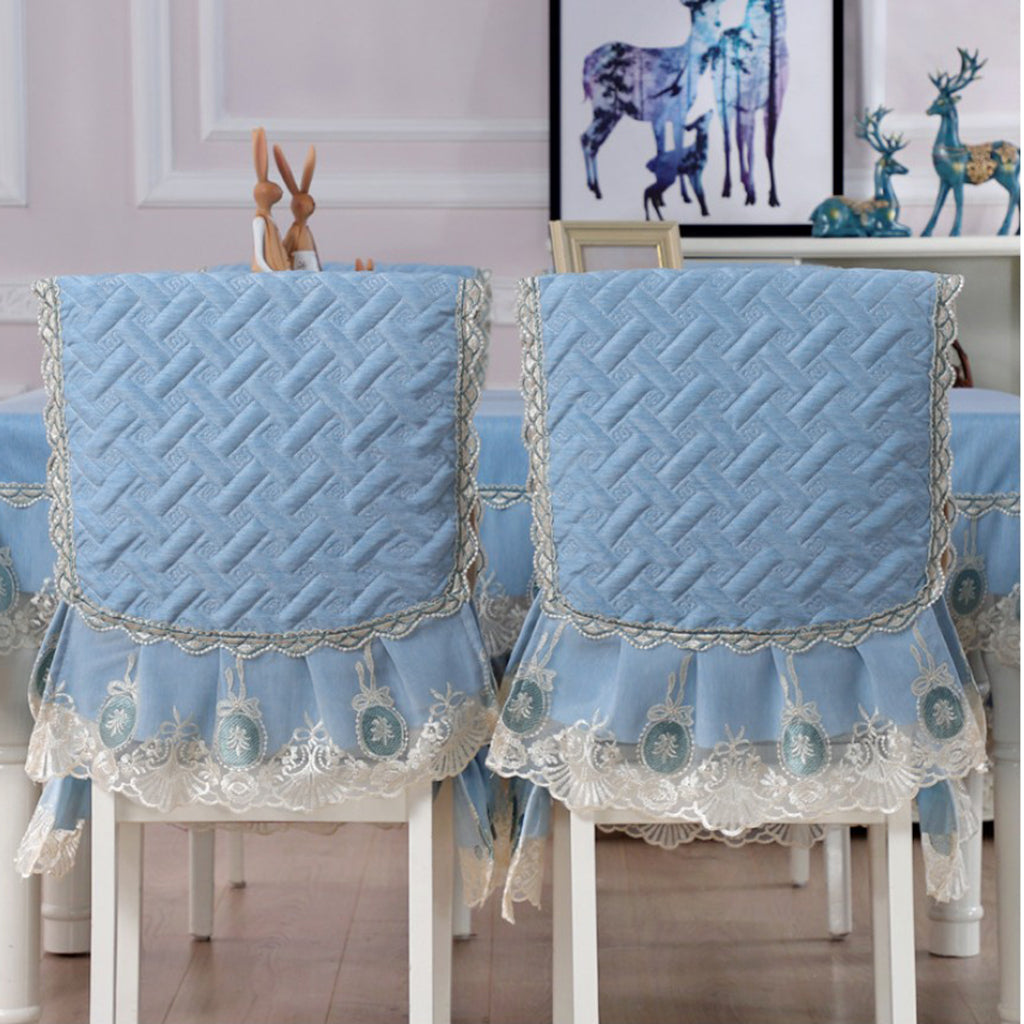 A Set of Light Blue Fresh Style Chair Cushion + Backrest Cover for Dining Room Chairs with Clear Golden Lace Decoration