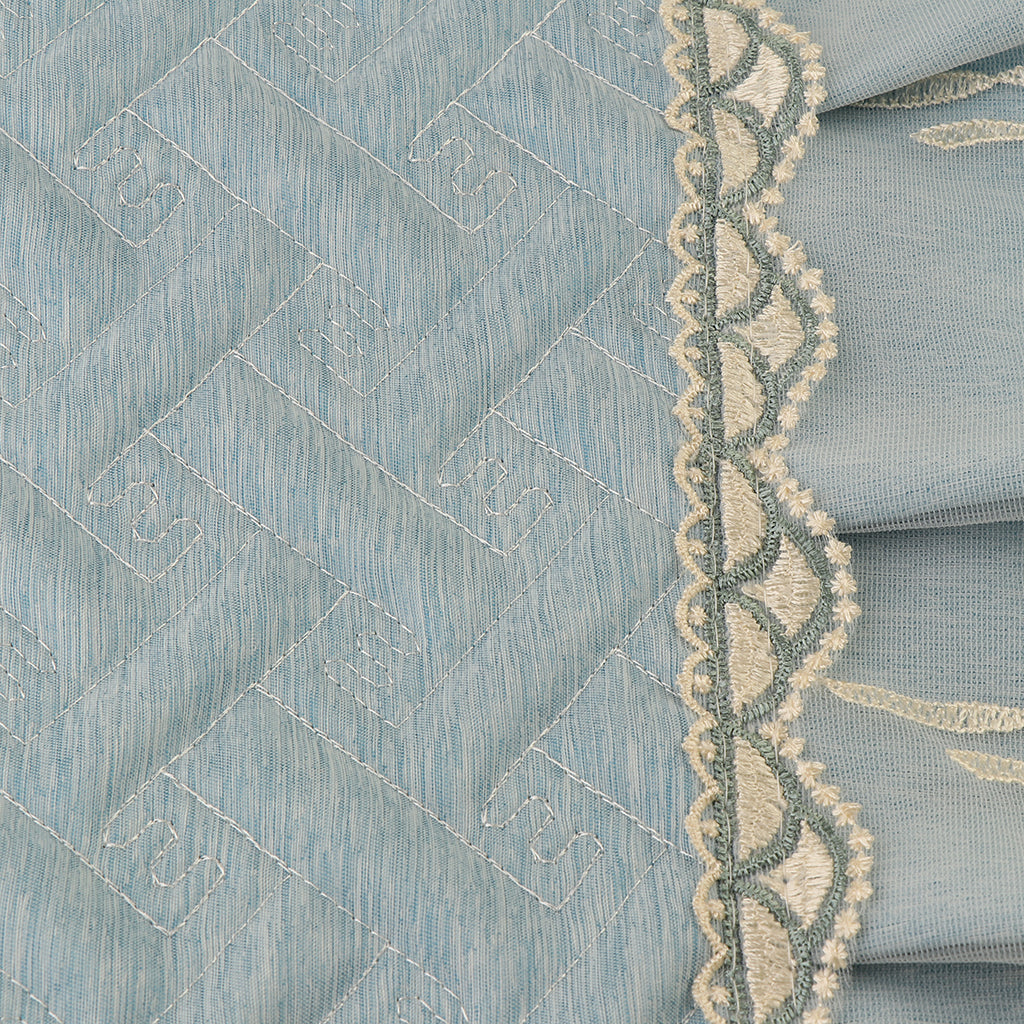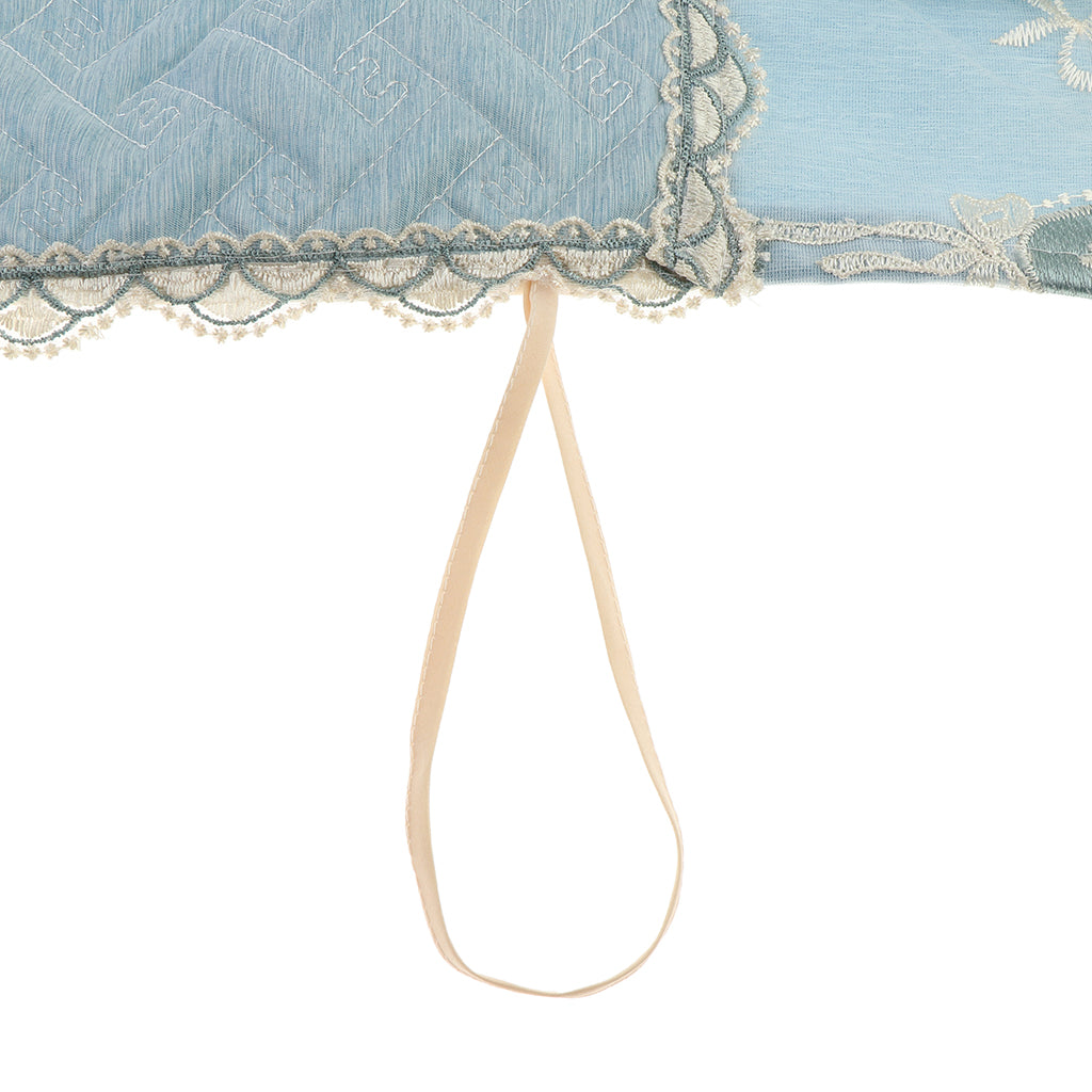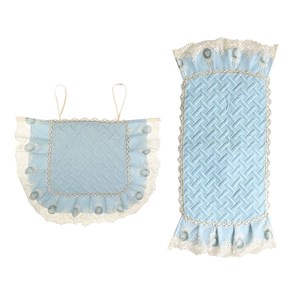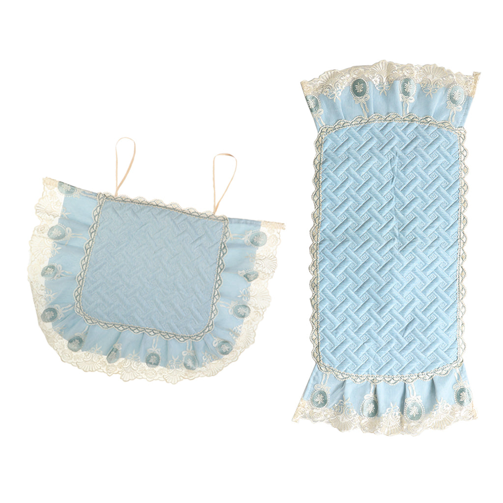 A Set of Light Blue Fresh Style Chair Cushion + Backrest Cover for Dining Room Chairs with Clear Golden Lace Decoration