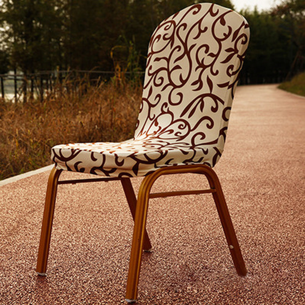 Champagne Elastic Semicircle Chair Cover Banquet Party Floral Print Decor