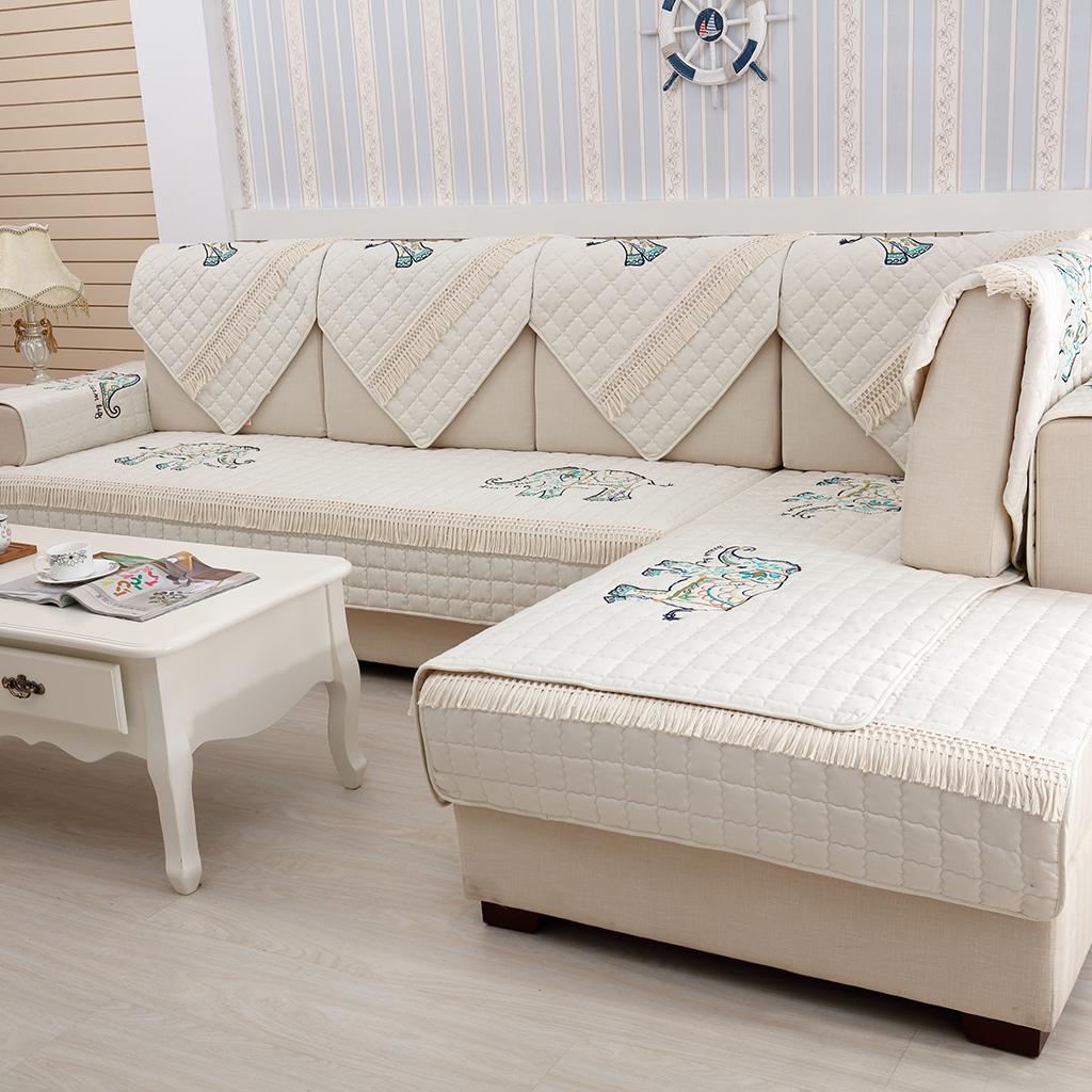 Creative Embroidered Sofa Cushion Cotton Sofa Mat Pad 90x90cm Creamy-white