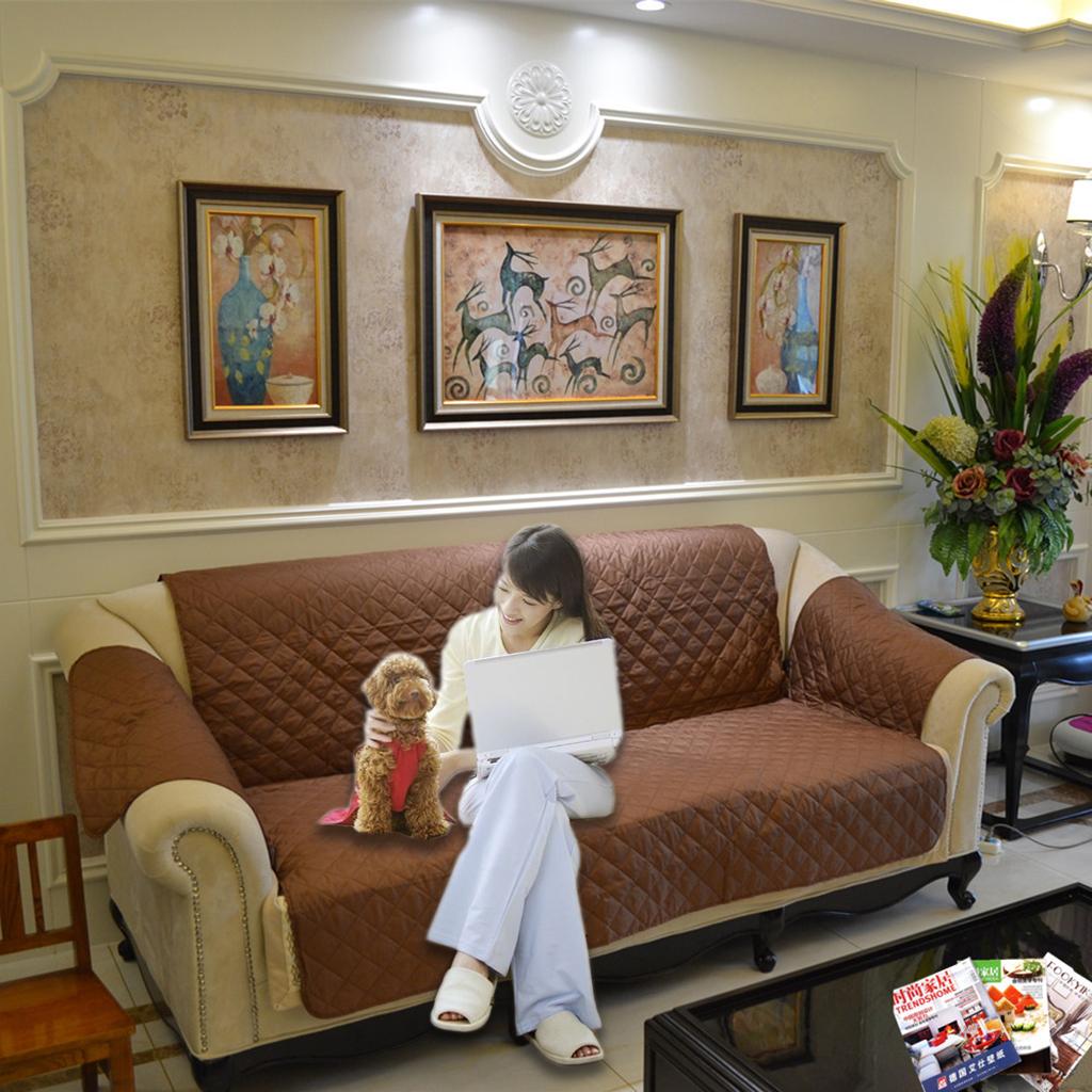 Furniture Protector Quilted Slipcover Sofa Seat Cover 3- Seater Coffee