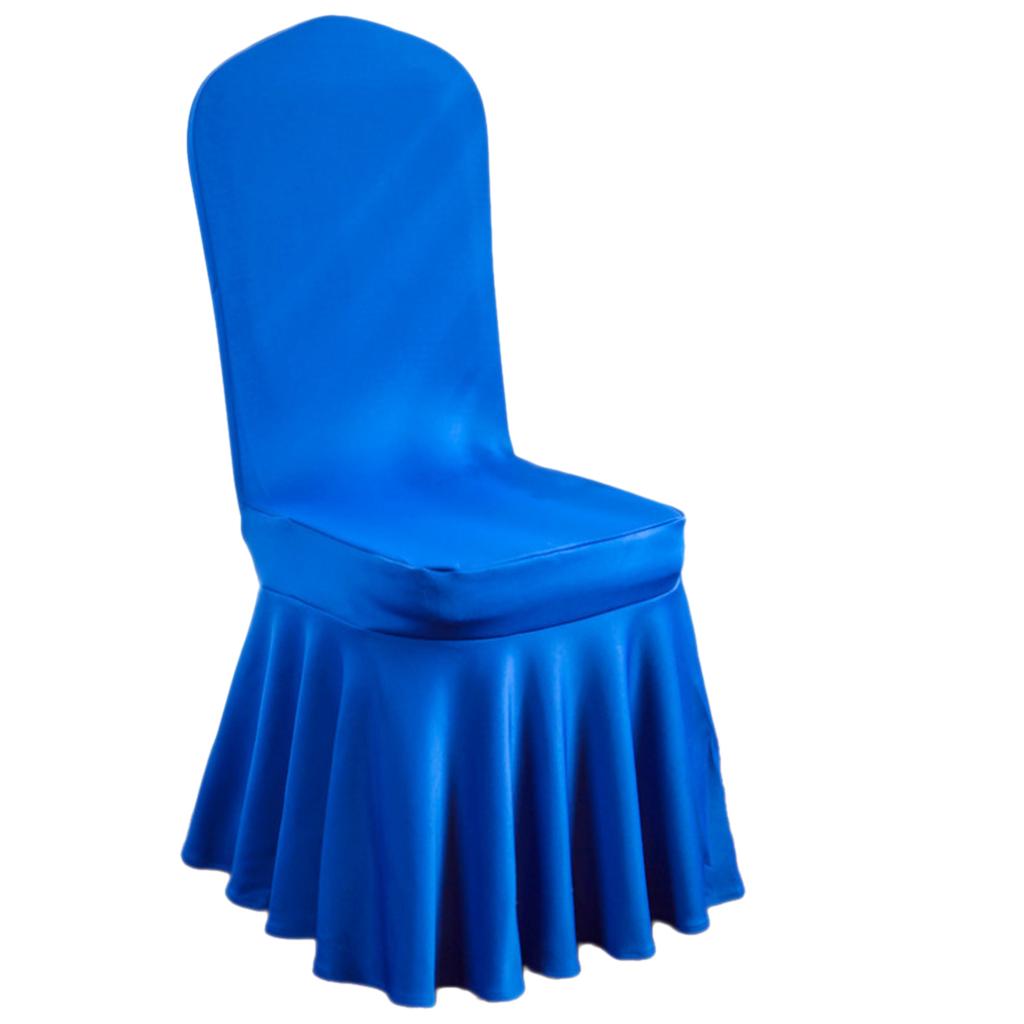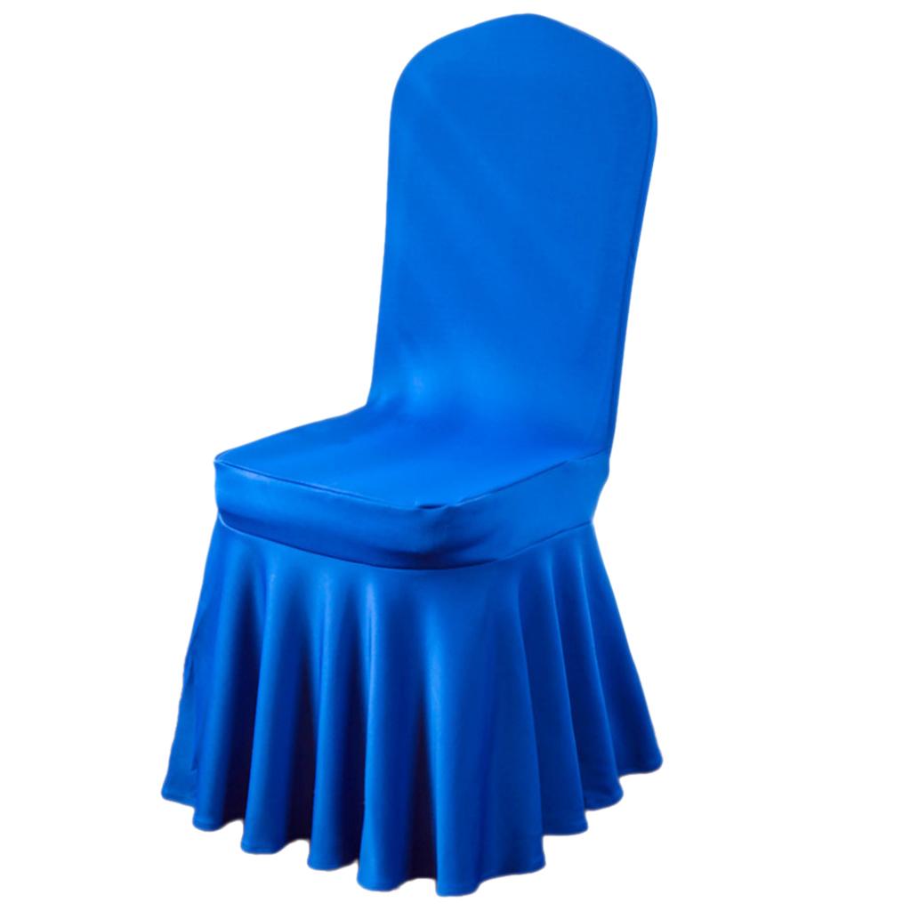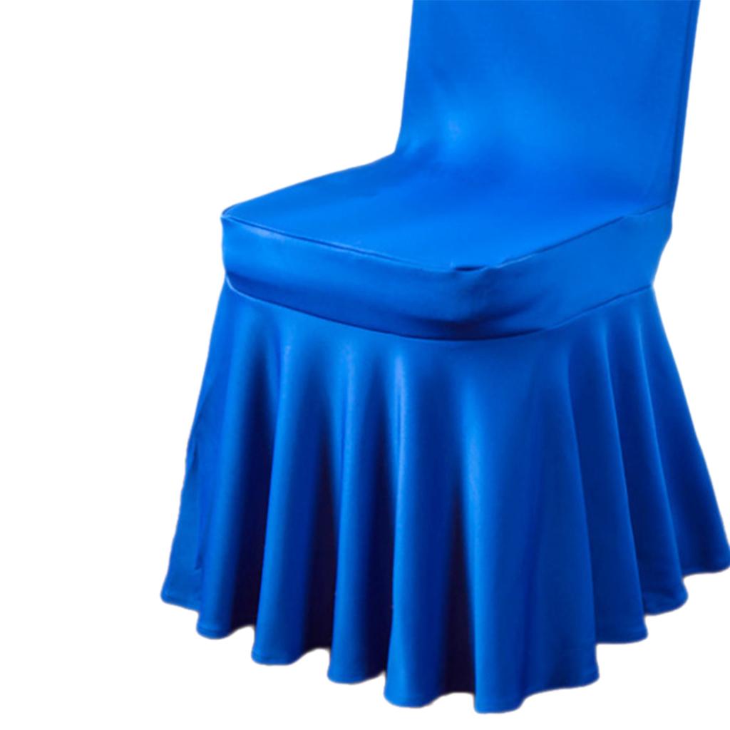 Pleated Skirt Chair Cover Spandex Wedding Banquets Decor Blue