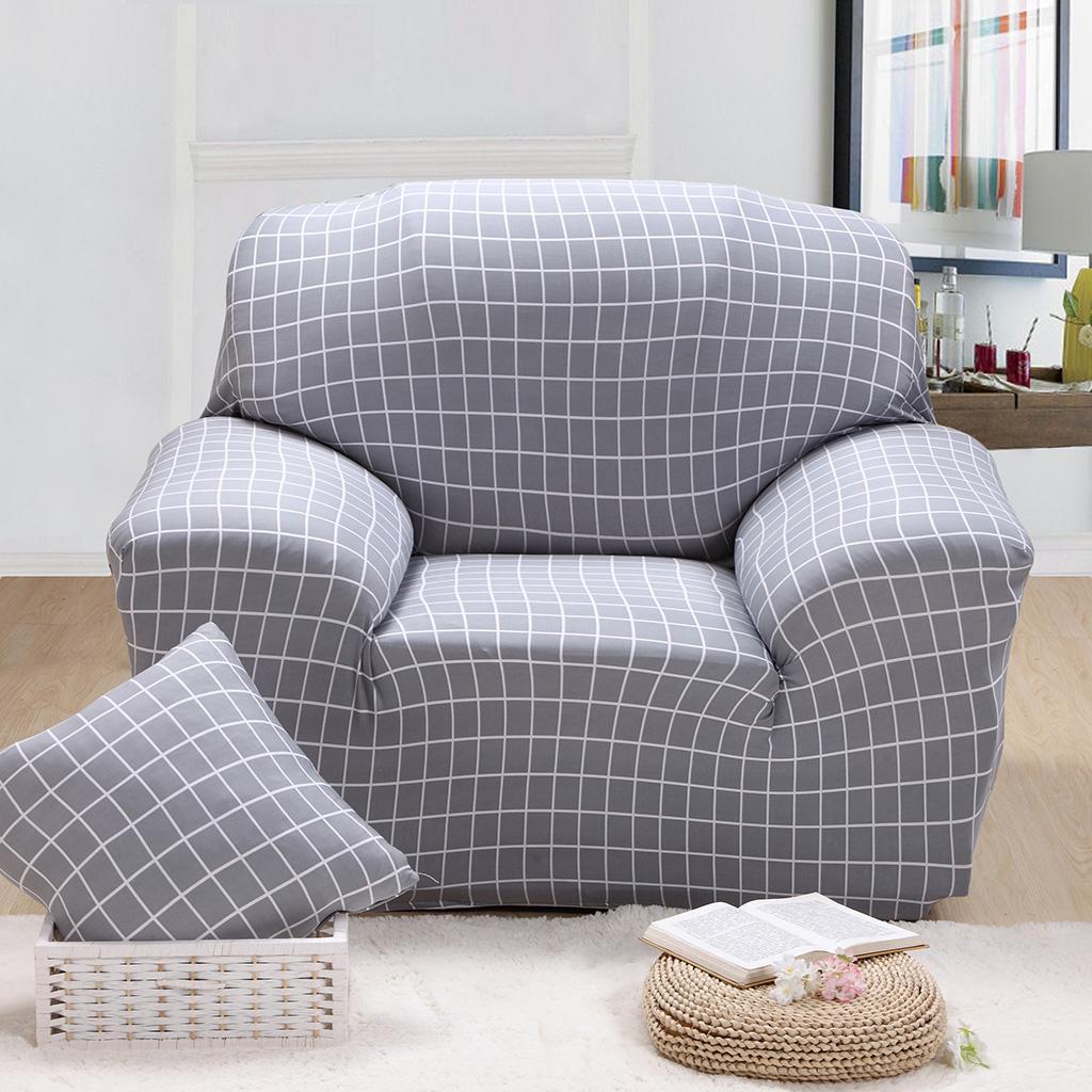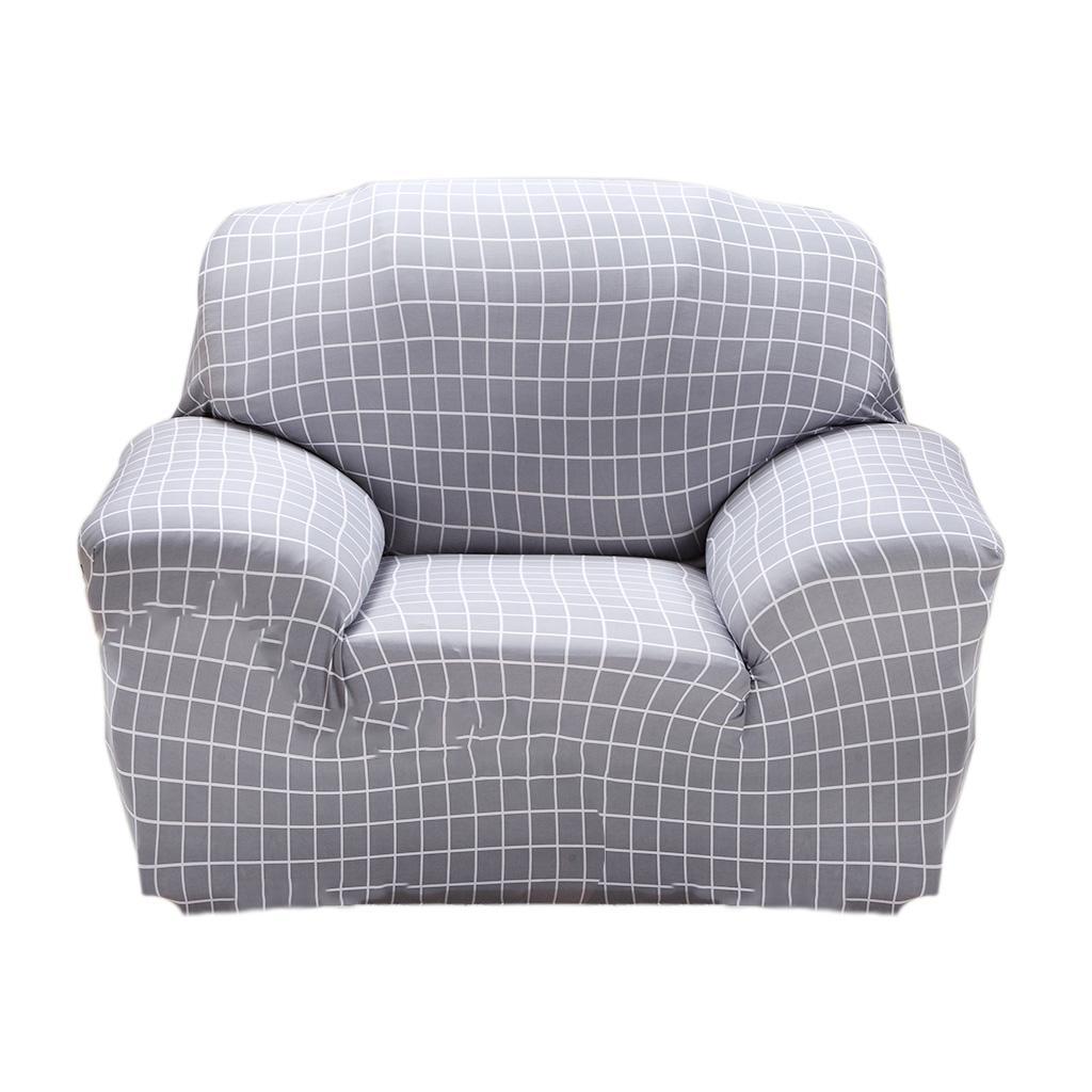 Single Sofa Cover Spandex Elastic Couch Case Seat Slipcover Grey Plaid Decor