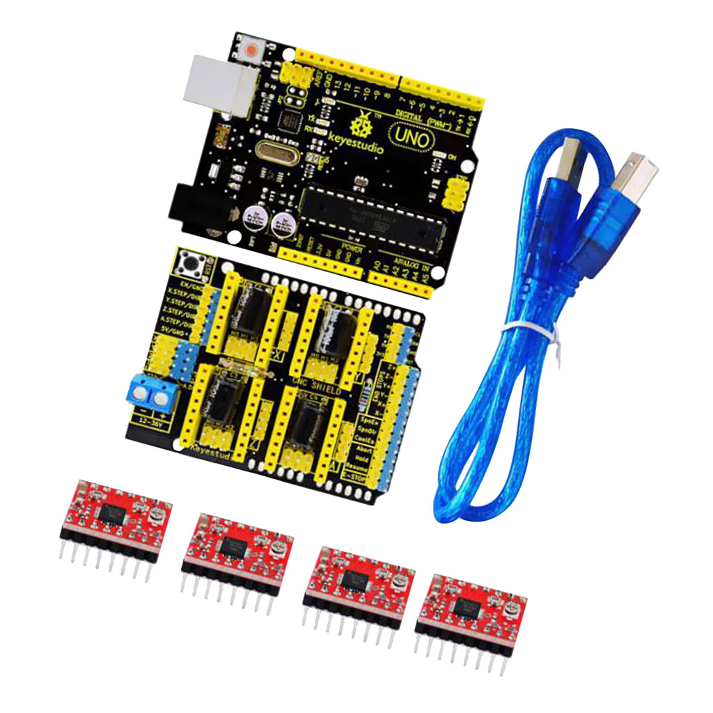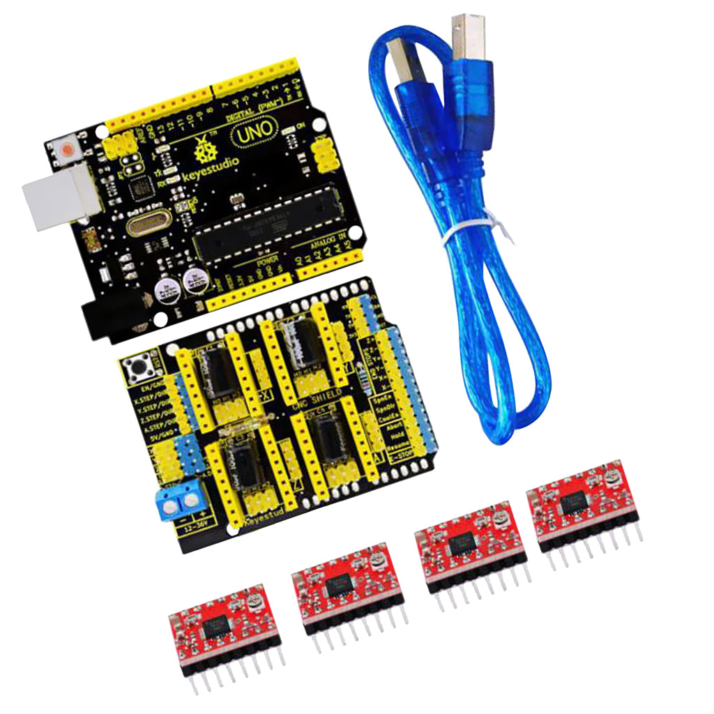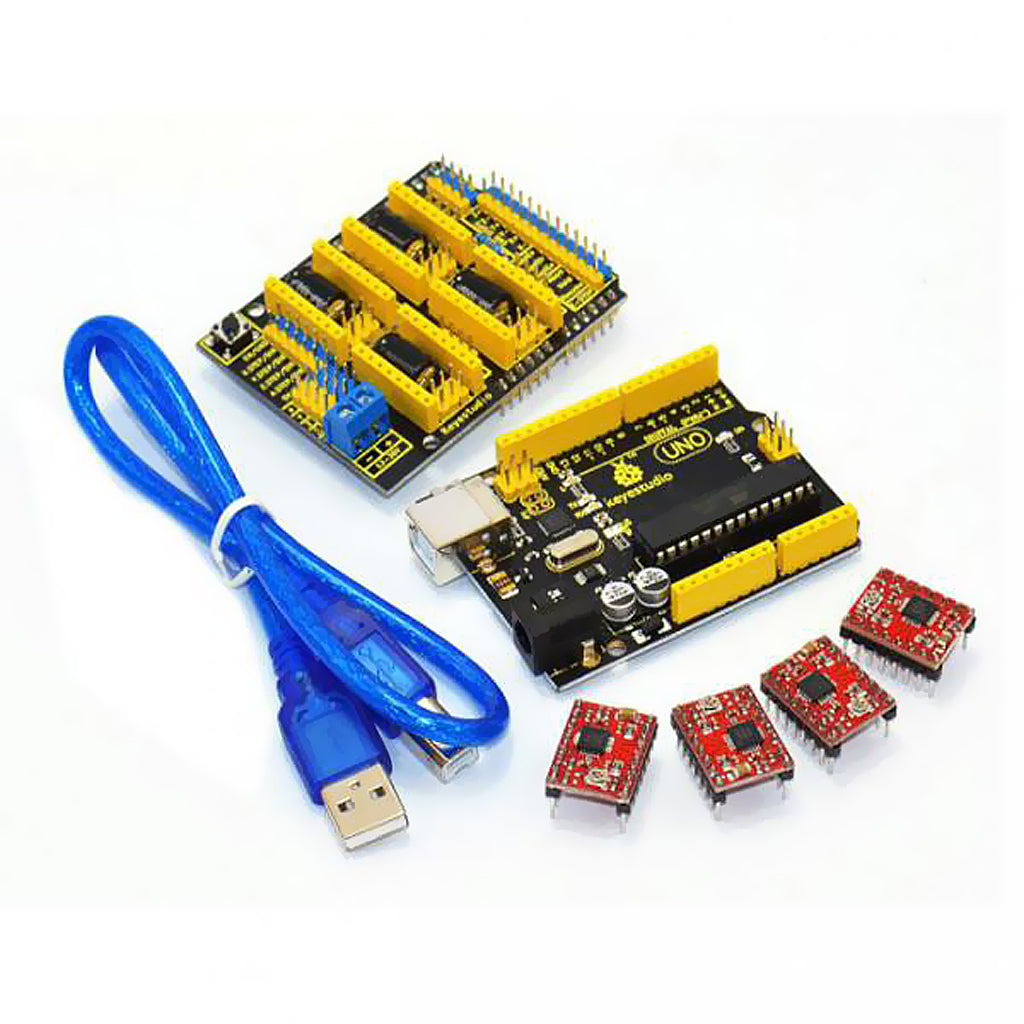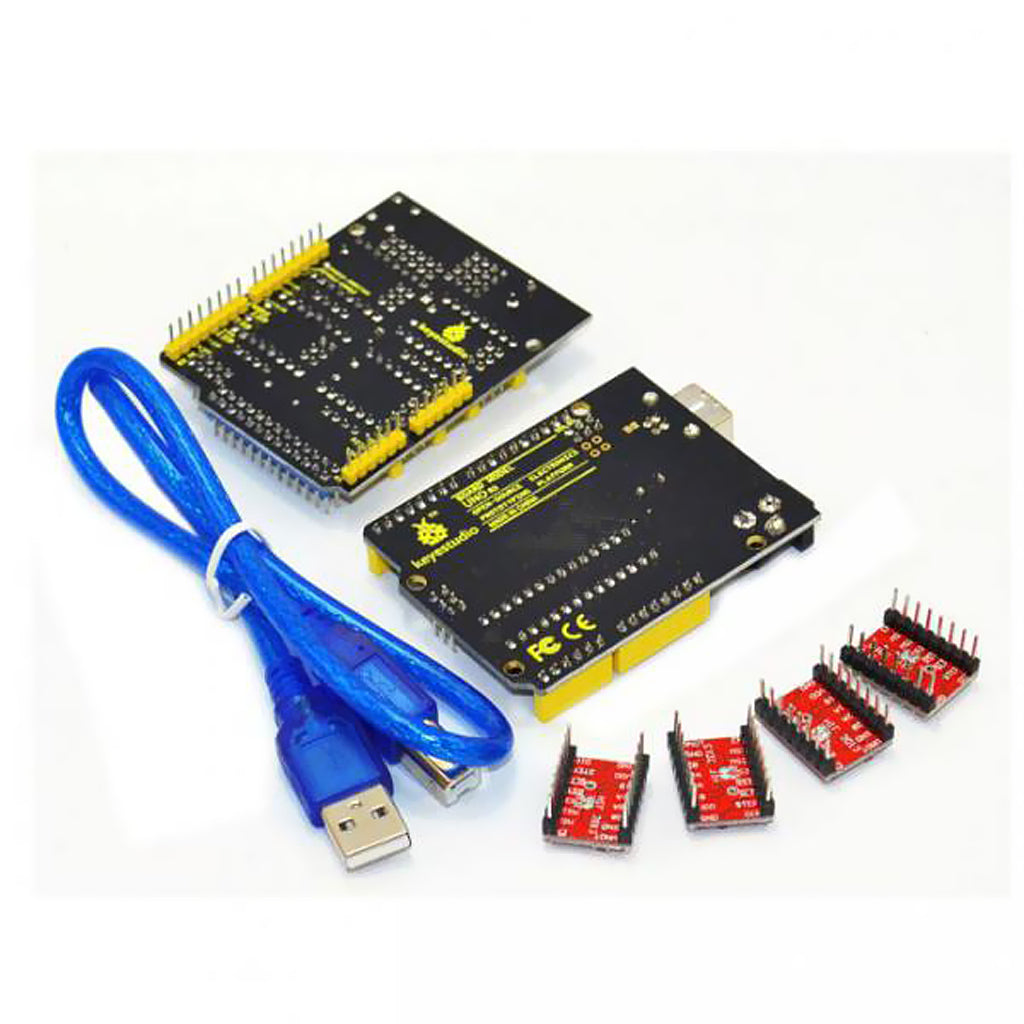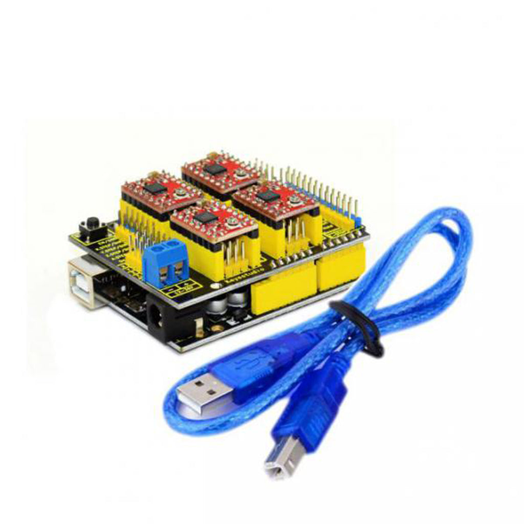 4-Axis support (X, Y, Z , A-Can duplicate X,Y,Z or do a full 4th axis with custom firmware using pins D12 and D13)