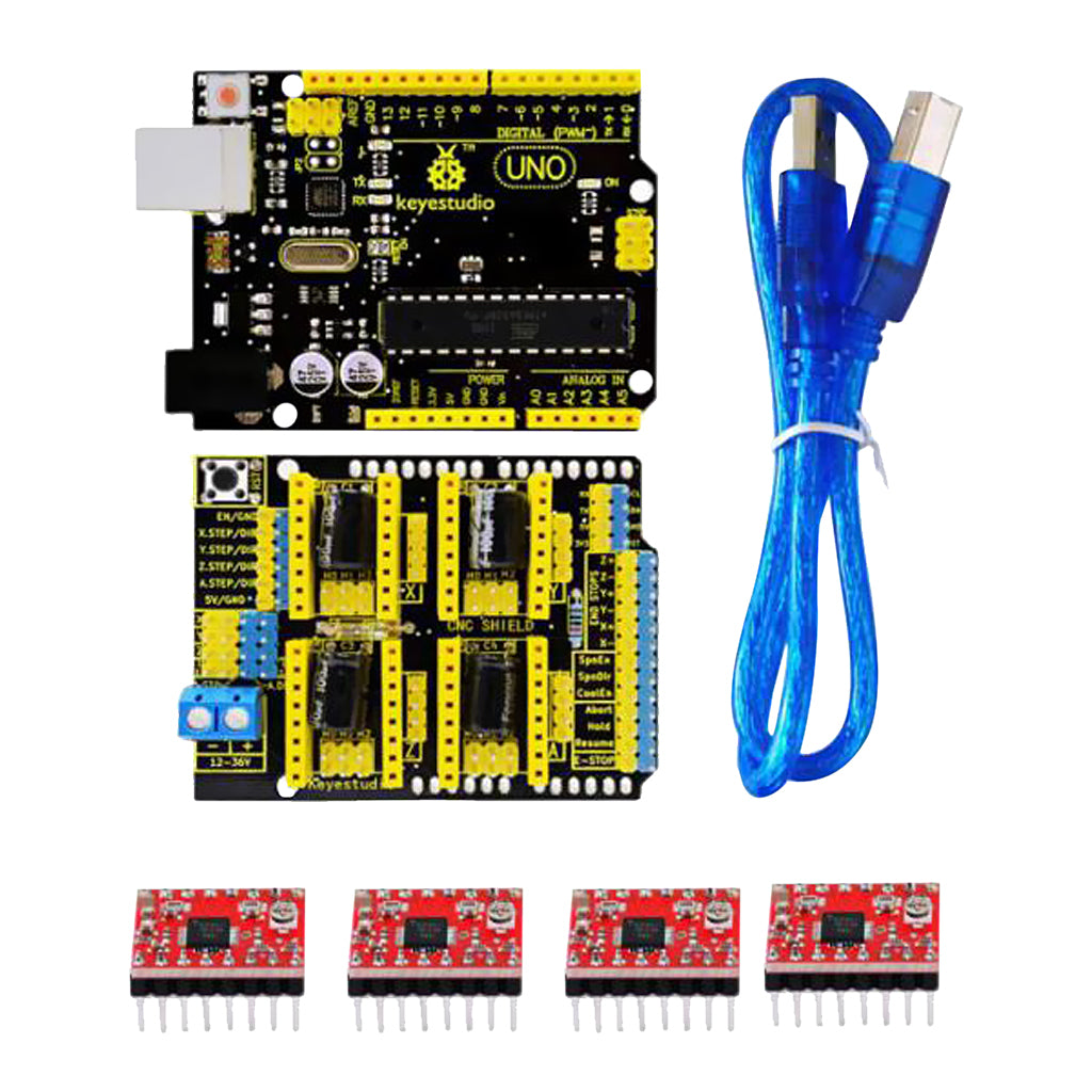 GRBL 0.8c compatible. (Open source firmware that runs on an Arduino UNO that turns G-code commands into stepper signals)