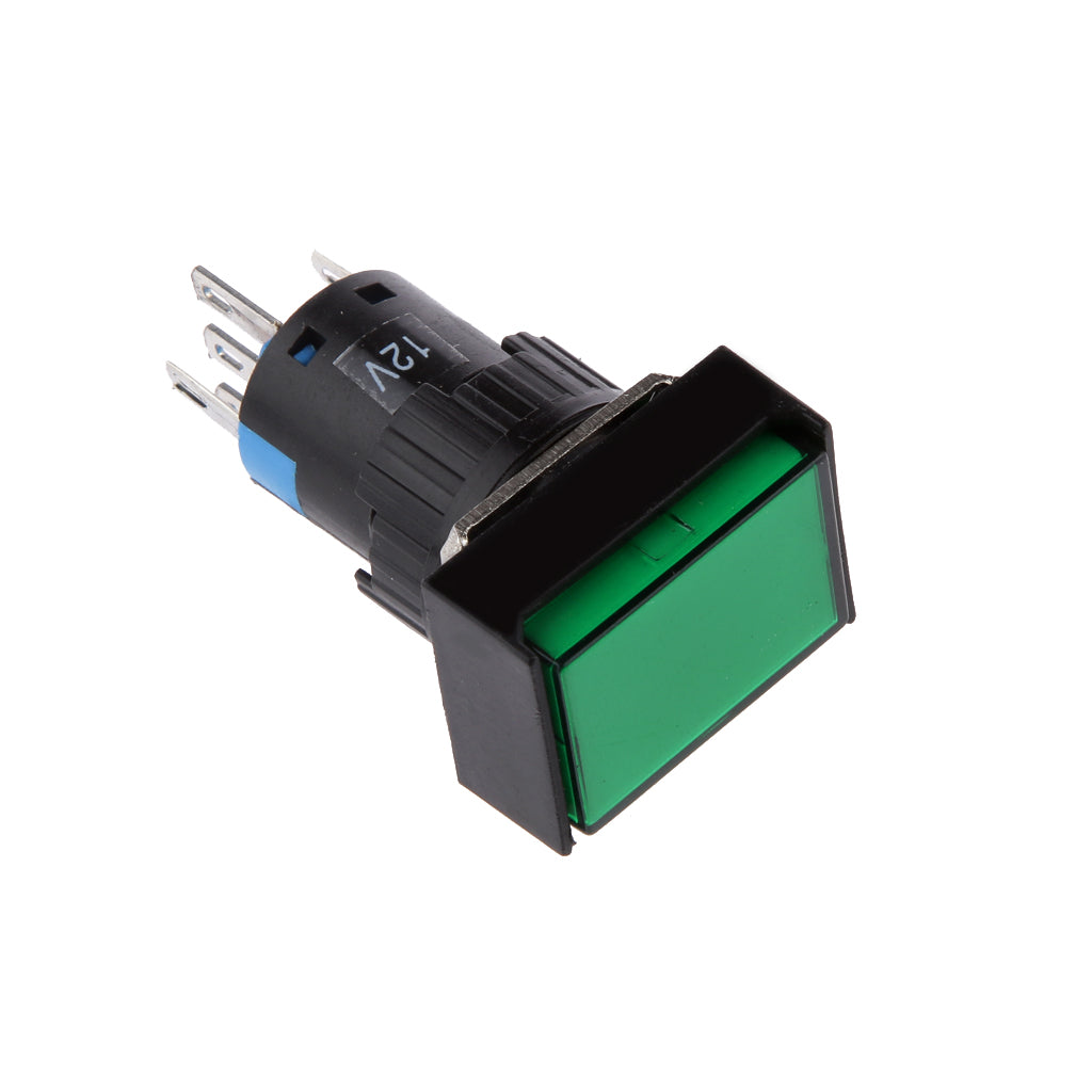 DC 12V 24x19mm Push Button Switch LED Light Self-Lock for Contactor Green