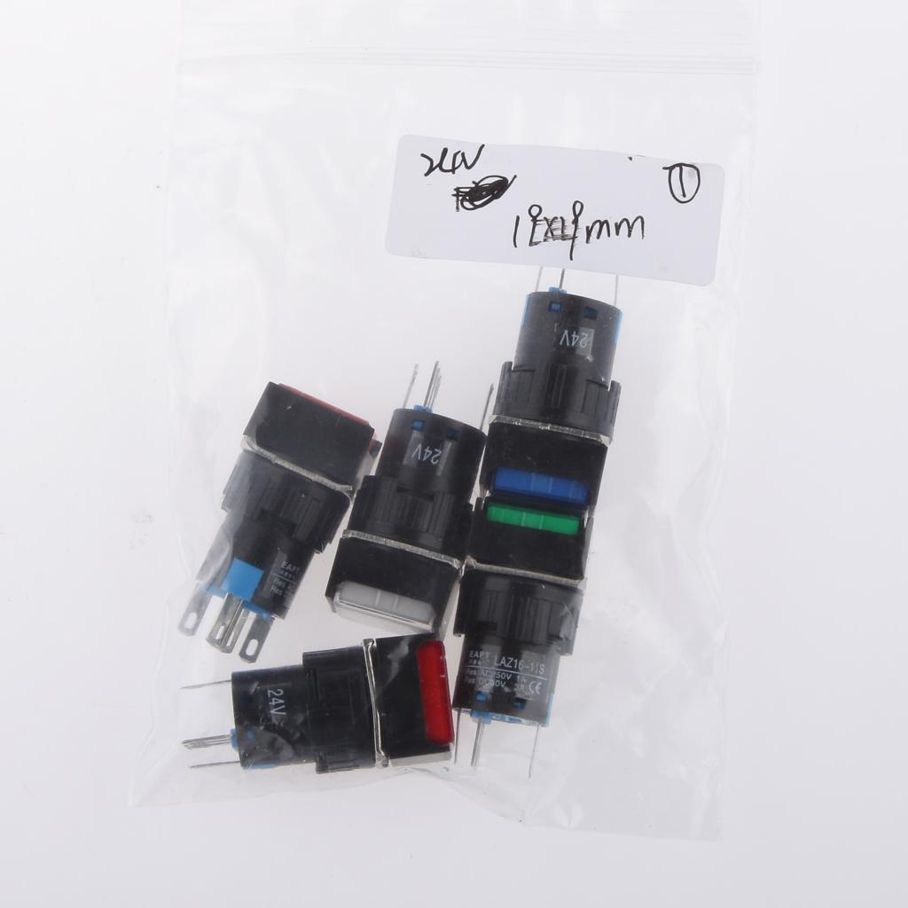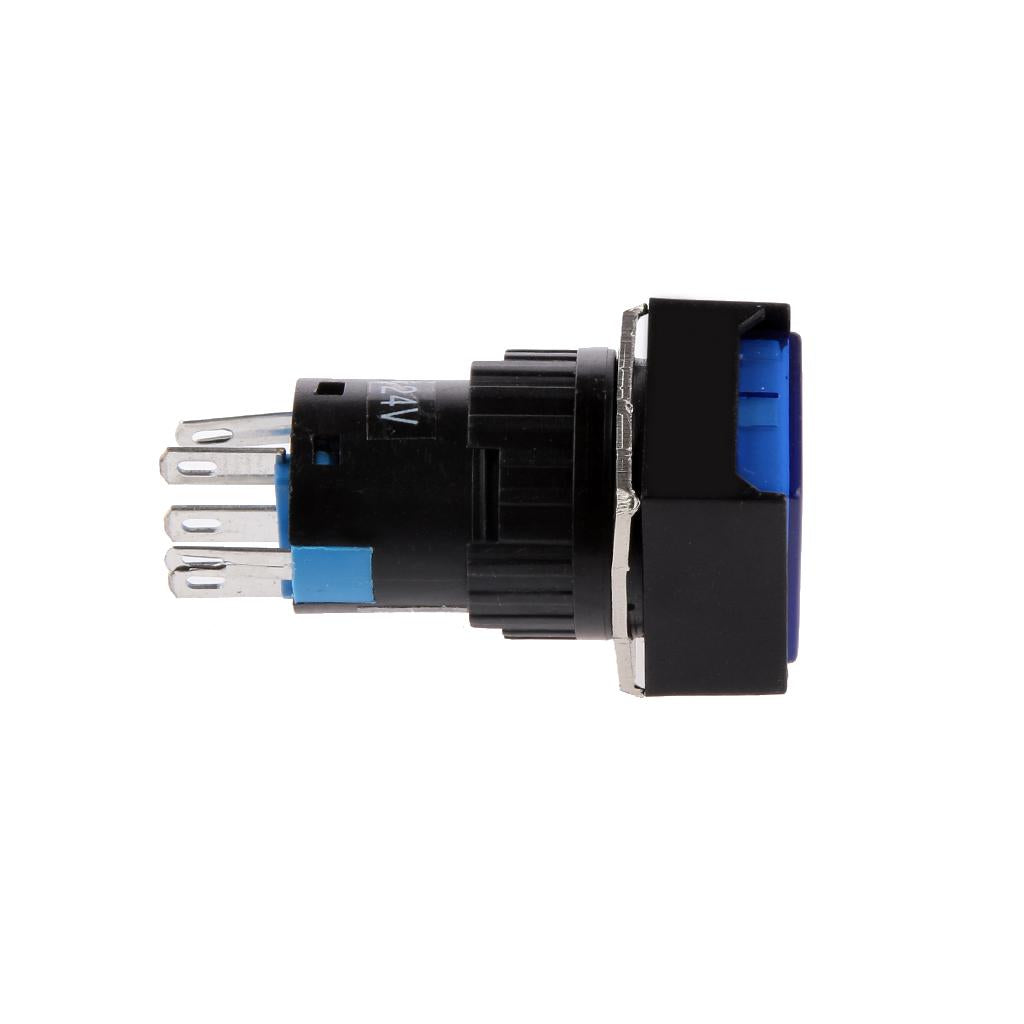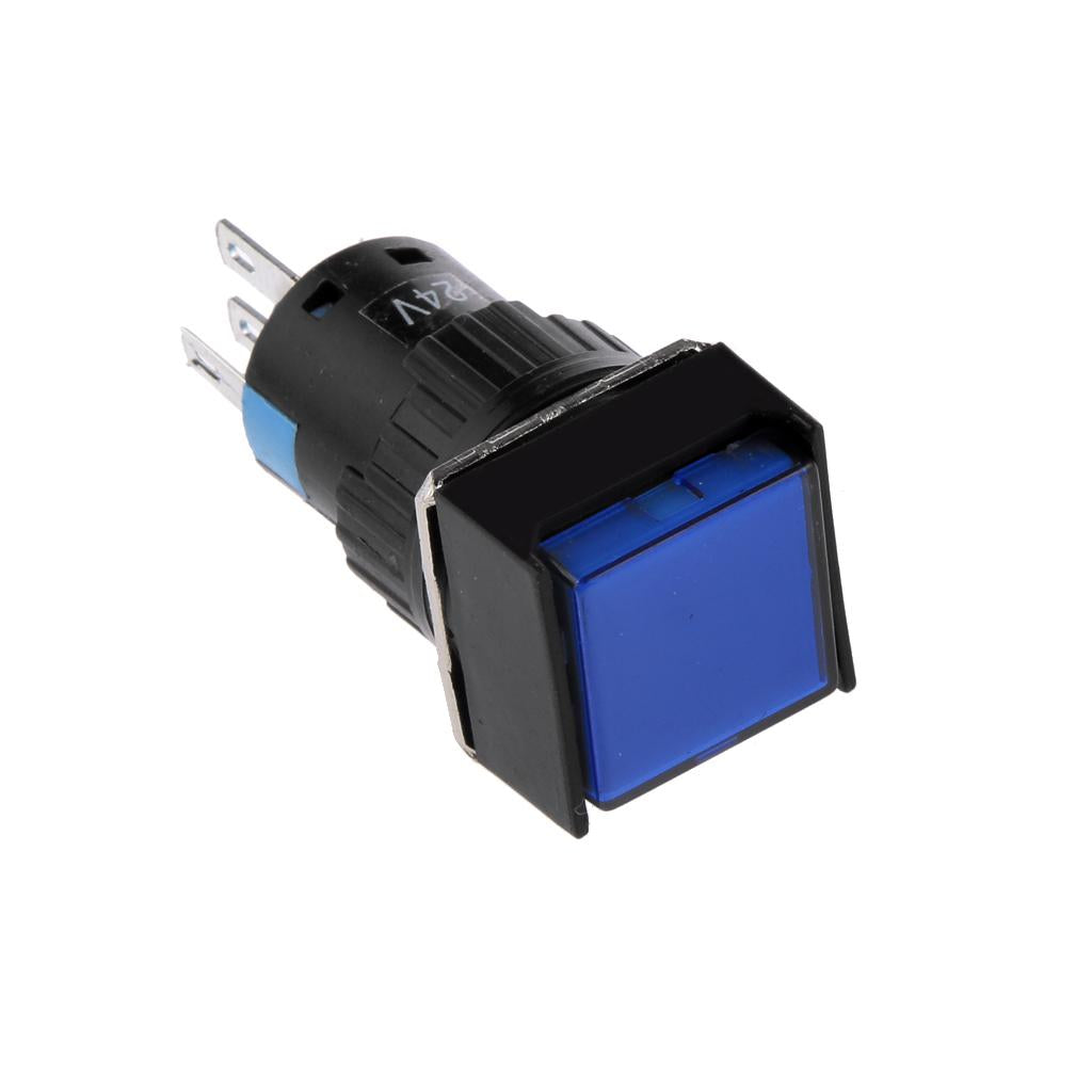 DC 24V 19*19mm Push Button Switch LED Light Self-Lock for Contactor Blue