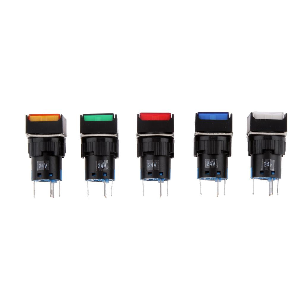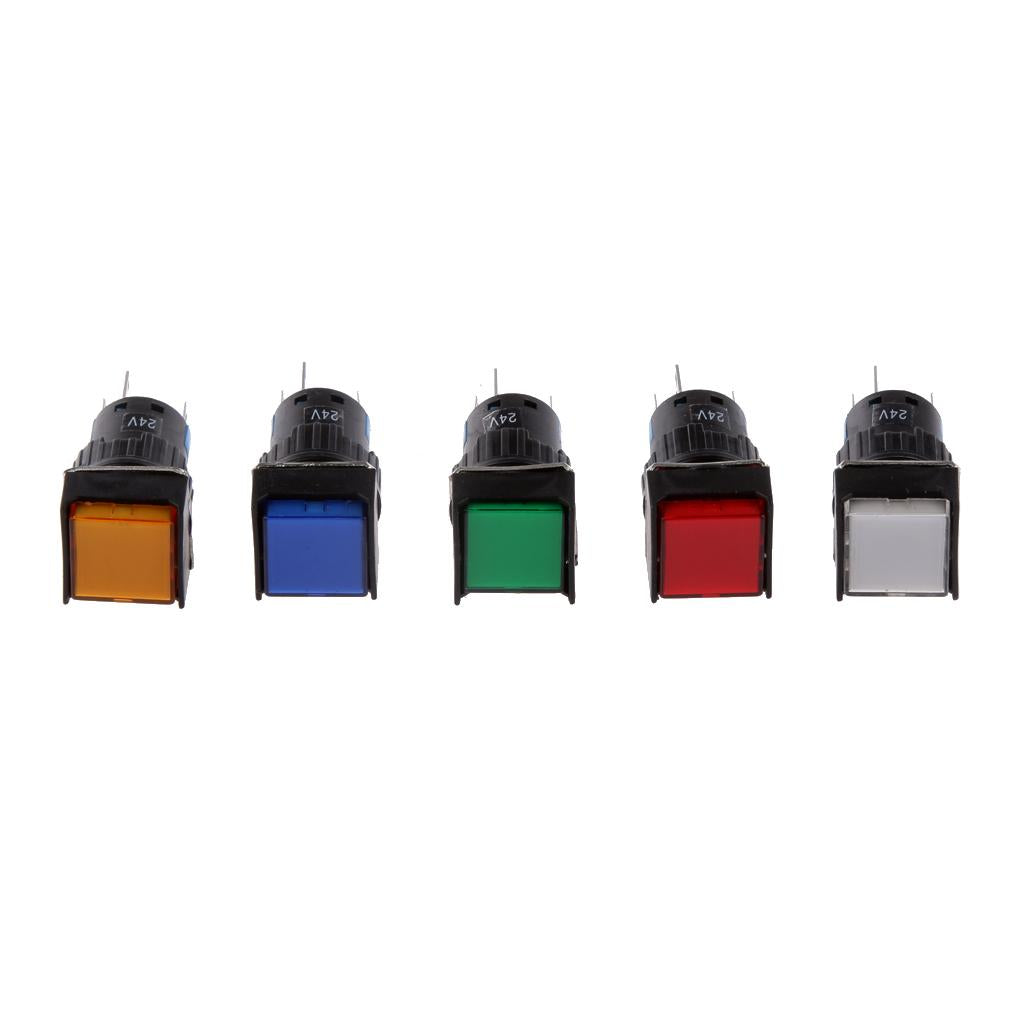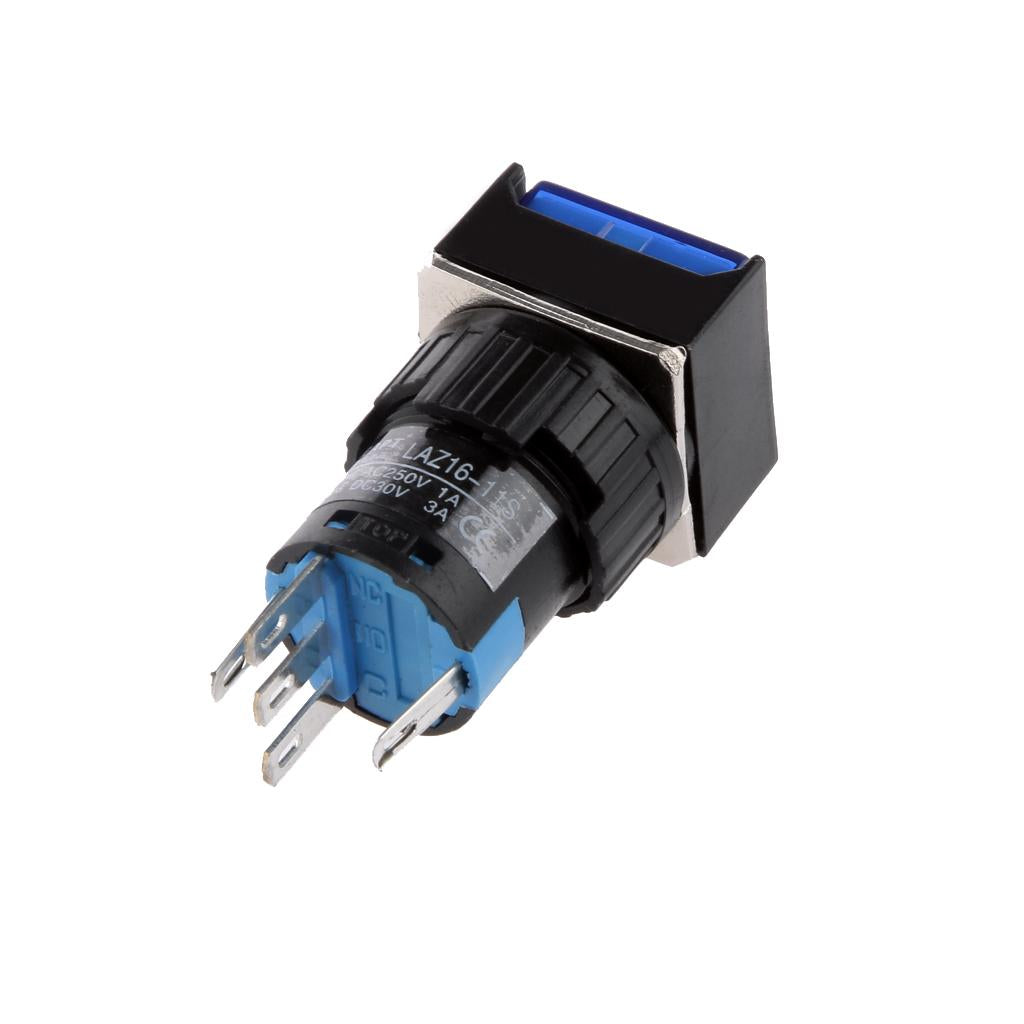 DC 24V 19*19mm Push Button Switch LED Light Self-Lock for Contactor Blue
