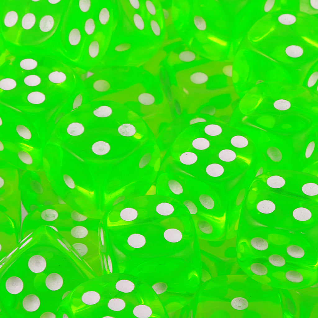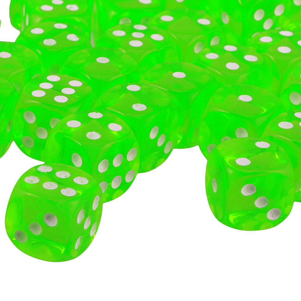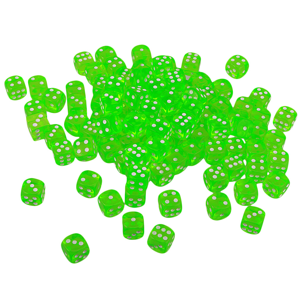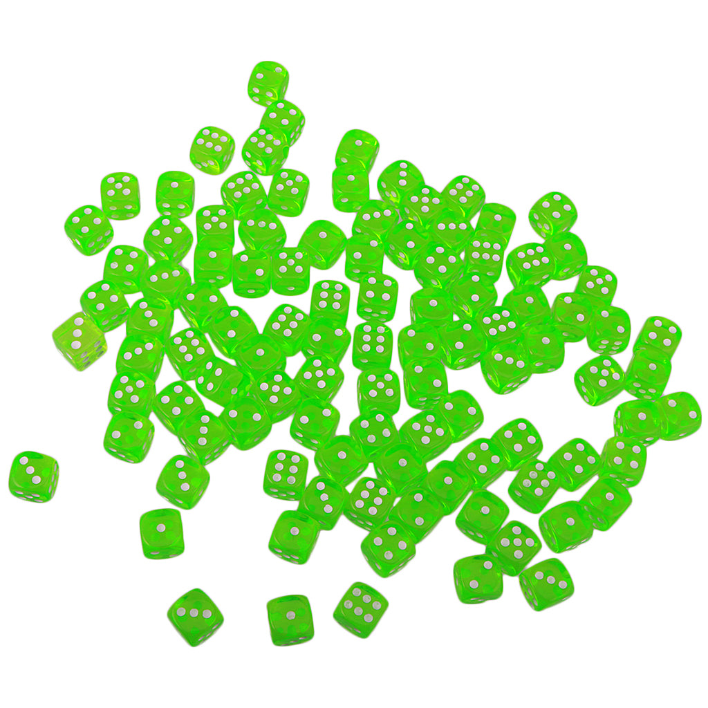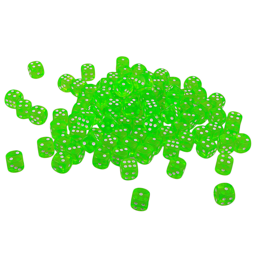 100pcs Transparent Six Sided D6 Dice for D&D TRPG Party Games Toys Green