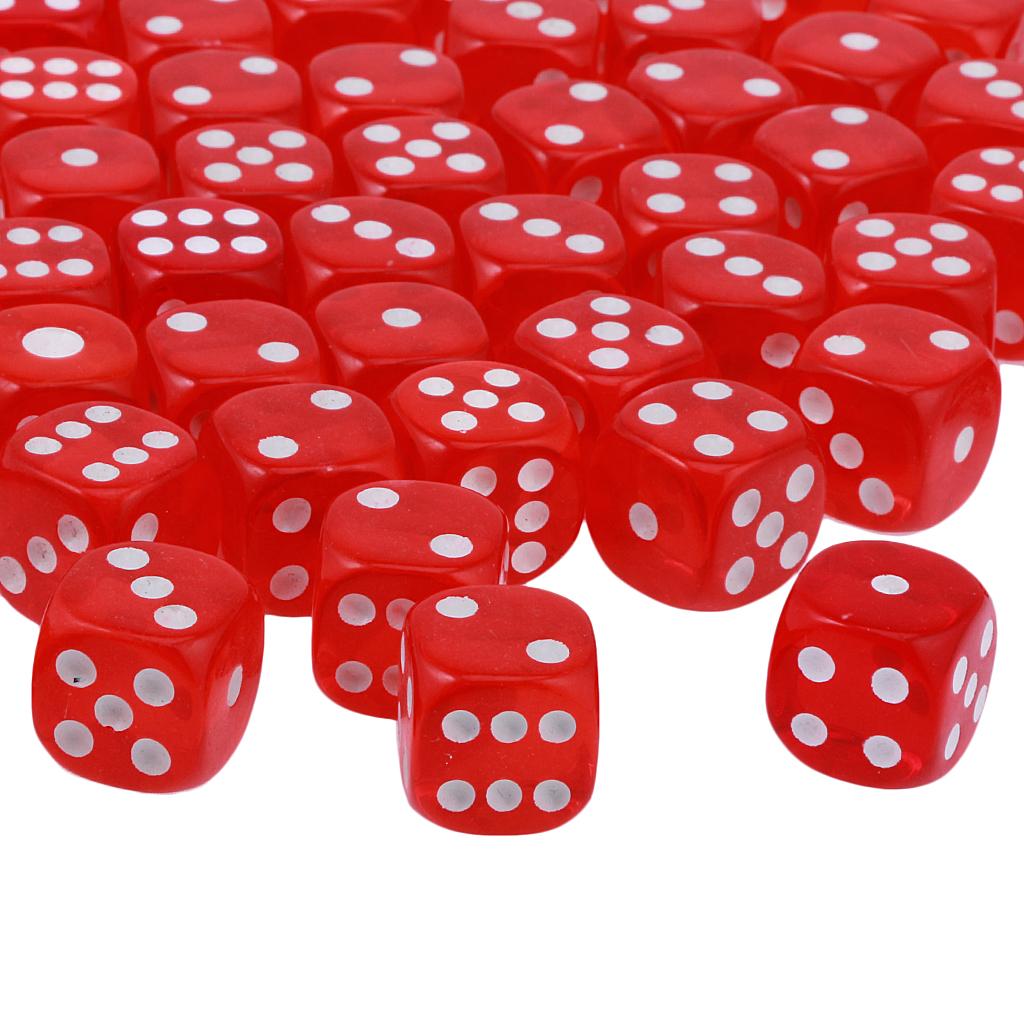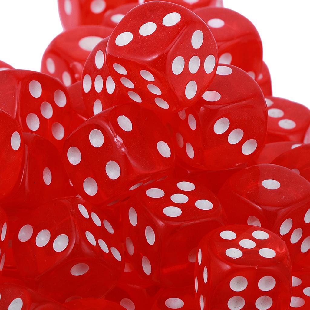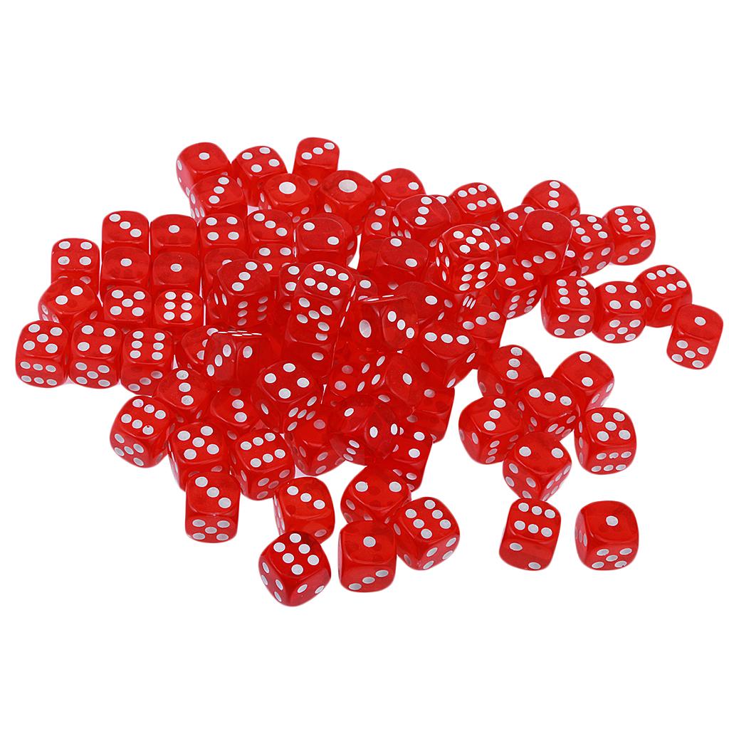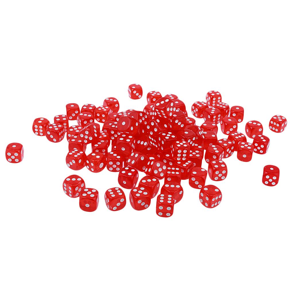 100pcs Transparent Six Sided D6 Dice for D&D TRPG Party Games Toys Red