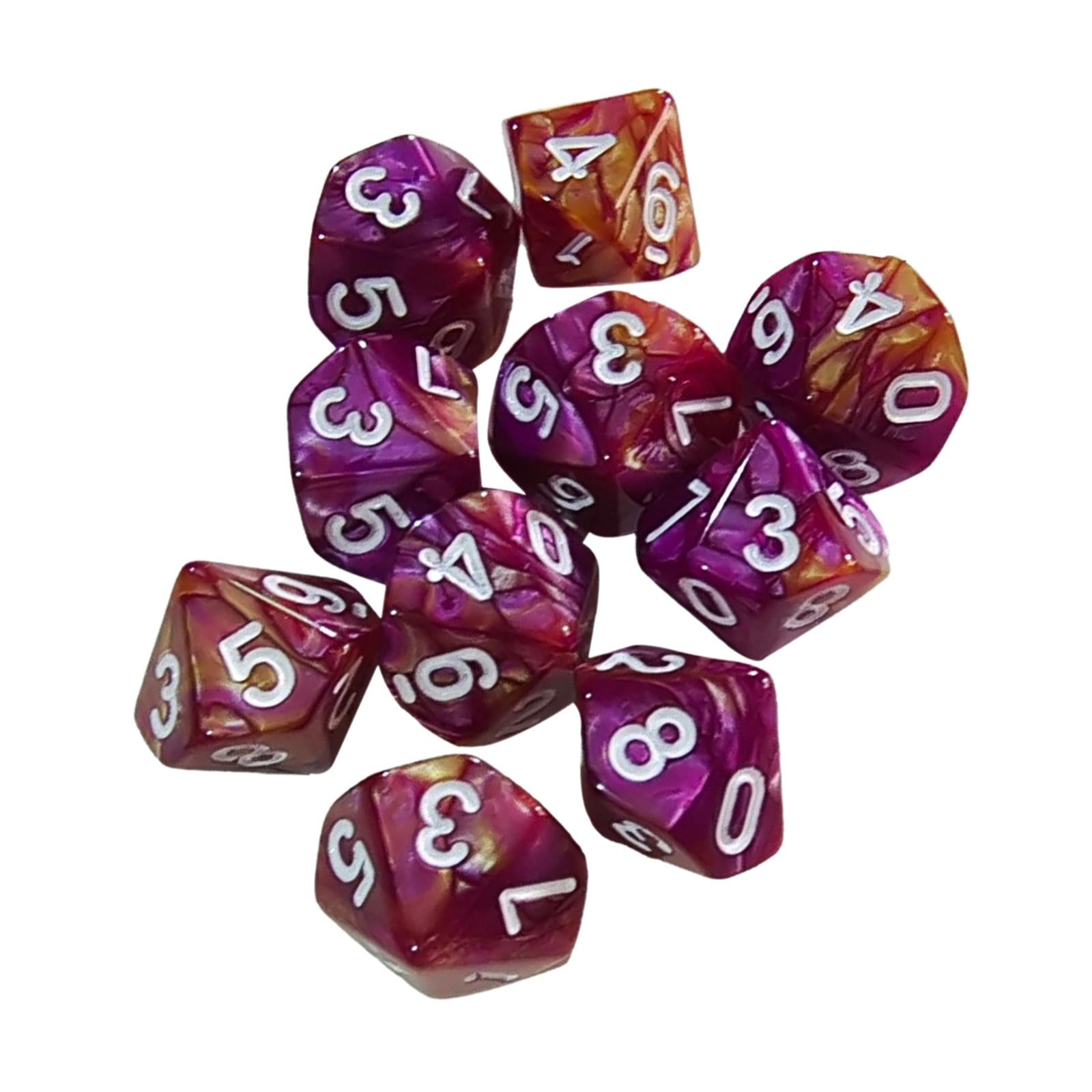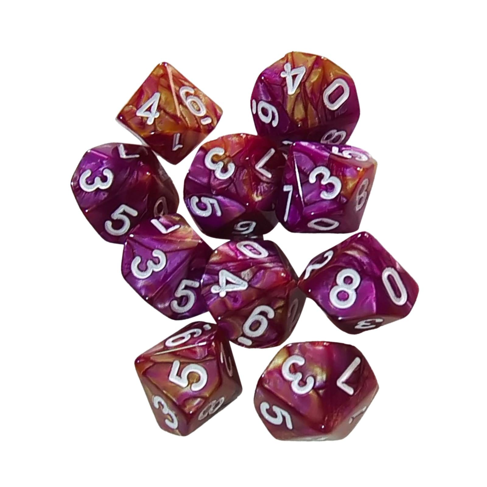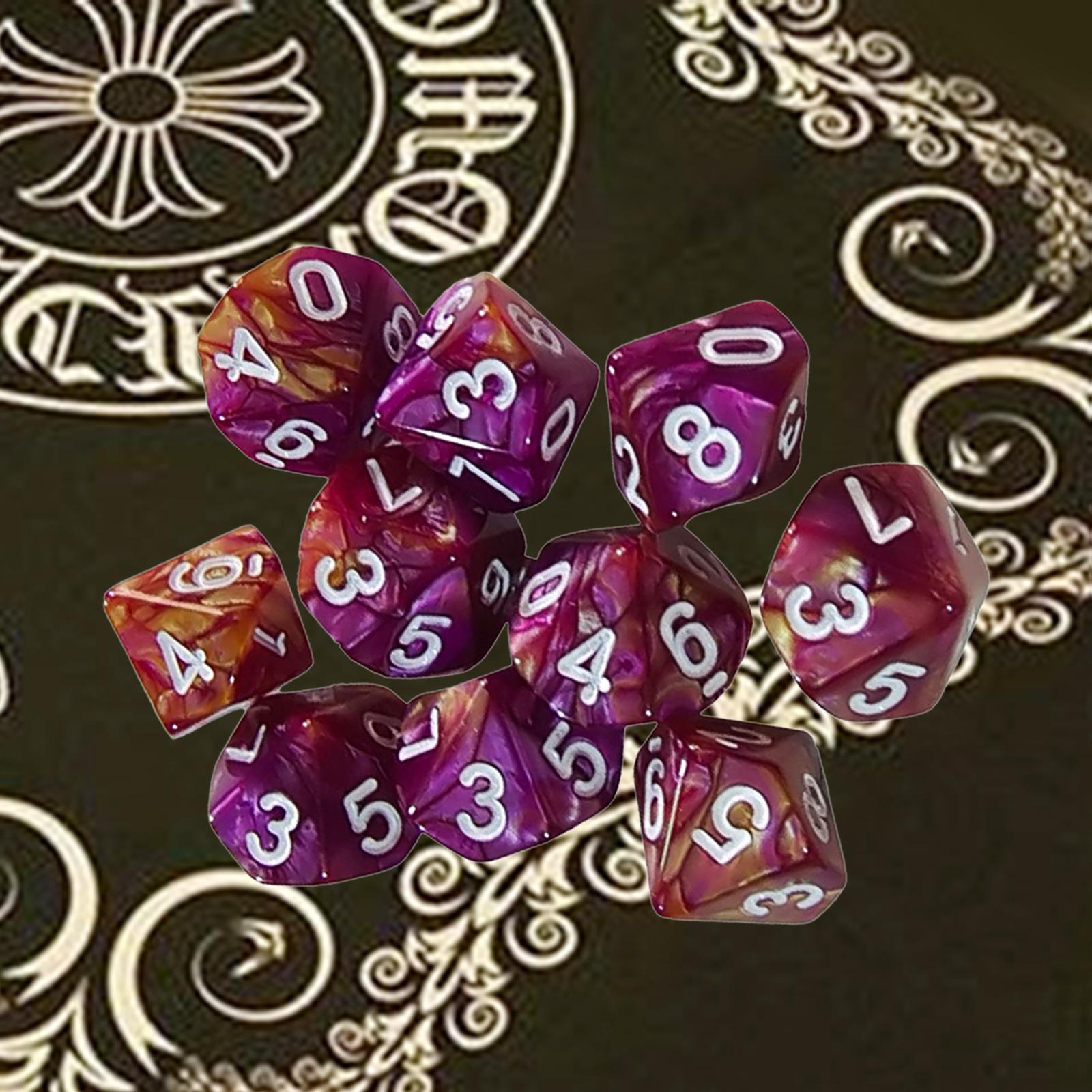 10pcs 10 Sided Dice D10 Polyhedral Dice for Dungeons and Dragons Table Games Purple Red
