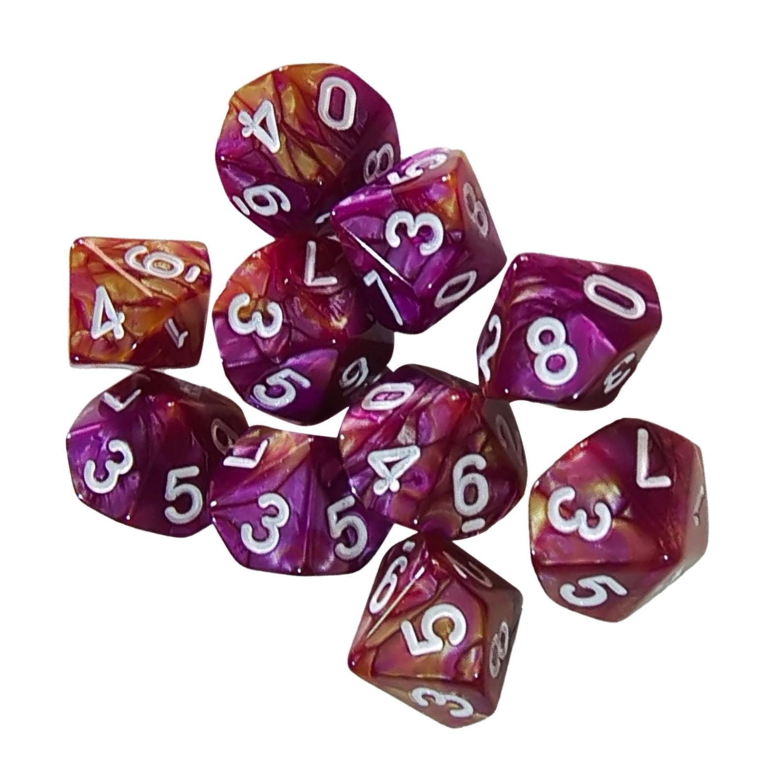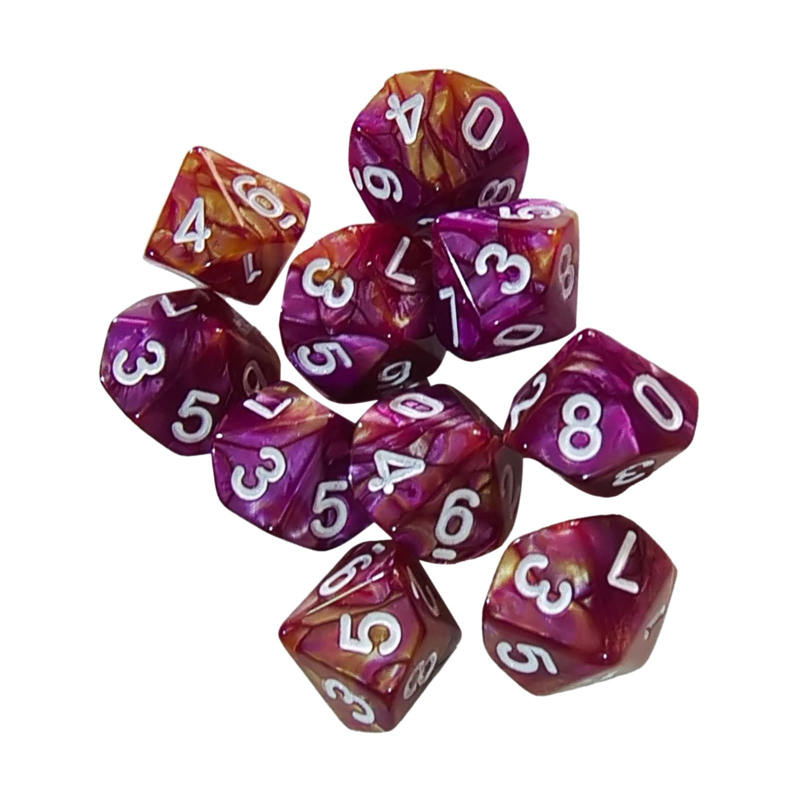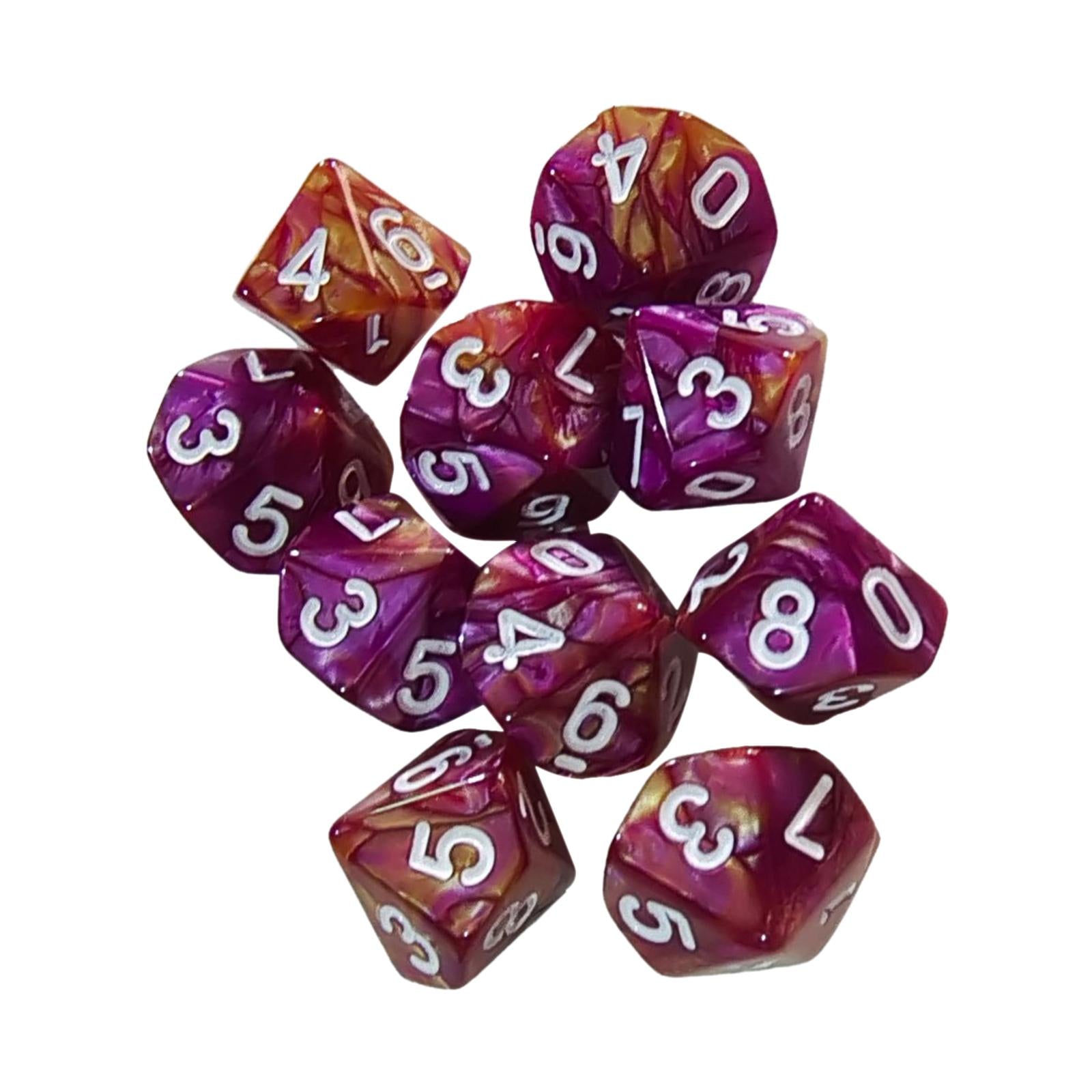 10pcs 10 Sided Dice D10 Polyhedral Dice for Dungeons and Dragons Table Games Purple Red