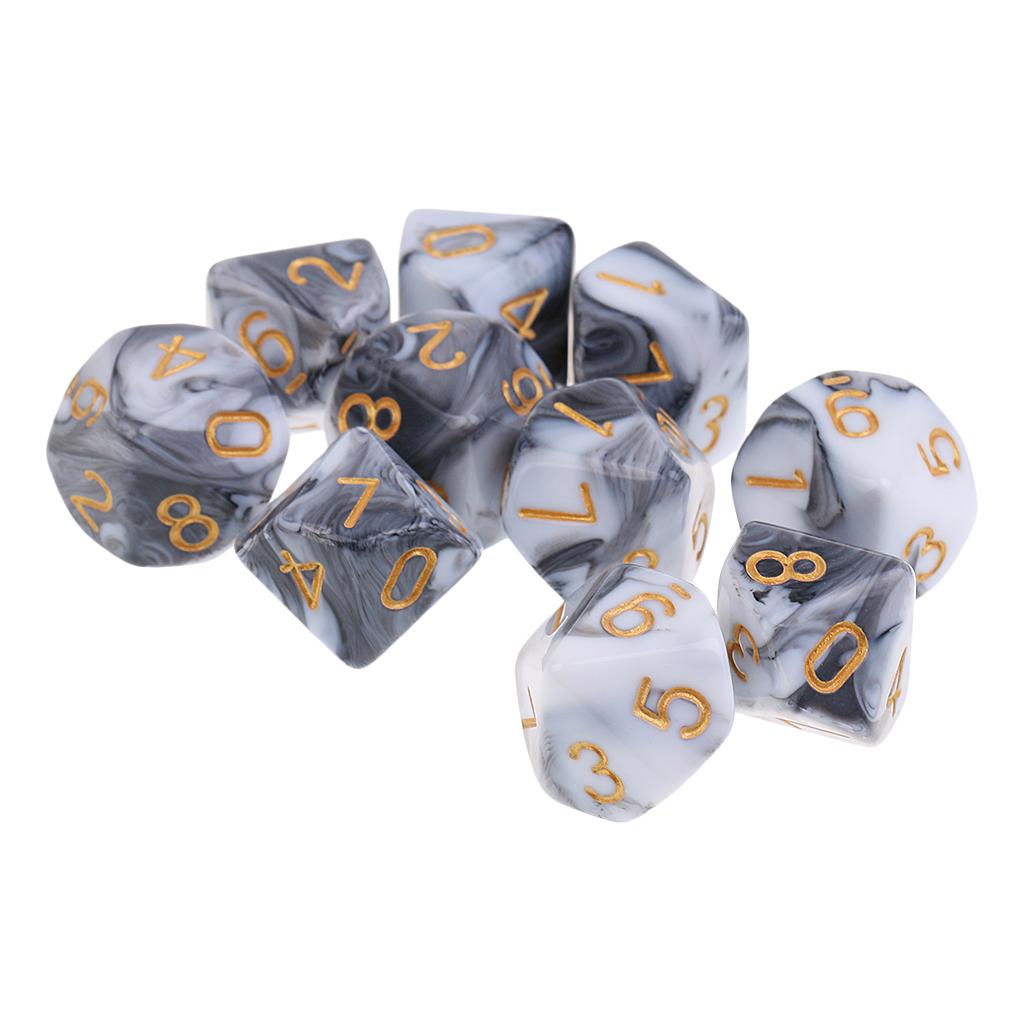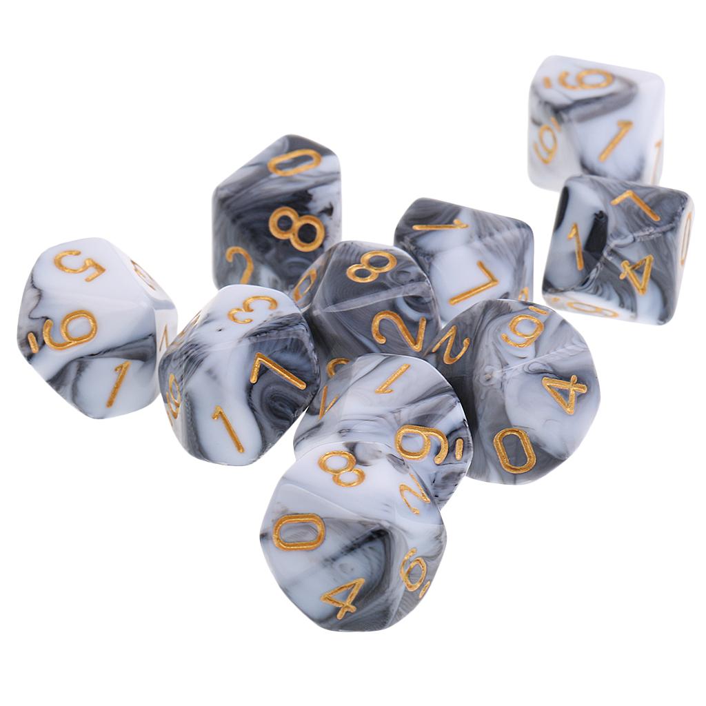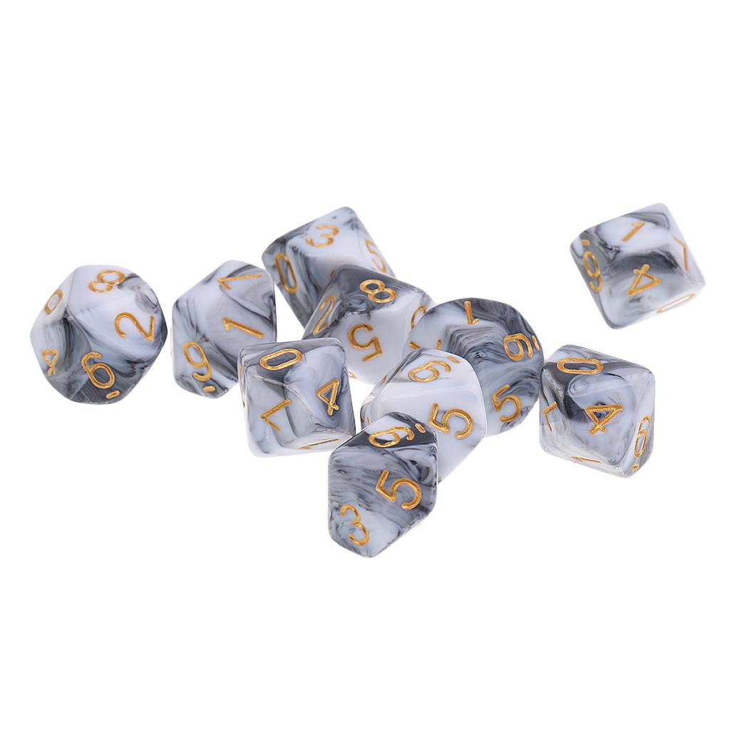 Contains 10PCS 10 Sided Dice D10 polyhedral dice,they are Double-Colors Dice.