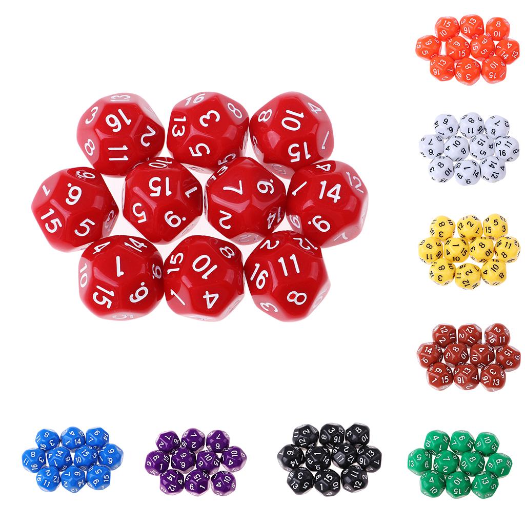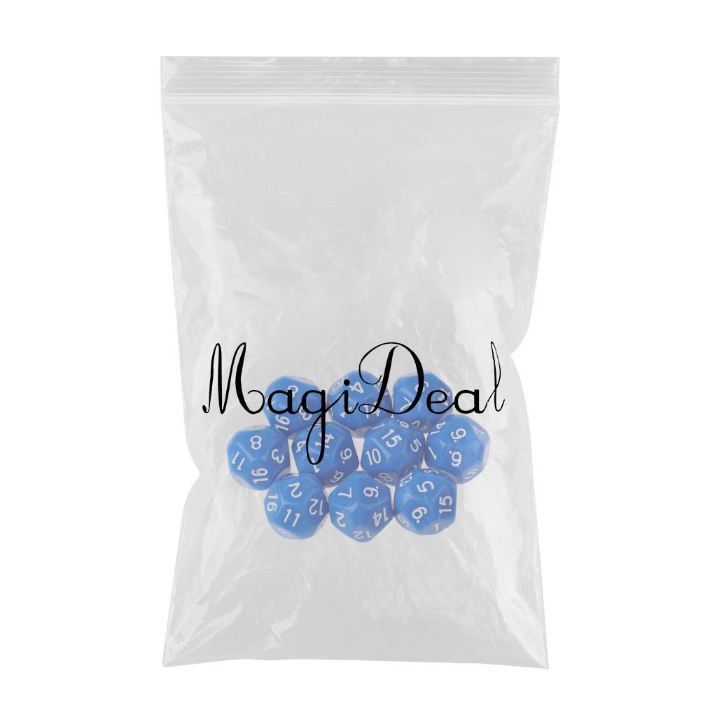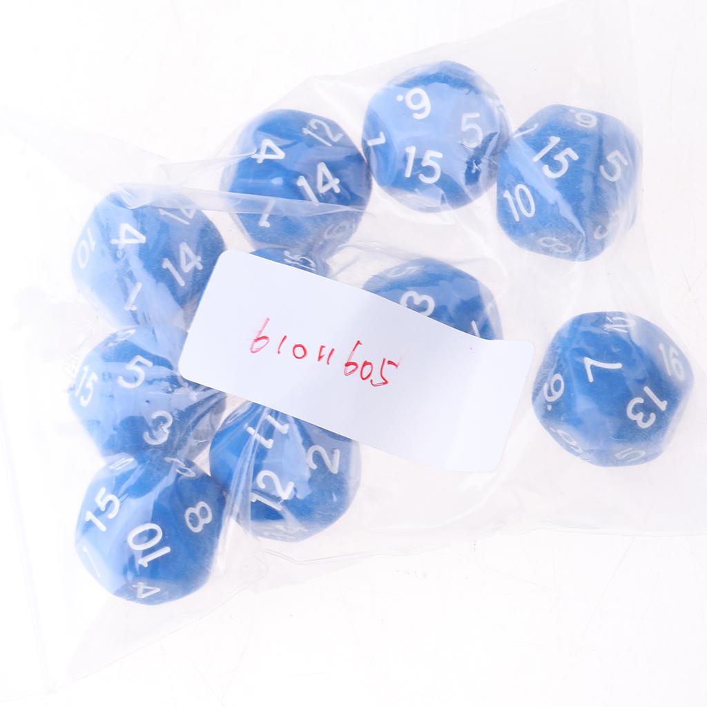 10pcs 16 Sided D16 14mm Acrylic Opaque Dice for Role Playing Game RPG Blue