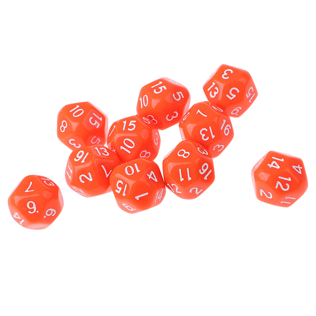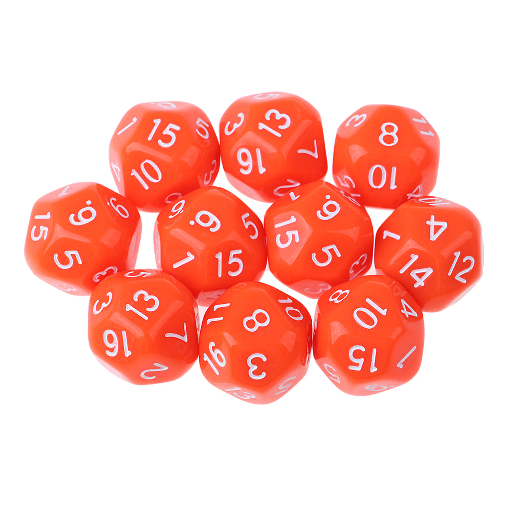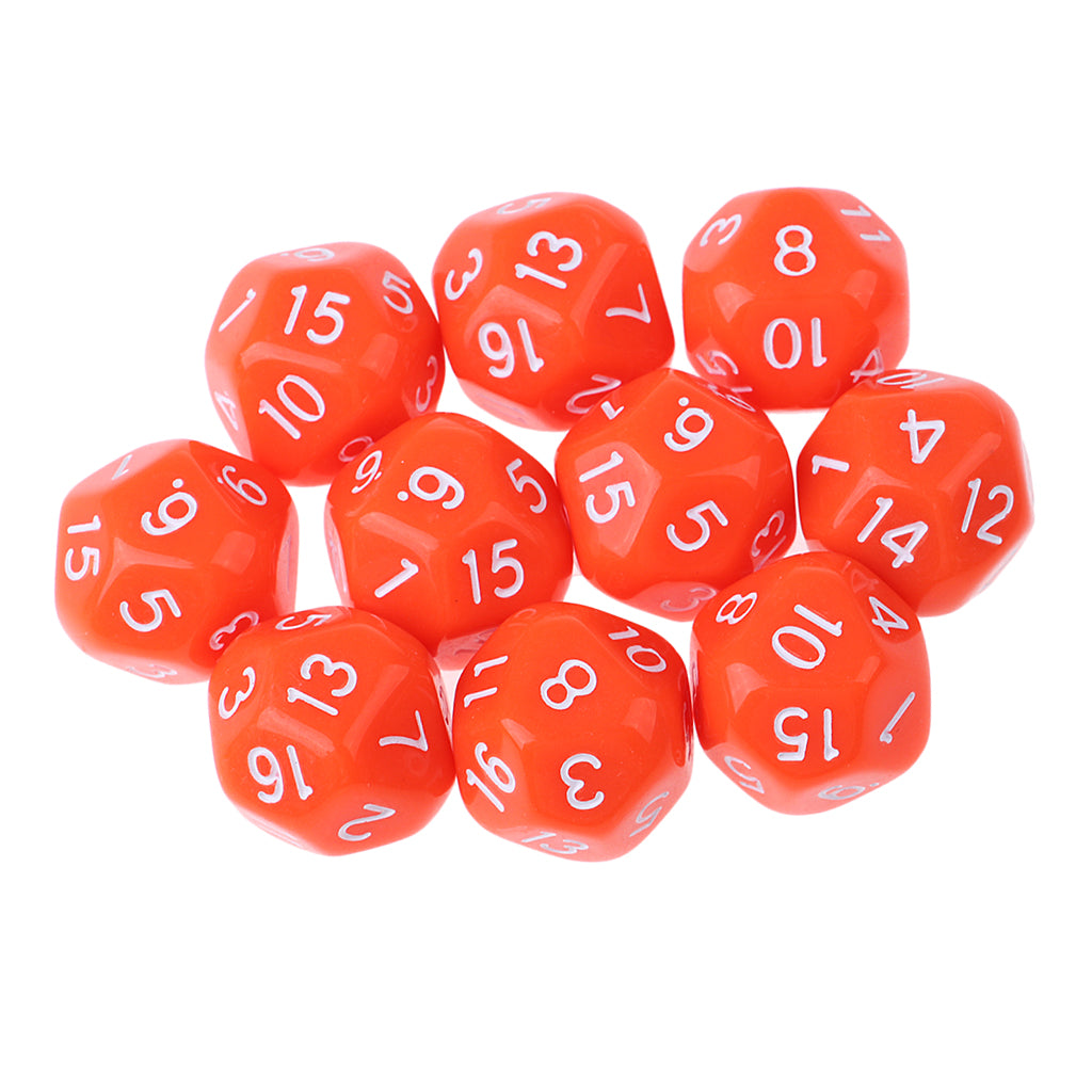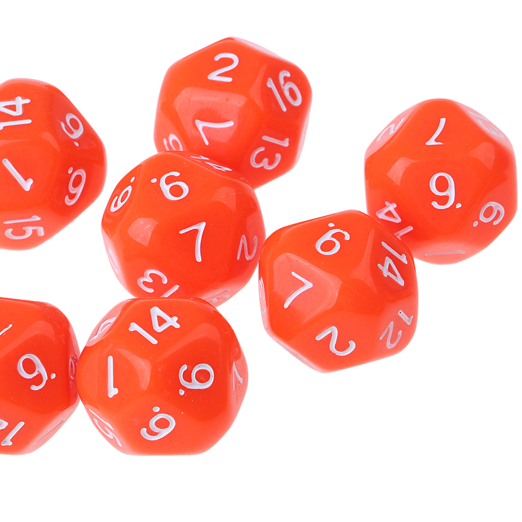 10pcs 16 Sided D16 14mm Acrylic Opaque Dice for Role Playing Game RPG Orange