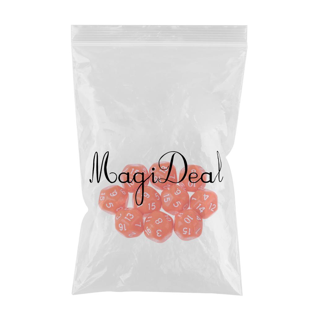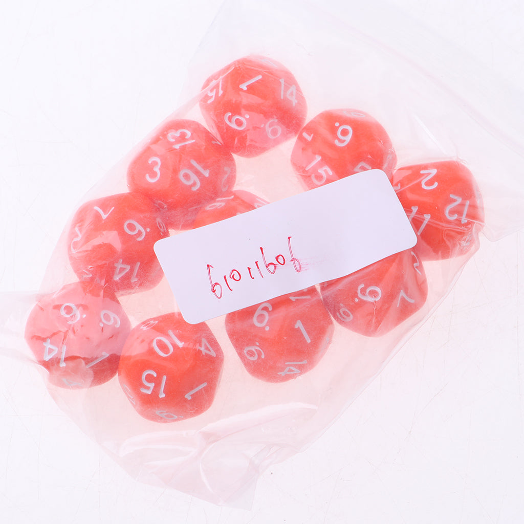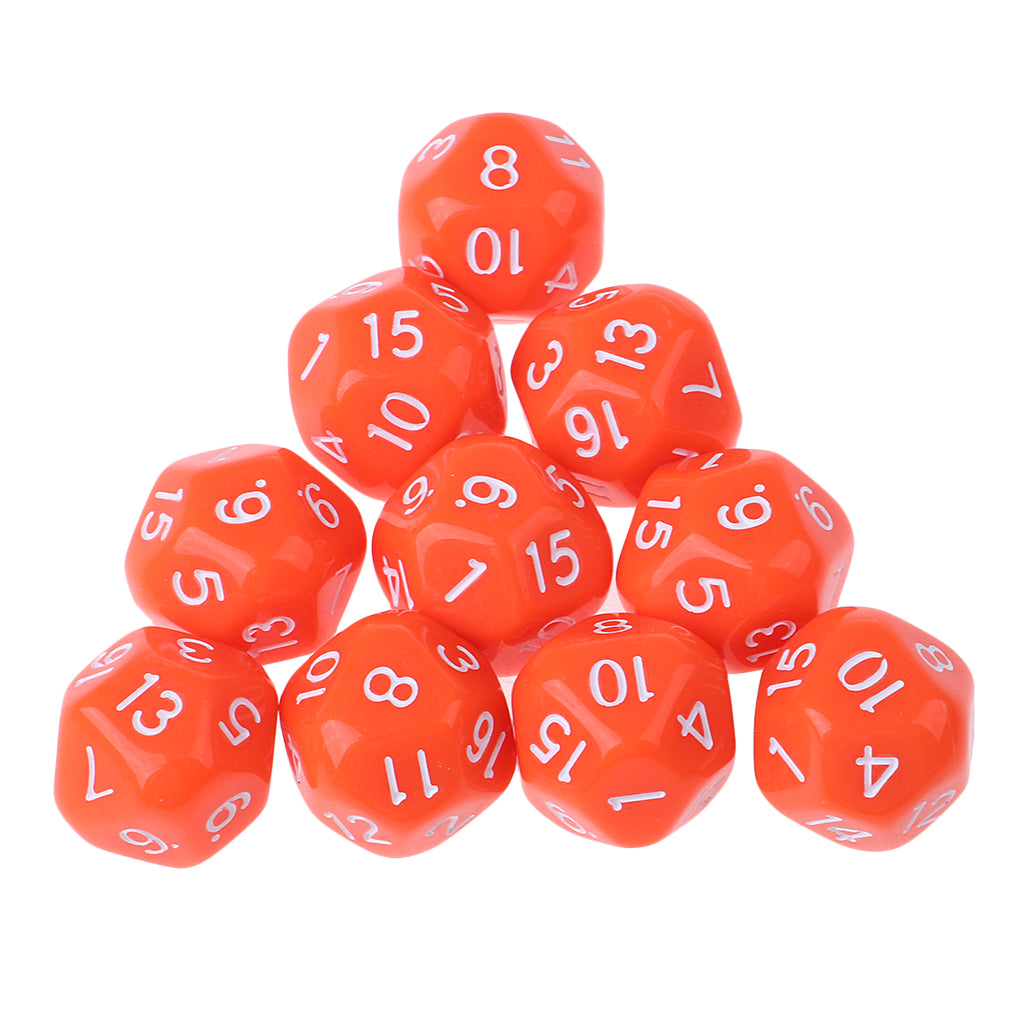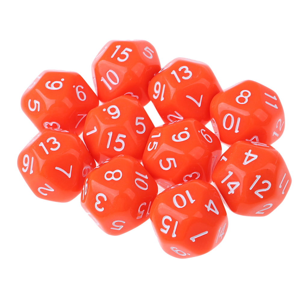 10pcs 16 Sided D16 14mm Acrylic Opaque Dice for Role Playing Game RPG Orange