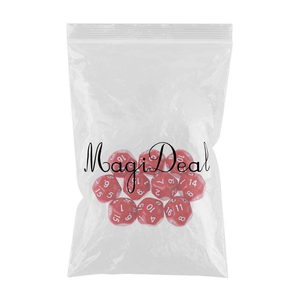 10pcs 16 Sided D16 14mm Acrylic Opaque Dice for Role Playing Game RPG Red