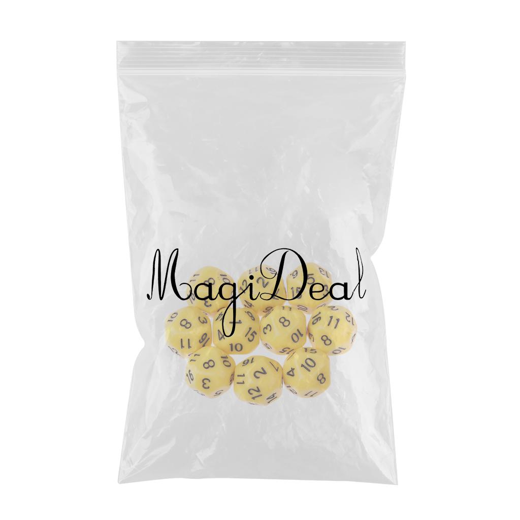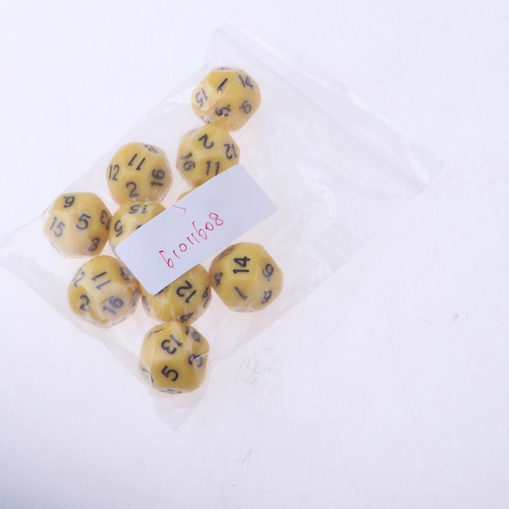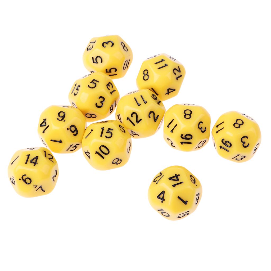 10pcs 16 Sided D16 14mm Acrylic Opaque Dice for Role Playing Game RPG Yellow