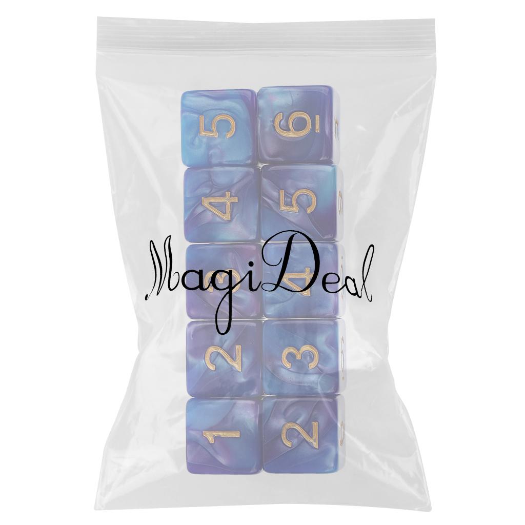 10pcs 6 Sided Dice D6 Polyhedral Dice for Dungeons and Dragons Table Games Blue Purple