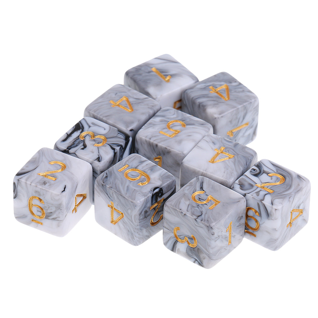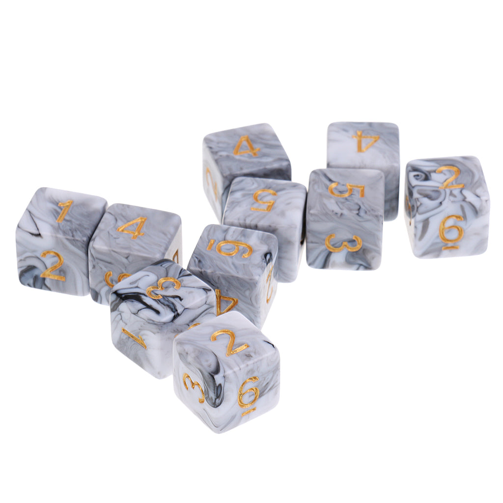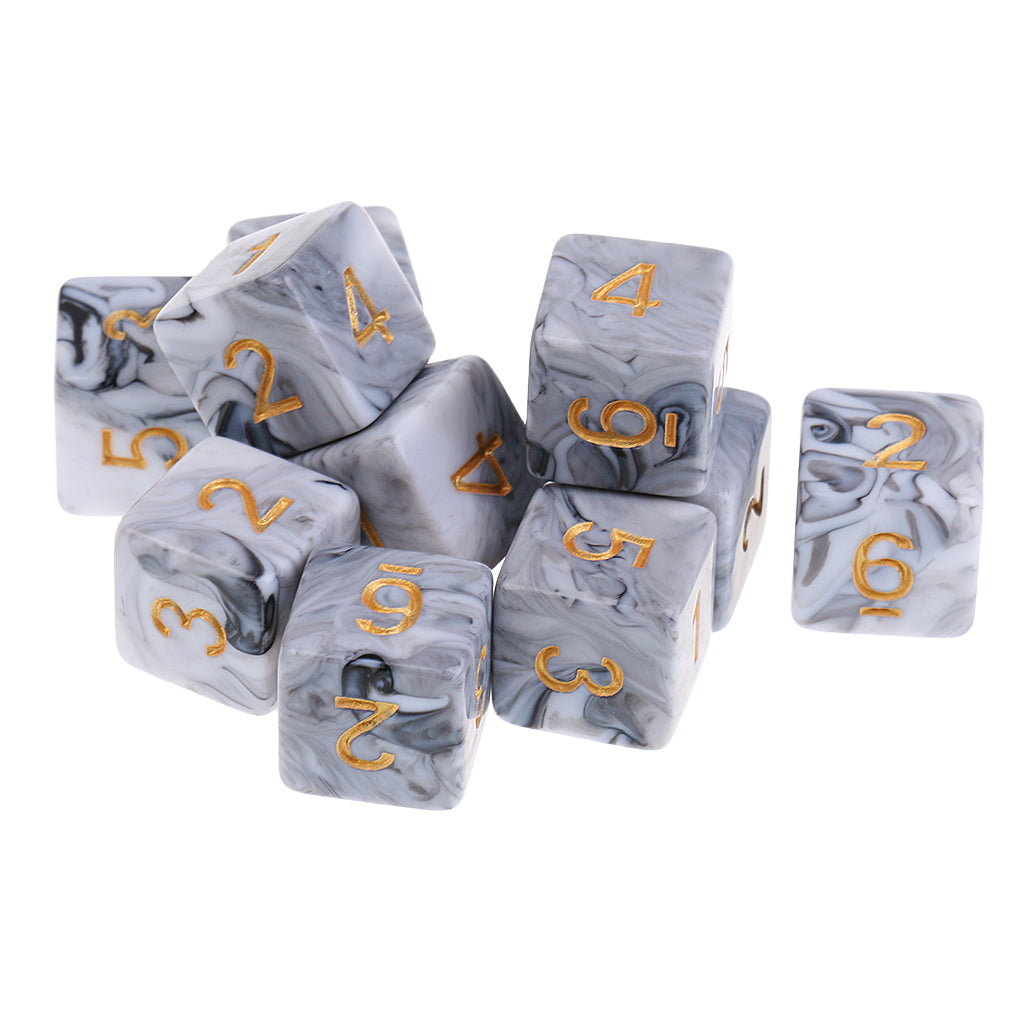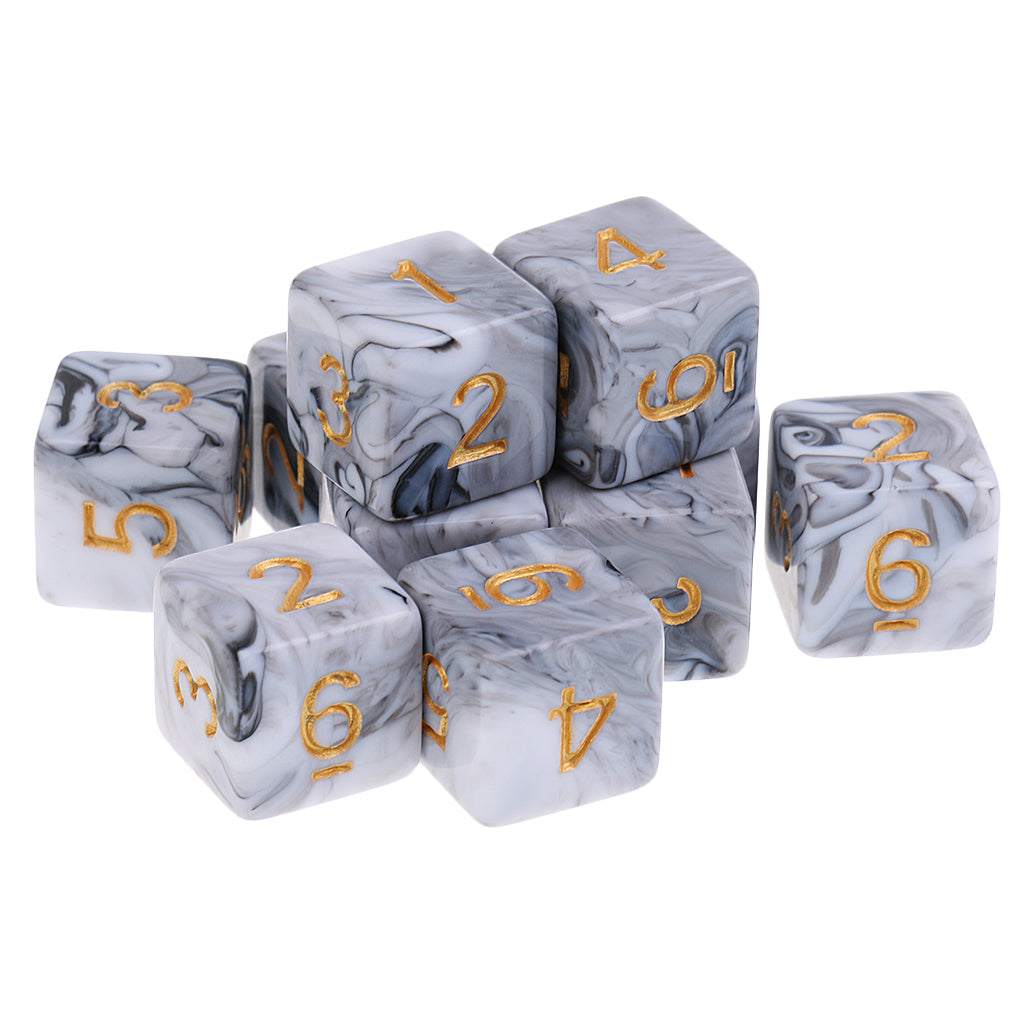 10pcs 6 Sided Dice D6 Polyhedral Dice for Dungeons and Dragons Table Games Gray White