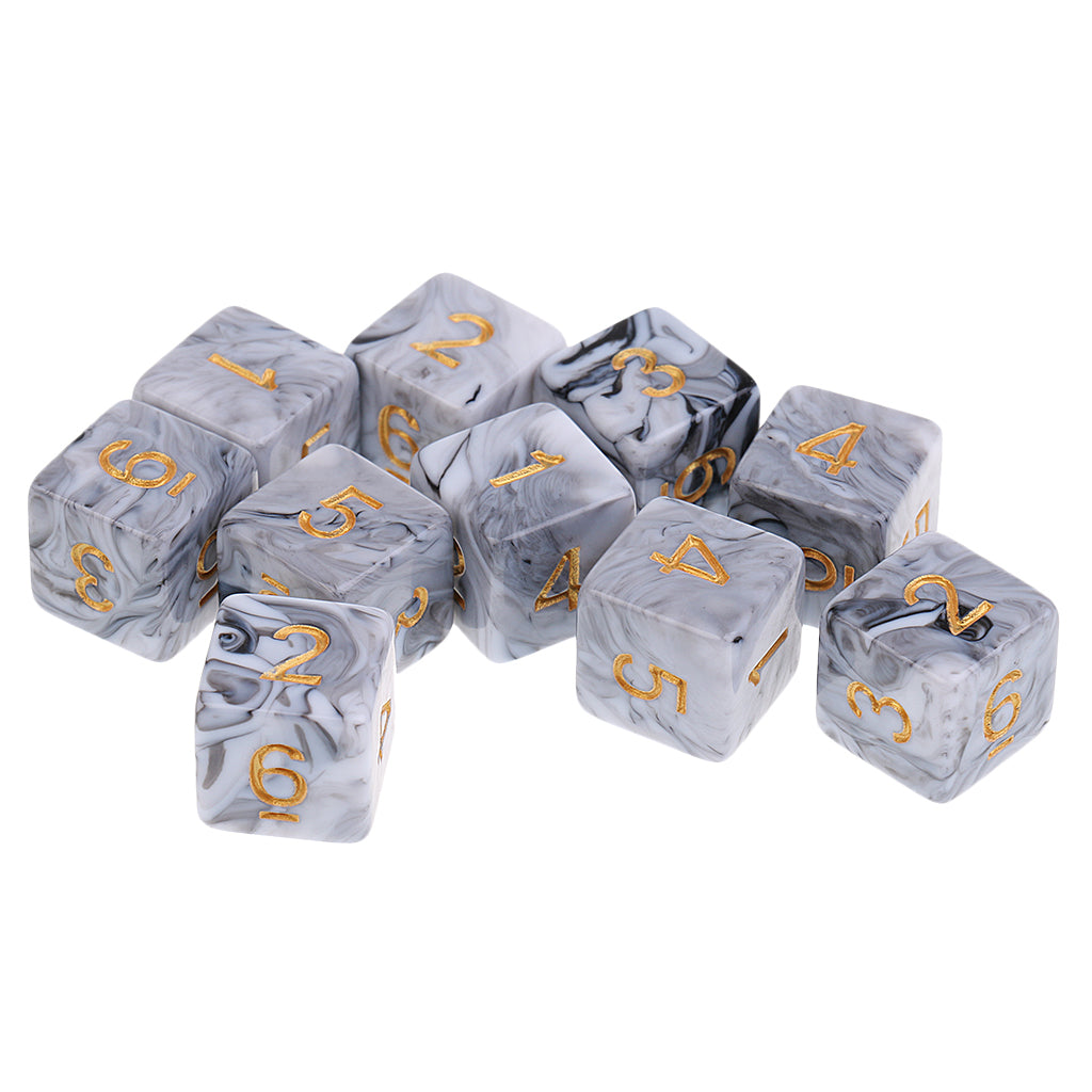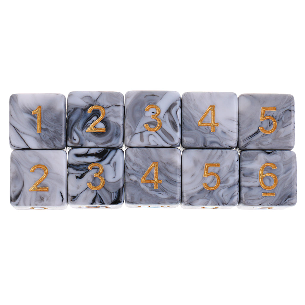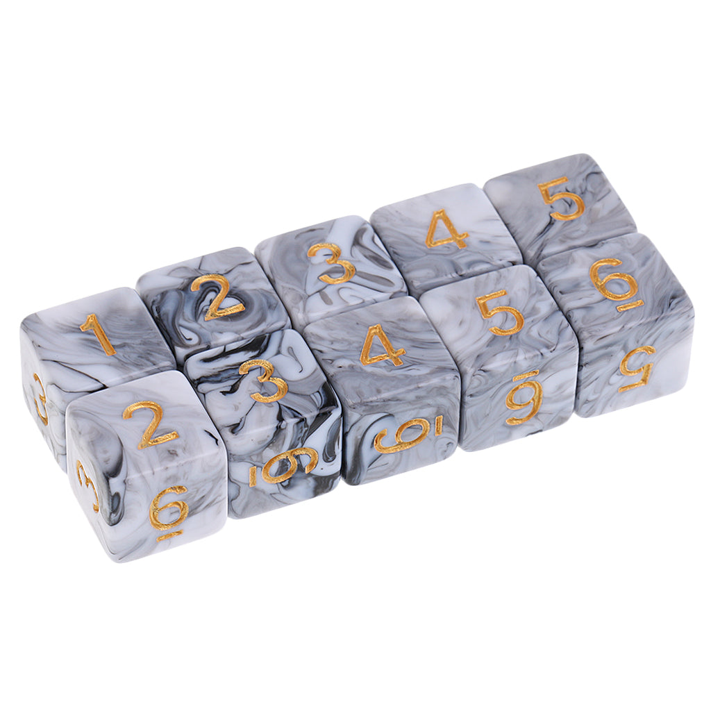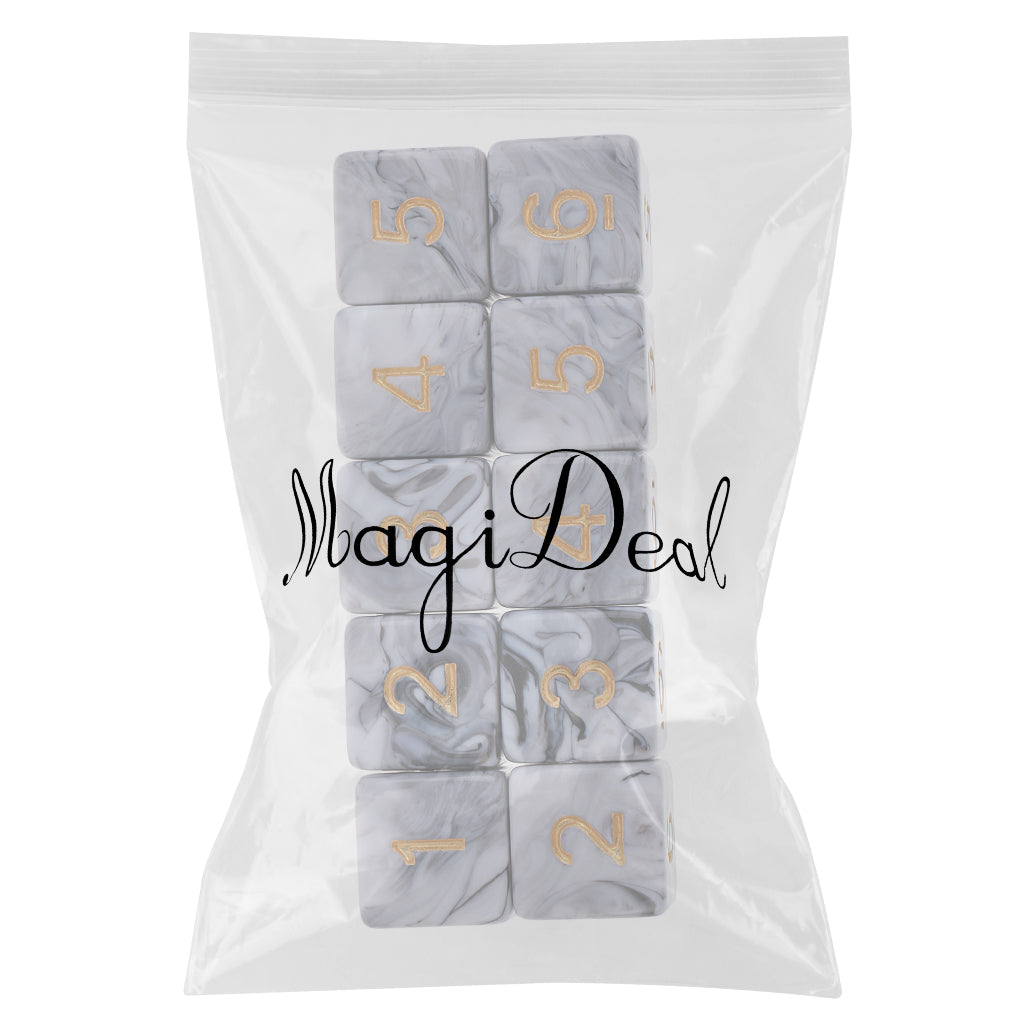 10pcs 6 Sided Dice D6 Polyhedral Dice for Dungeons and Dragons Table Games Gray White