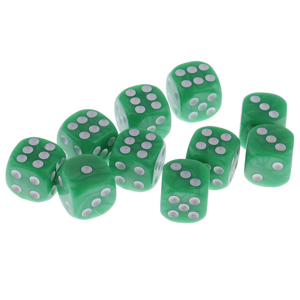 10pcs/Pack Plastic Six Sided Dice D6 for Party Bar Game Accessory Green