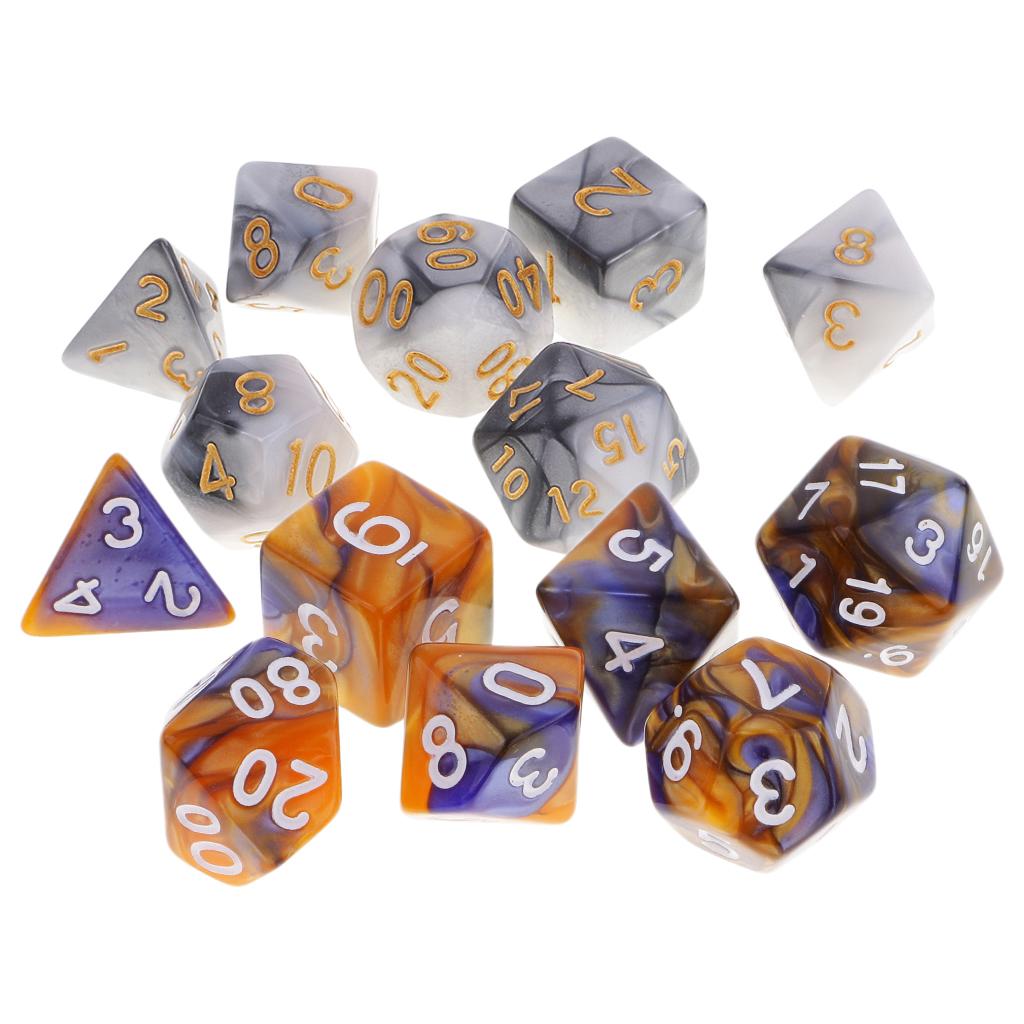 The 14pcs Dice set contains one D4, D6, D8, 2pcs D10, D12, D20