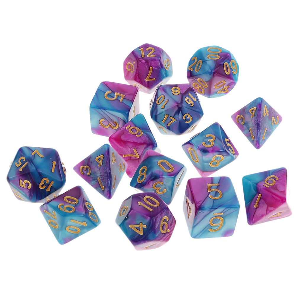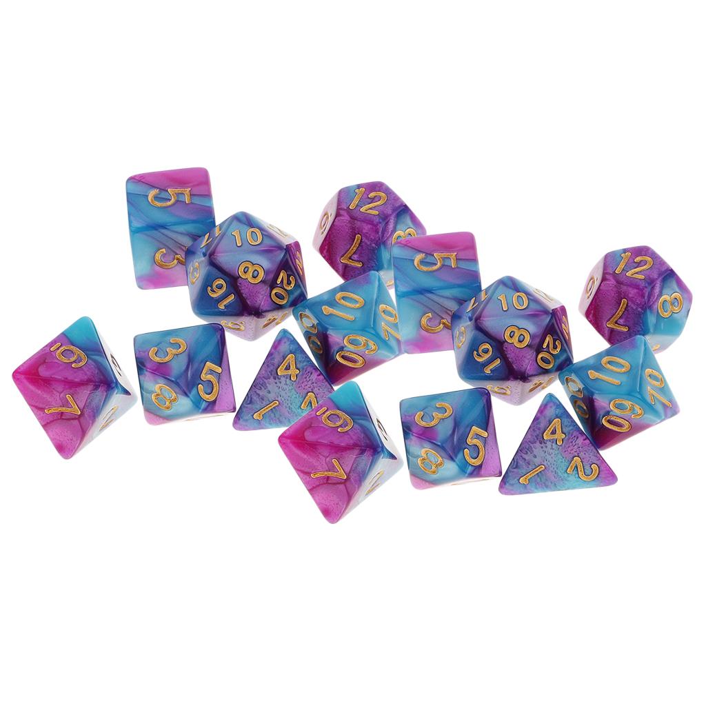 14 Pieces Polyhedral Dice Set D20 D12 D10 D8 D6 D4 for Dungeons & Dragons RPG Board Game Party Supplies Purple Blue