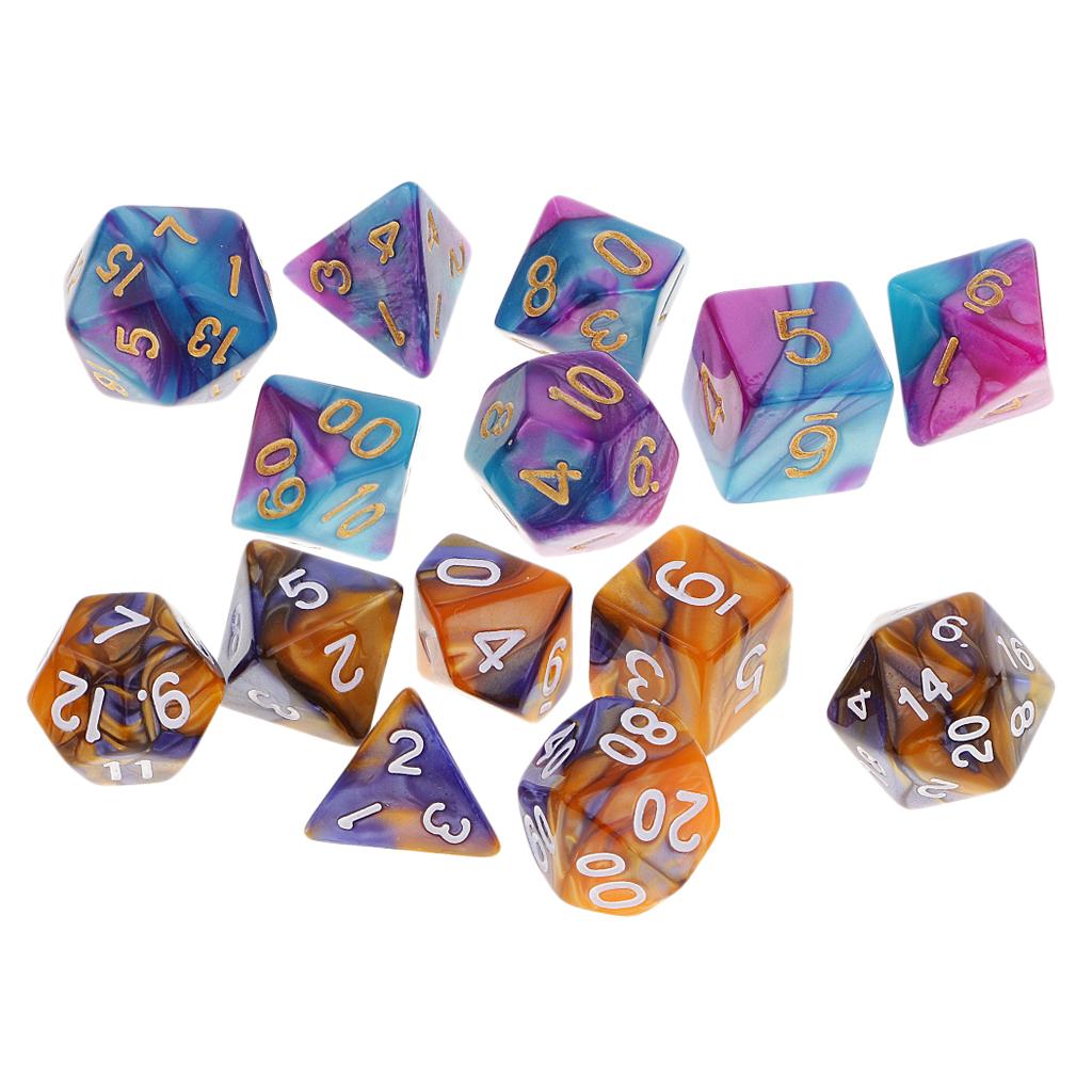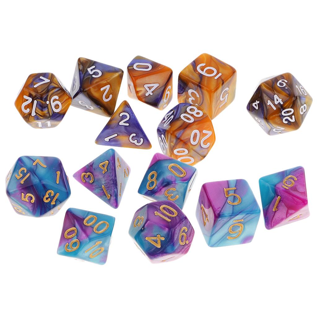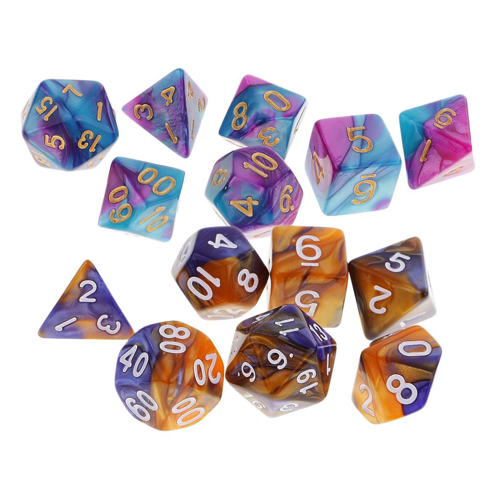 The 14pcs Dice set contains two D4, D6, D8, 4pcs D10, D12, D20