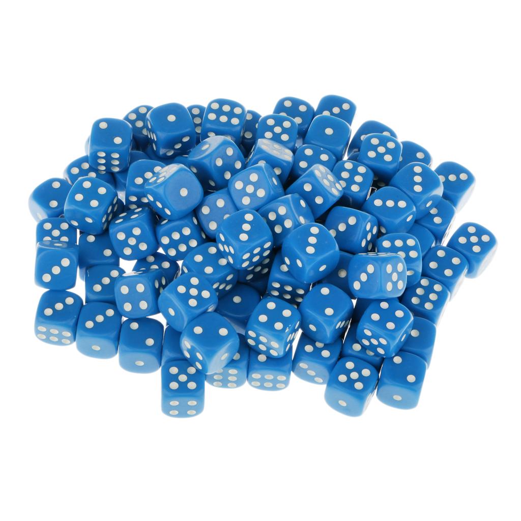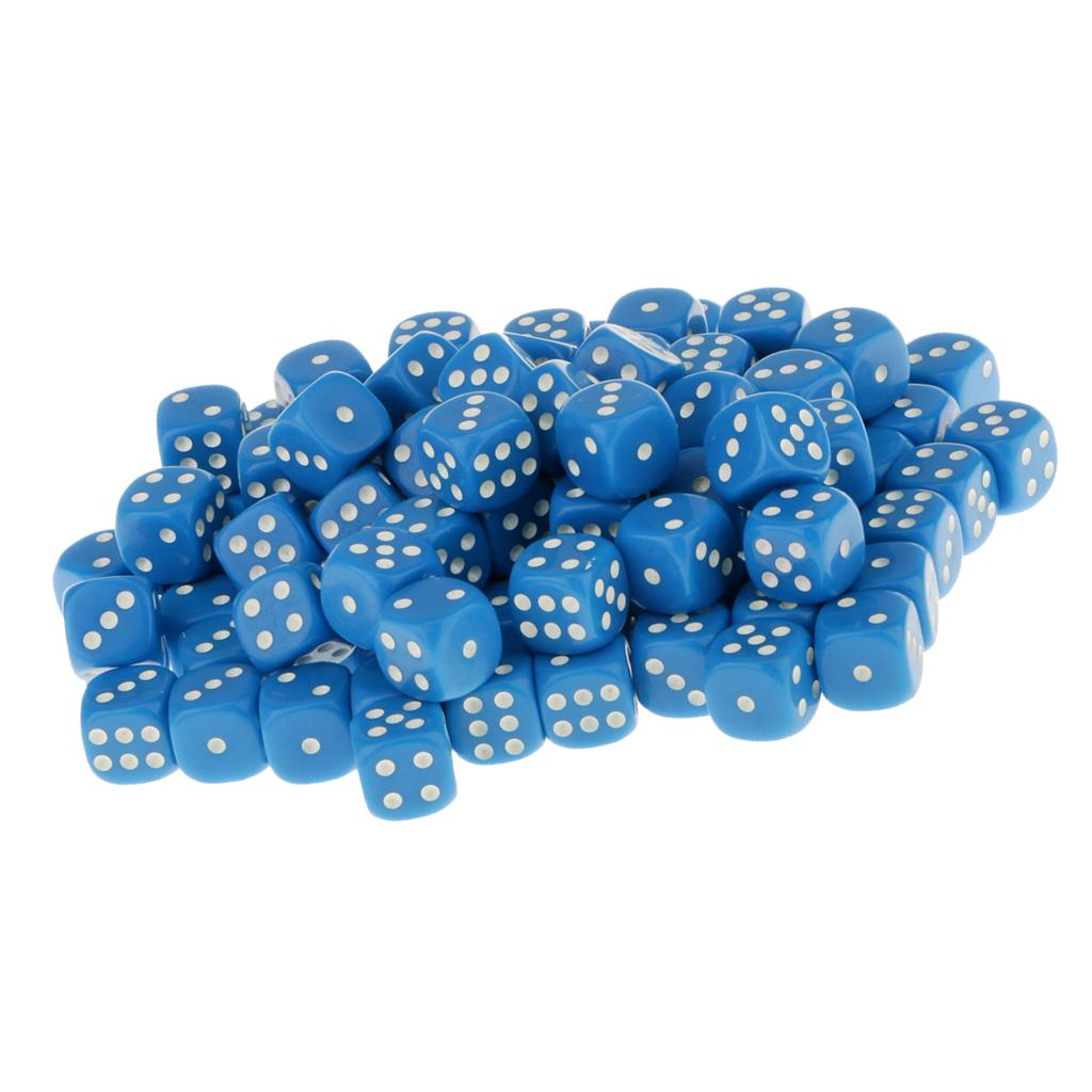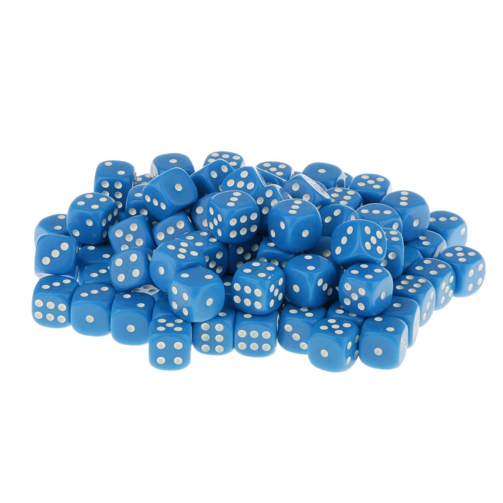 16mm 100pcs Acrylic Six Sided Spot Dice Party Games Dice Blue Color