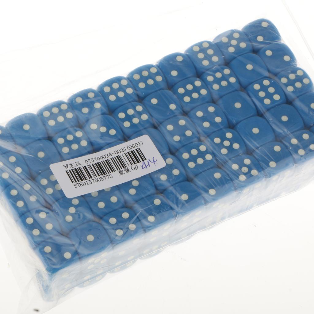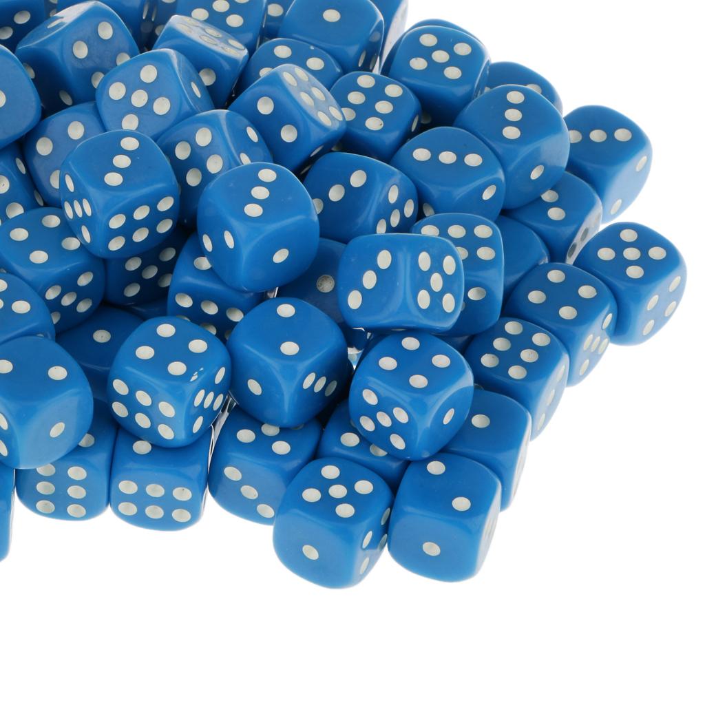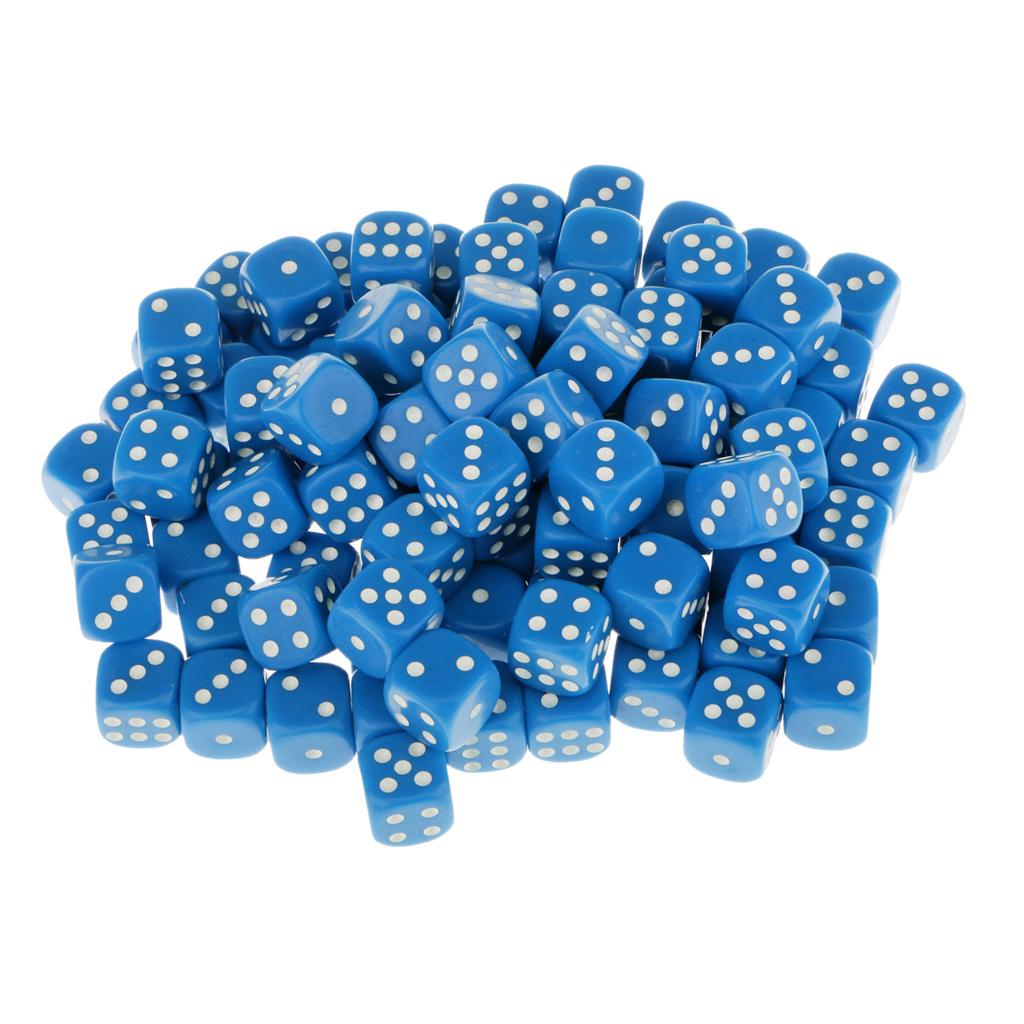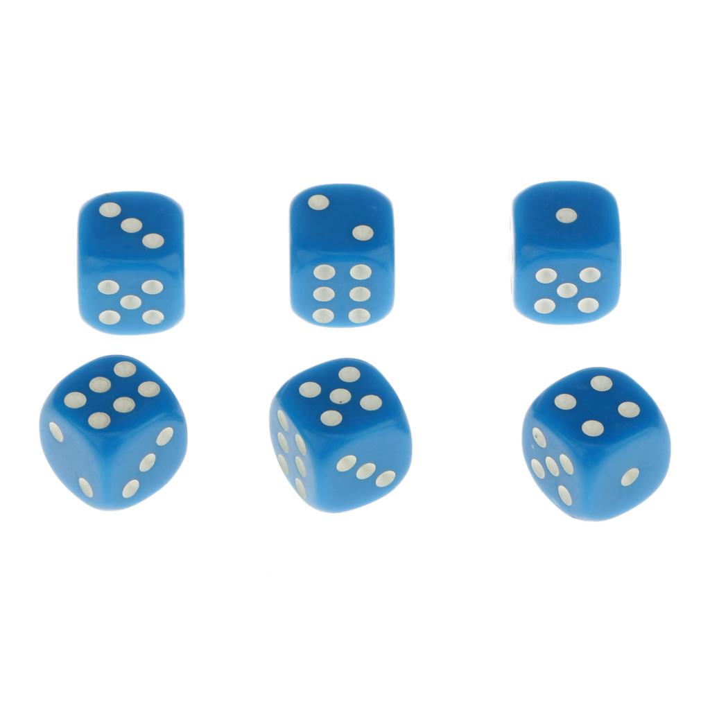 16mm 100pcs Acrylic Six Sided Spot Dice Party Games Dice Blue Color