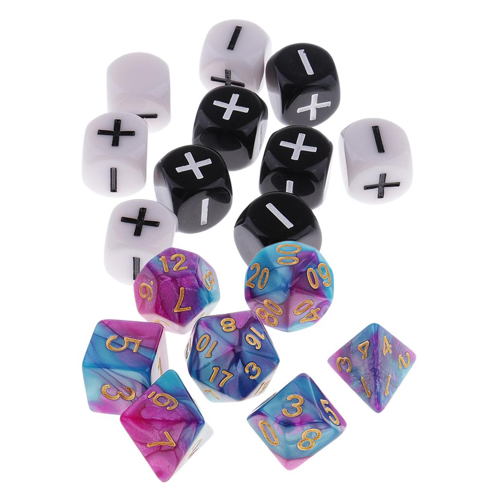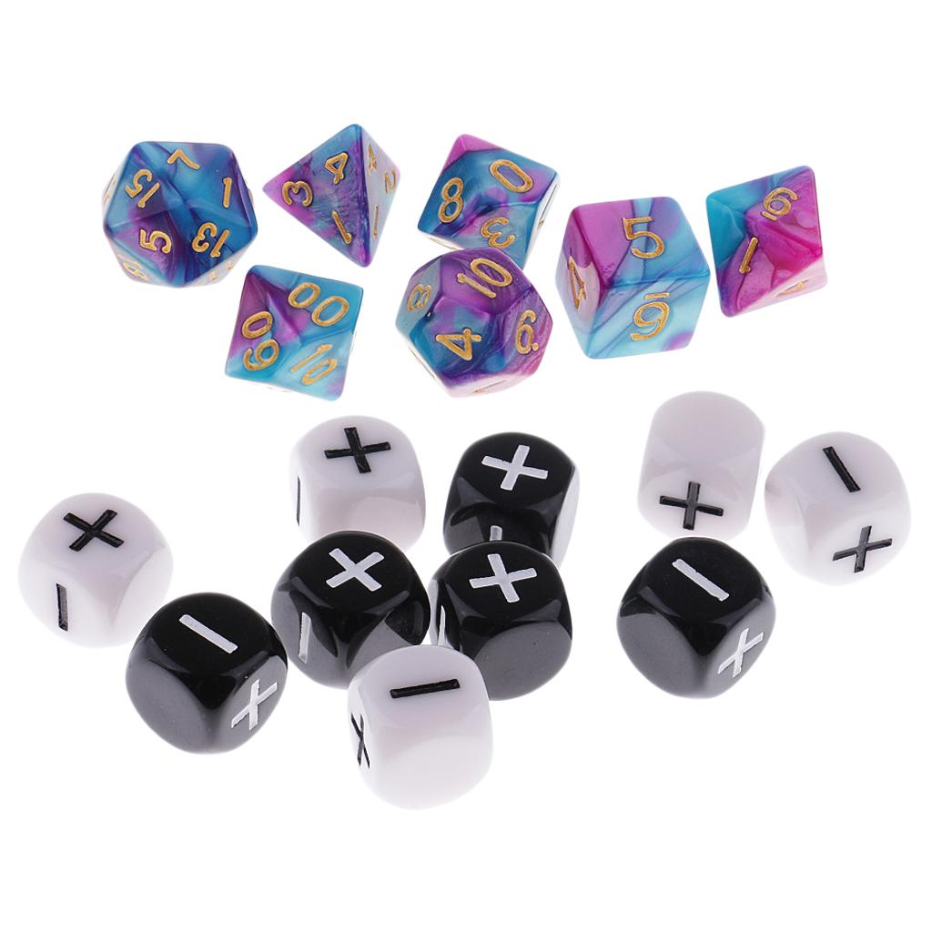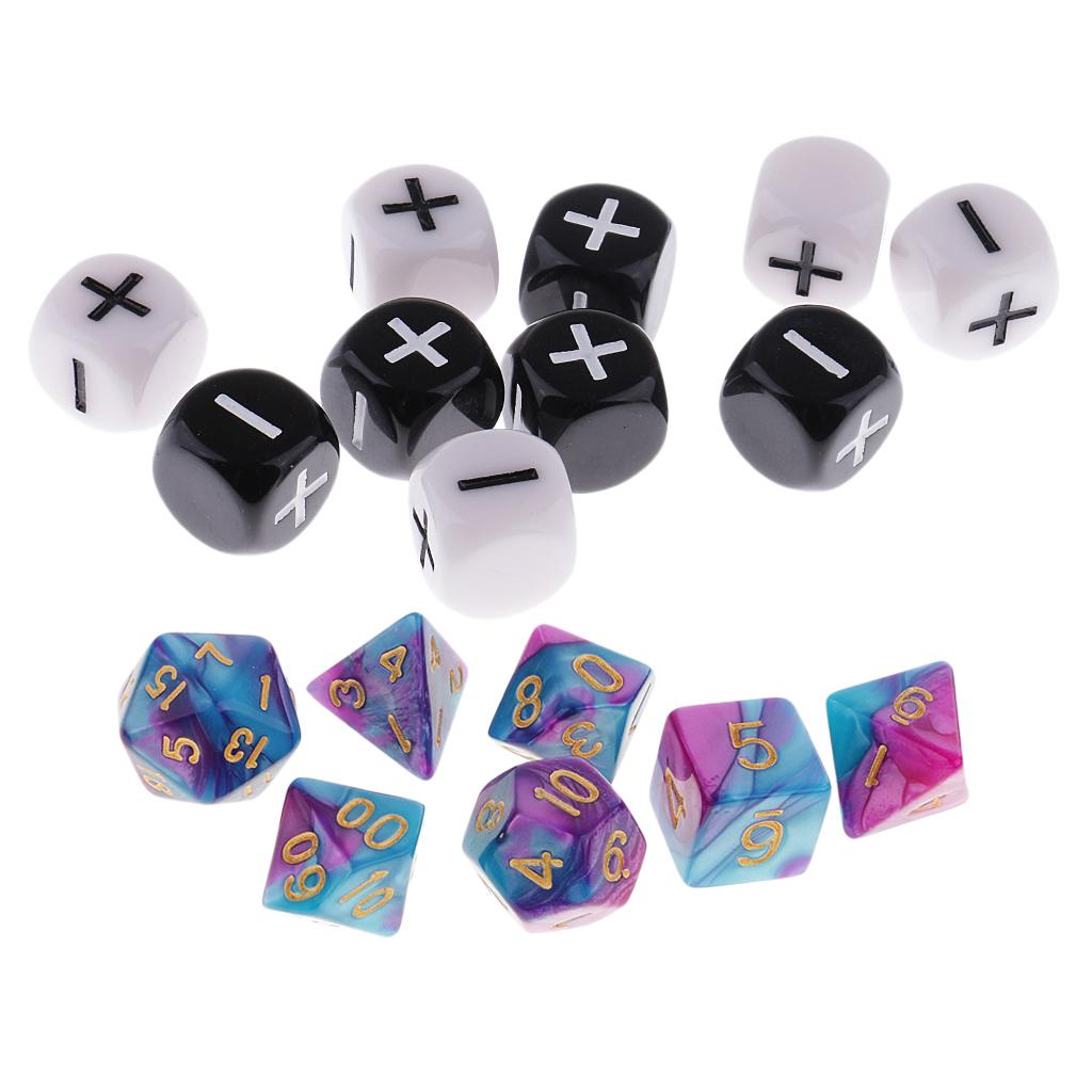 10 pieces six sided dices, D6 plus & minus dice; 7 pieces Dice set contains one D4, D6, D8, 2pcs D10, D12, D20