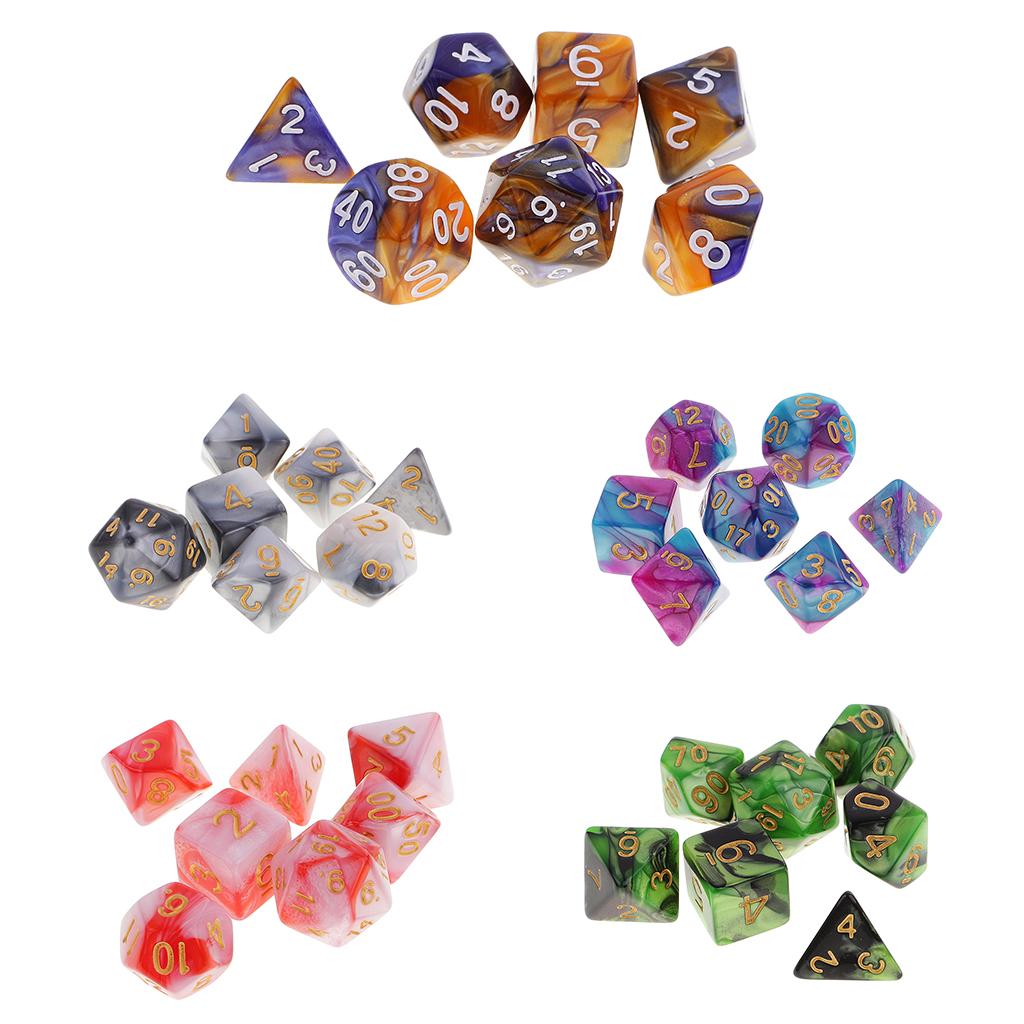 The 35pcs Dice set contains one 5x D4, 5x D6, 5x D8, 10x D10, 5x D12, 5x D20
