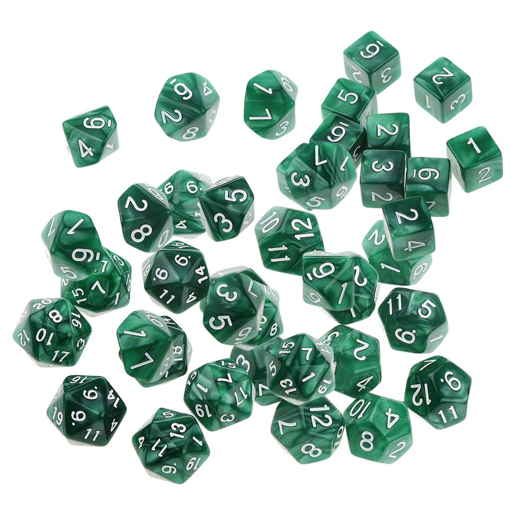 Quantity: 40 Pieces( 10 Pieces D6 Dice, 10 Pieces D10 Dice, 10 Pieces D12 Dice, 10 Pieces D20 Dice)
