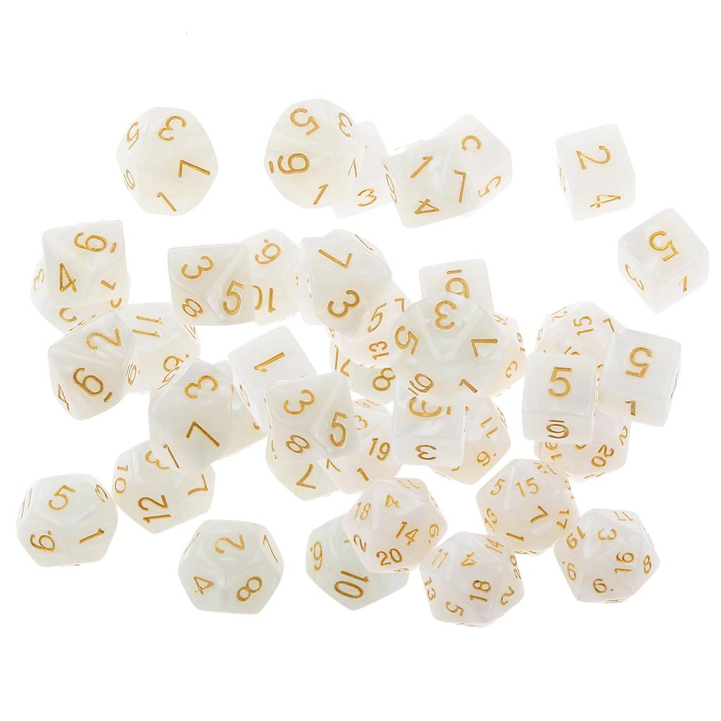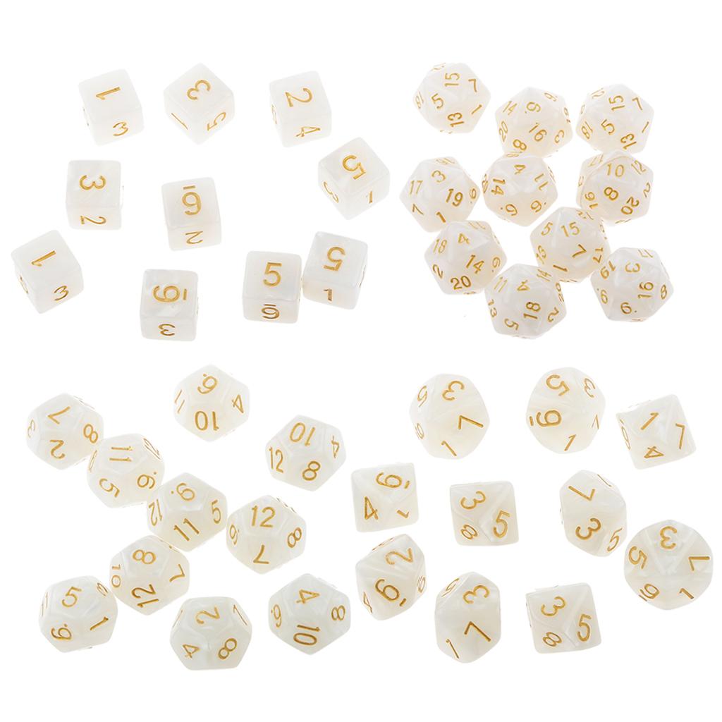 40 Pieces Multi Sided D6-D20 Dice for D&D TRPG Party Board Game Toys White