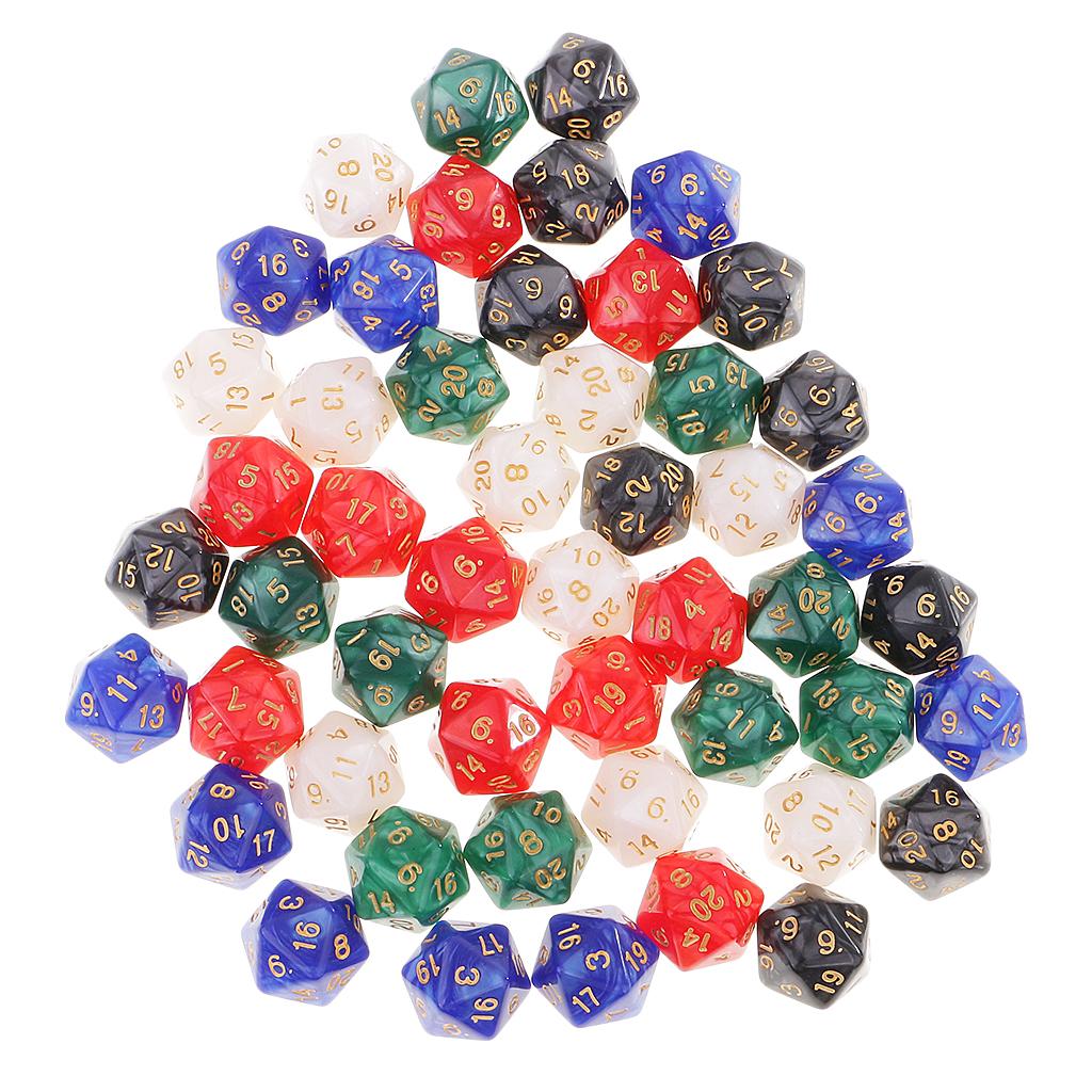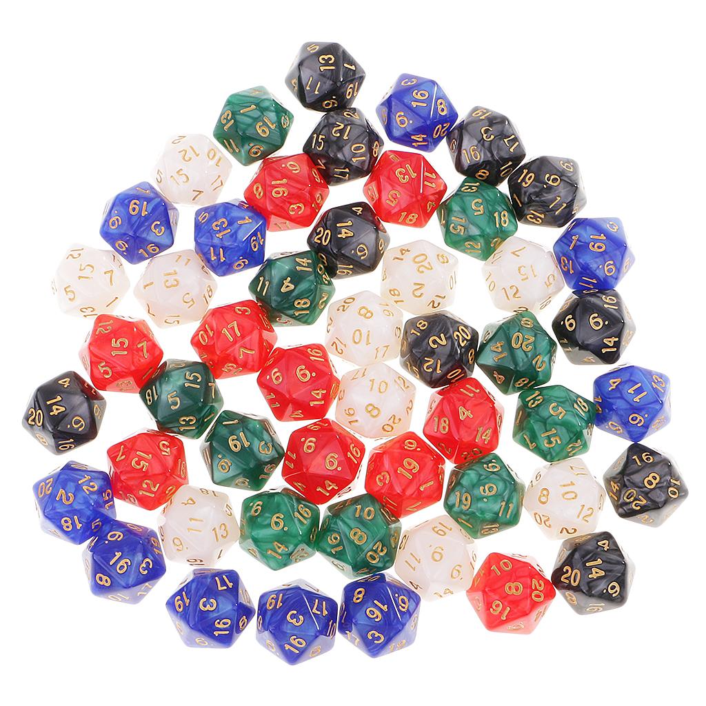 50 Pcs Polyhedral D20 Dice Set with Bag for Dungeons and Dragons RPG MTG Board Games