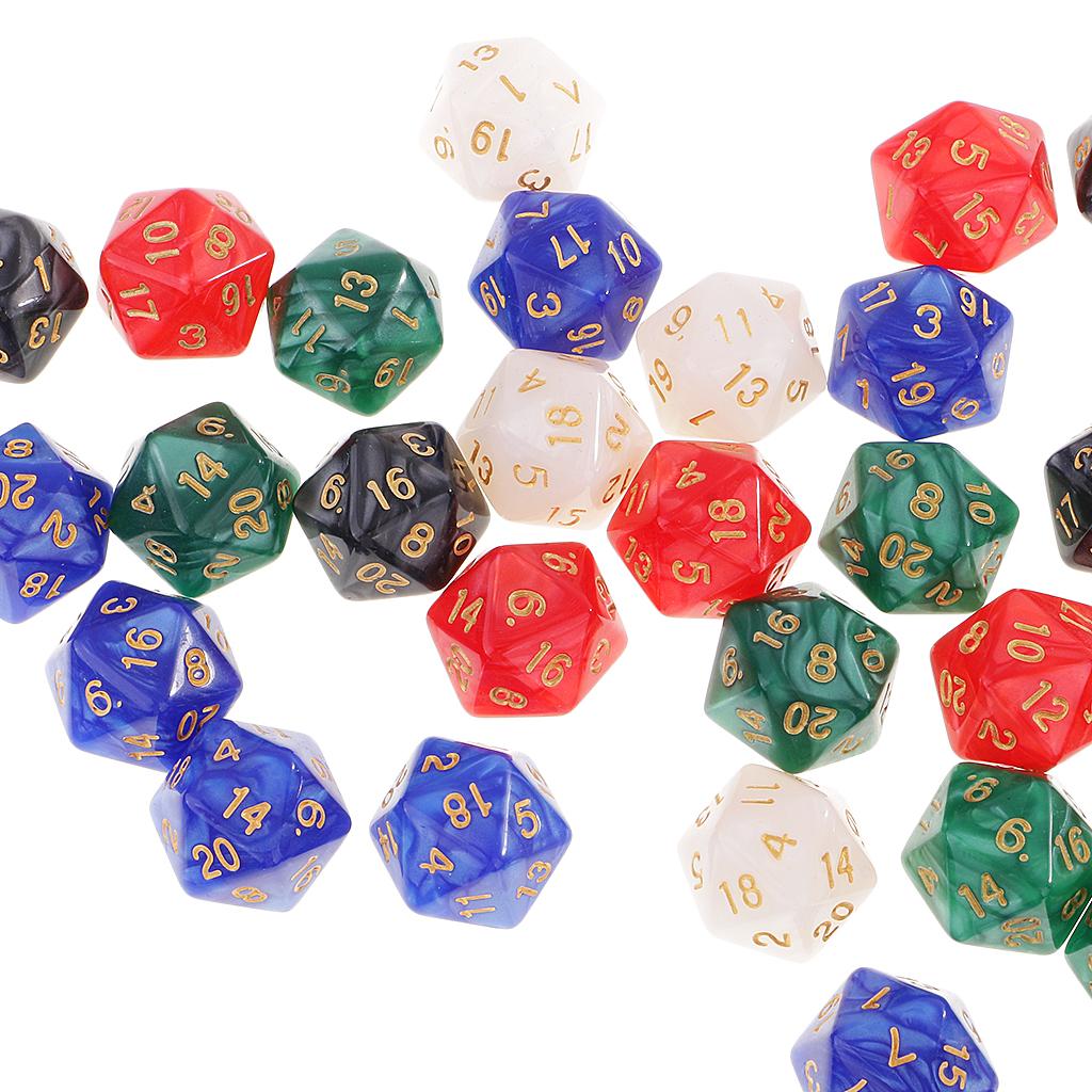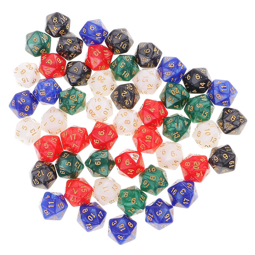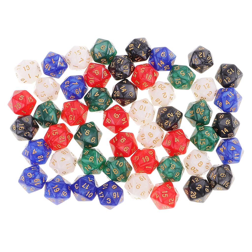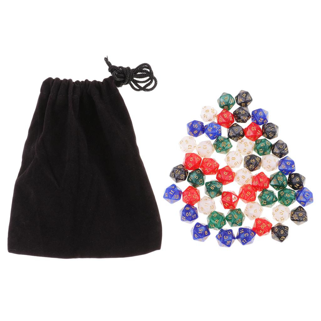 50pcs 20 Sided D20 Dice Contains Five Colors with Pouch Bag