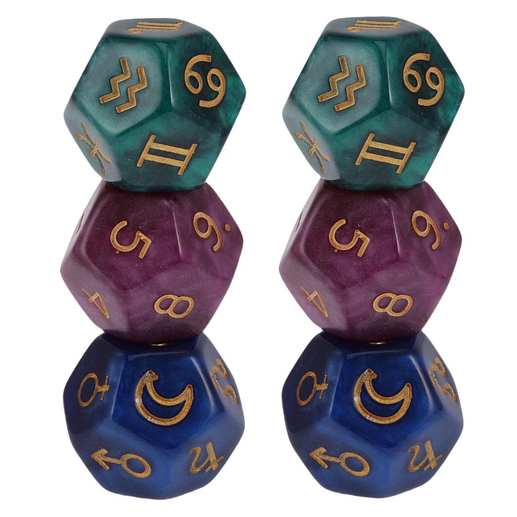 Pack of 6pcs Pearl 12-sided Astrology Dice for Constellation Divination Toys