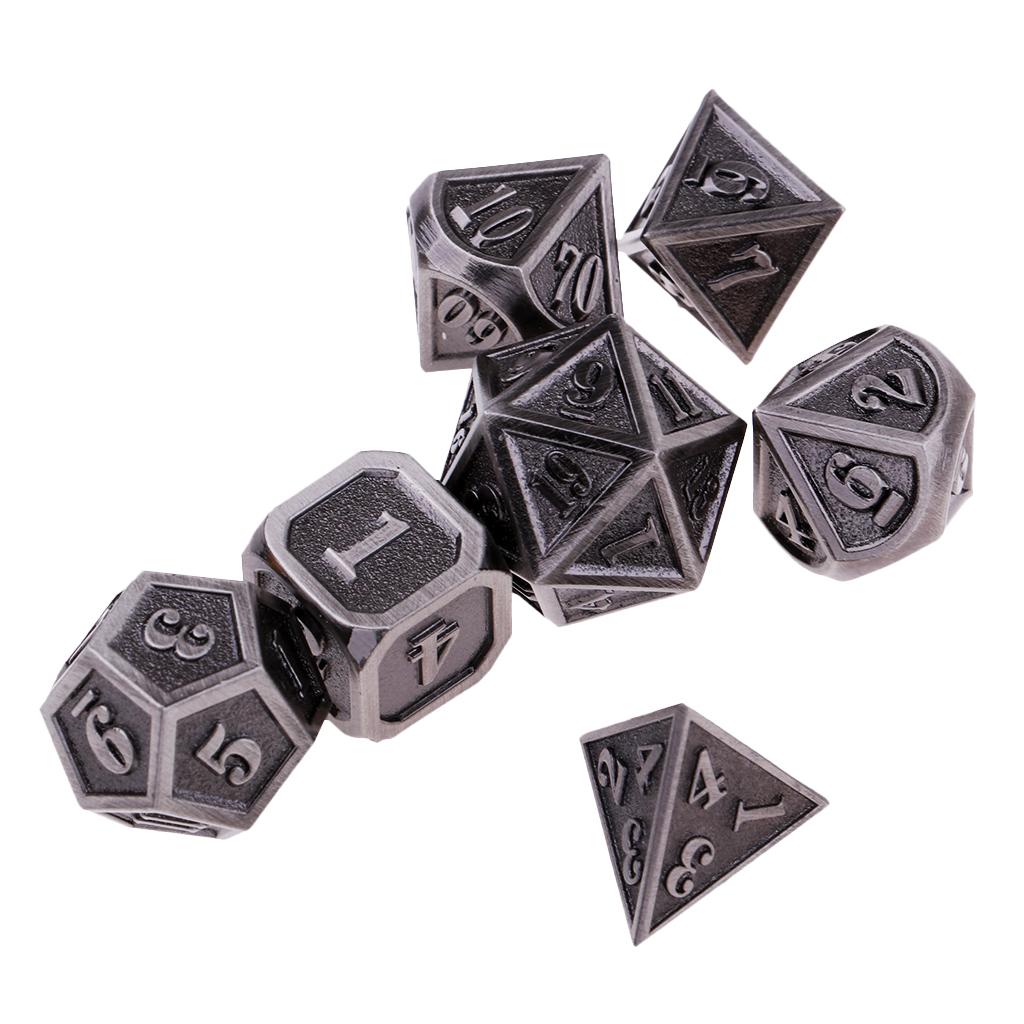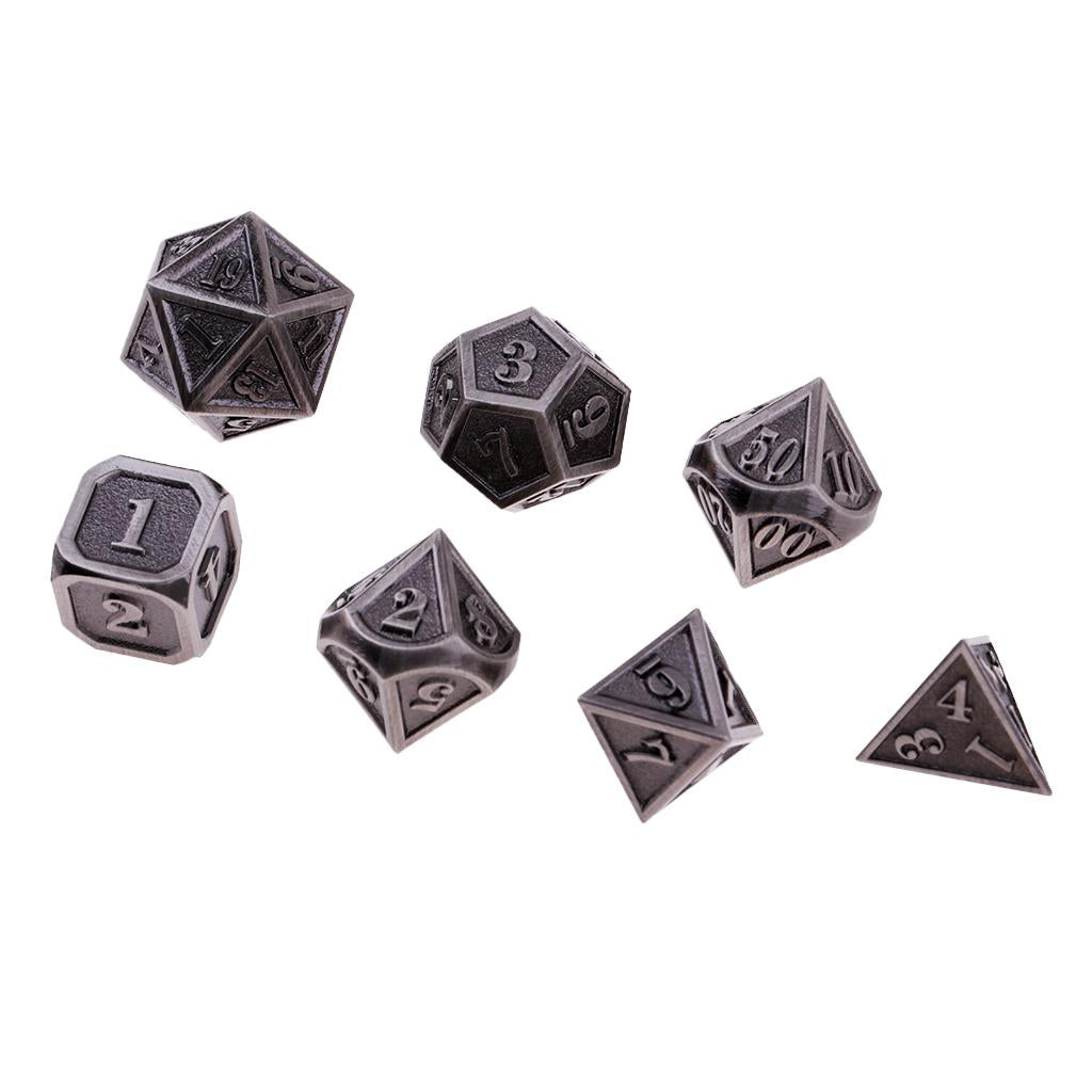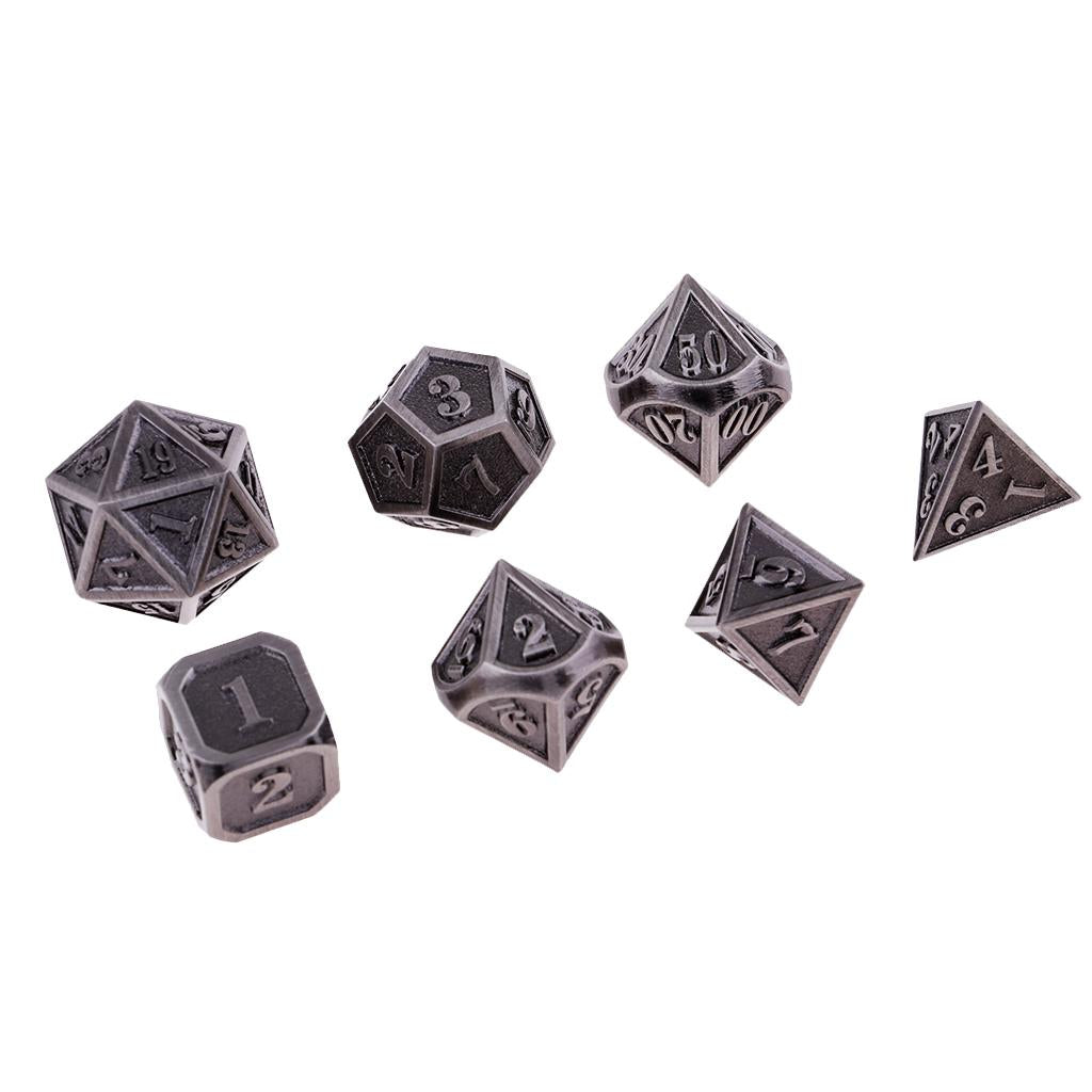 7-Die Zinc Alloy RPG MTG Table Game Dice for Dungeons and Dragons DND Nickel