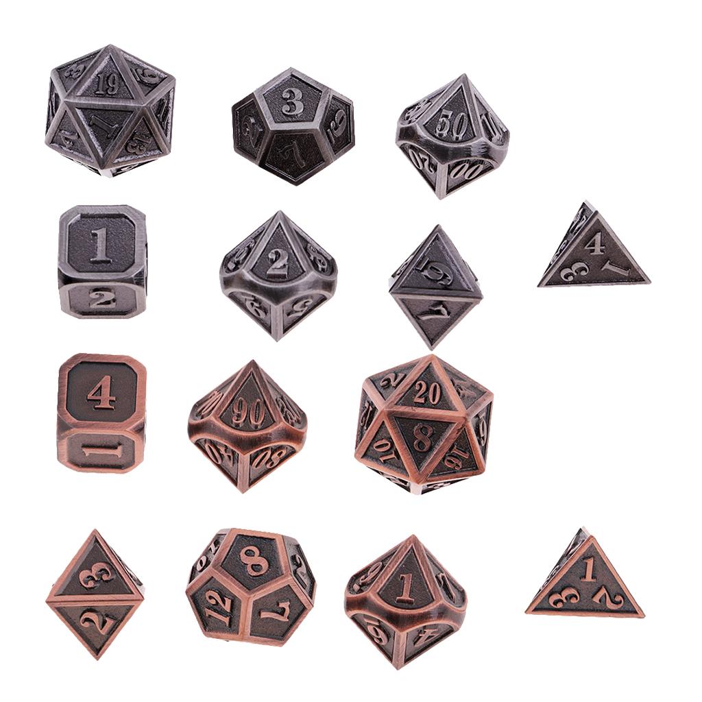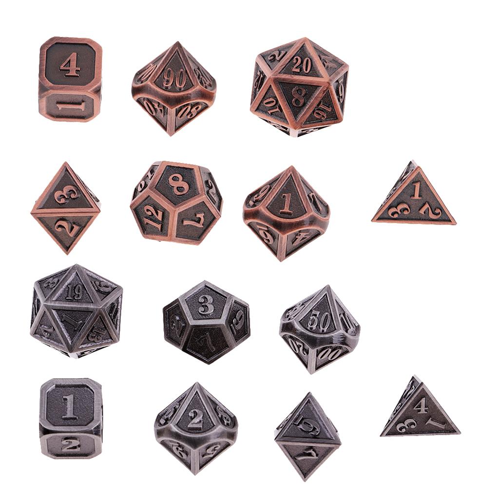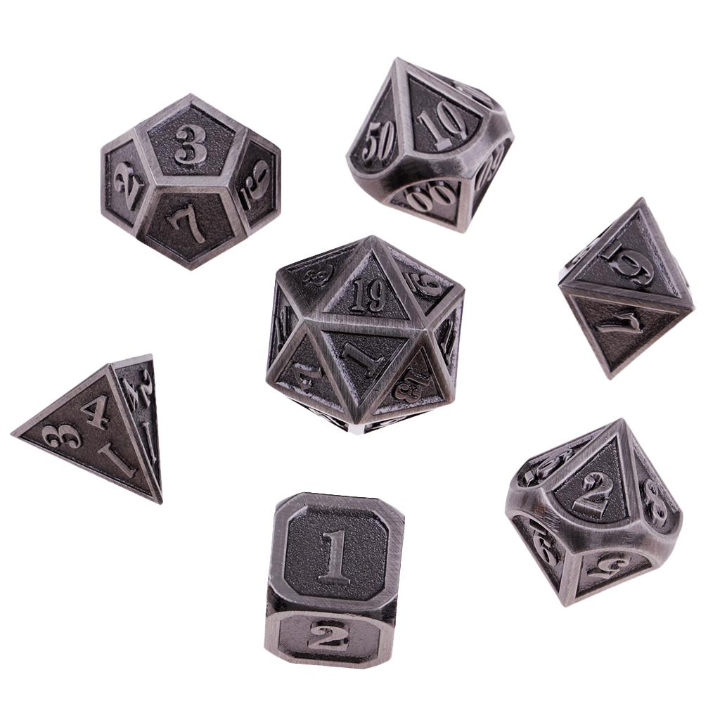 7-Die Zinc Alloy RPG MTG Table Game Dice for Dungeons and Dragons DND Nickel