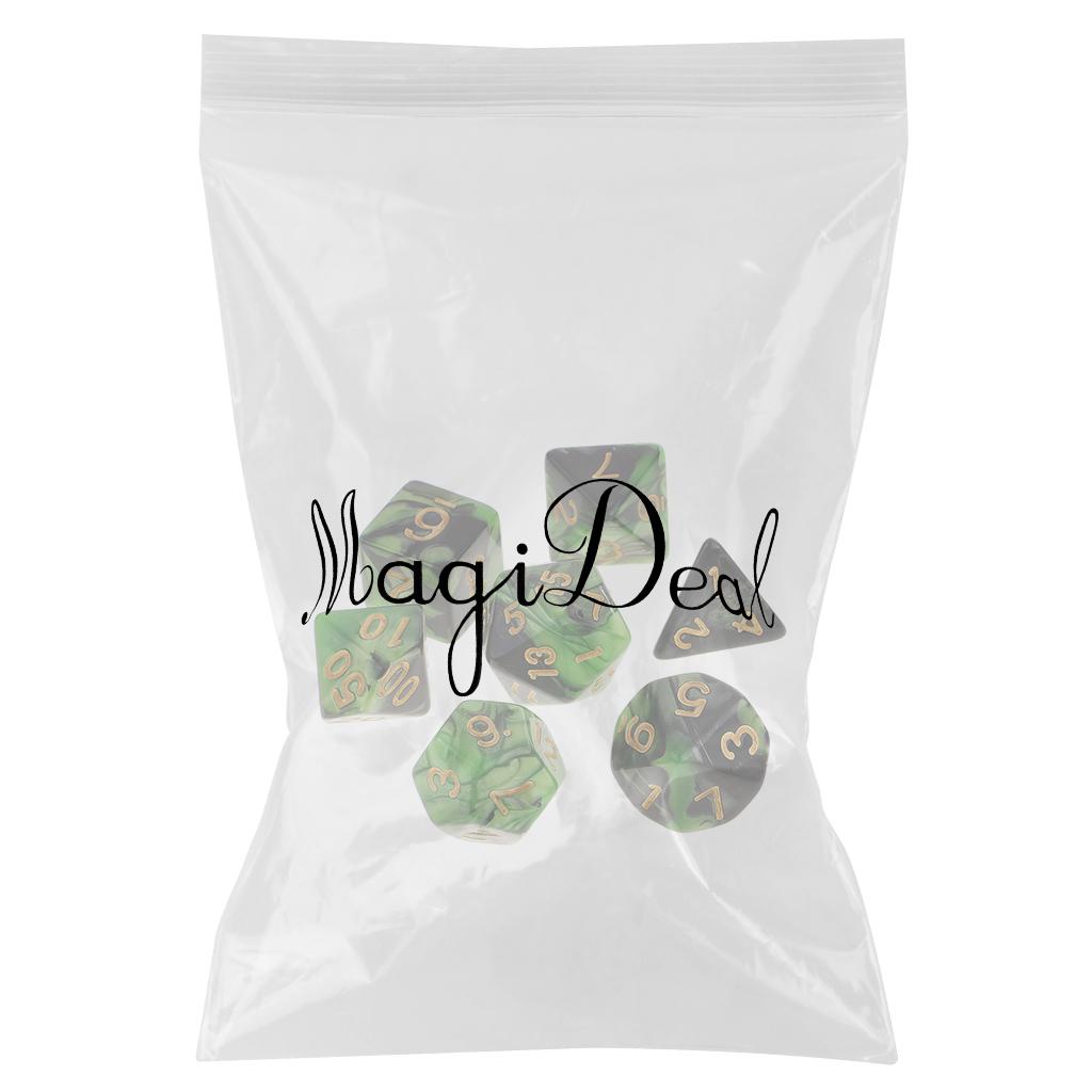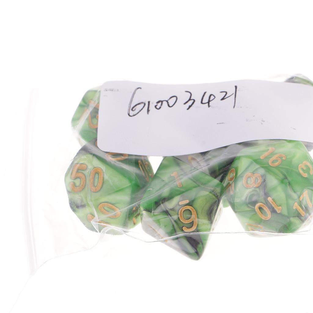 The 7pcs Dice set contains one D4, D6, D8, 2pcs D10, D12, D20
