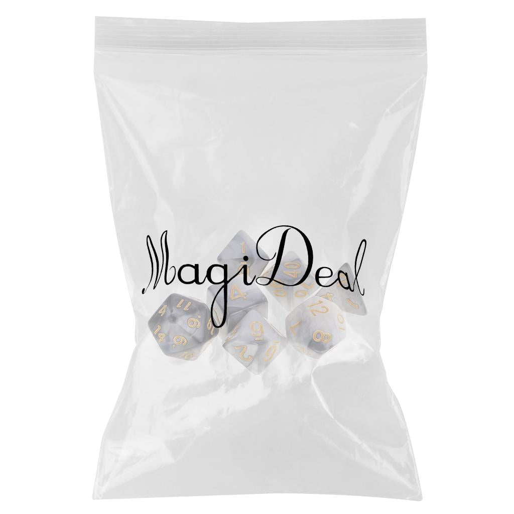 The 7pcs Dice set contains one D4, D6, D8, 2pcs D10, D12, D20